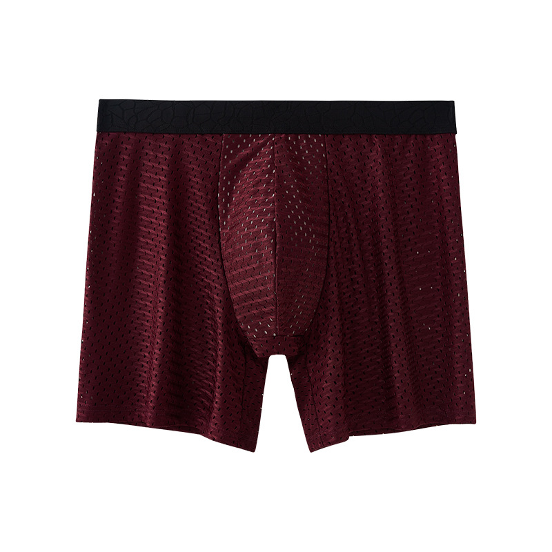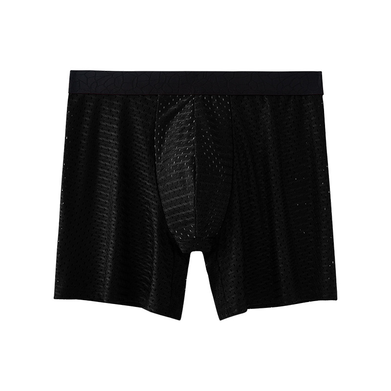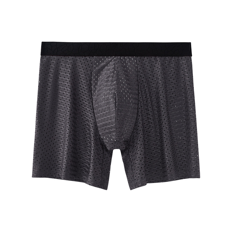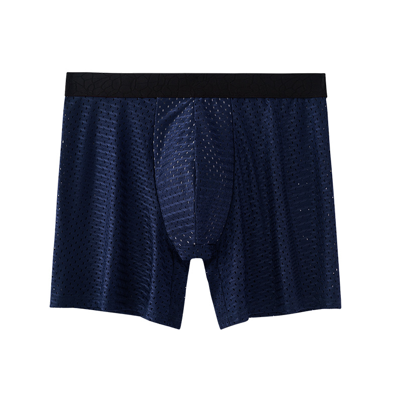 外贸冰丝网眼男士内裤加长款四角裤石墨烯裆透气网孔平角内裤 投诉