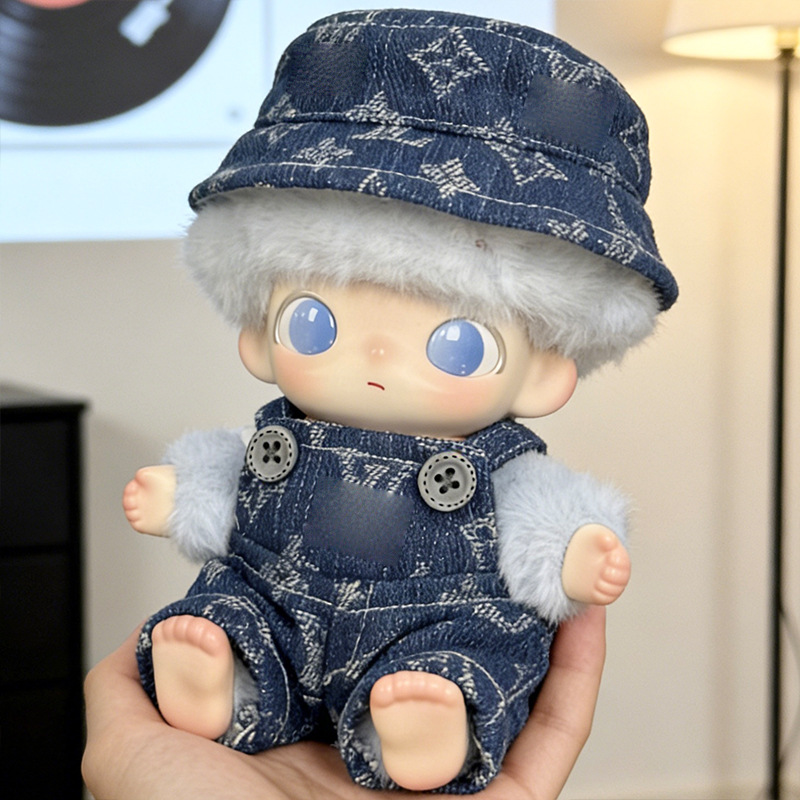 DD浅蓝牛仔(渔夫帽+背带裤)