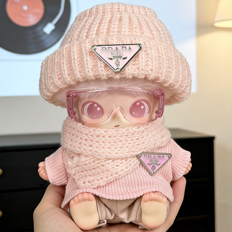 大P粉色套装(针织帽+毛衣+围巾+裤子+护目镜)