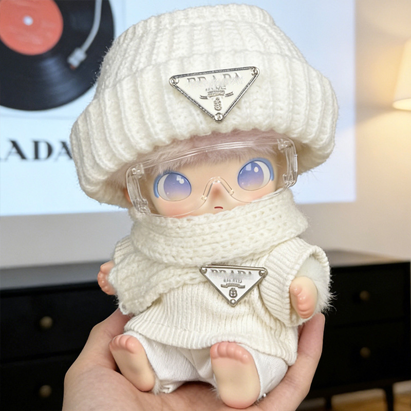 大P白色套装(针织帽+毛衣+围巾+裤子+护目镜)