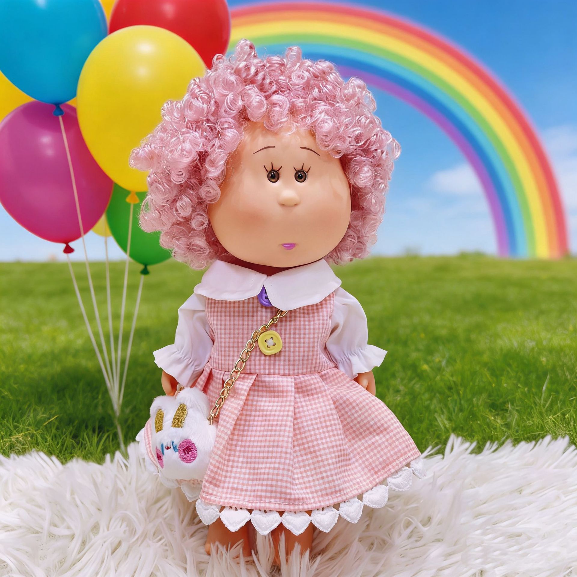 粉色甜美格子裙+兔子包(无娃)