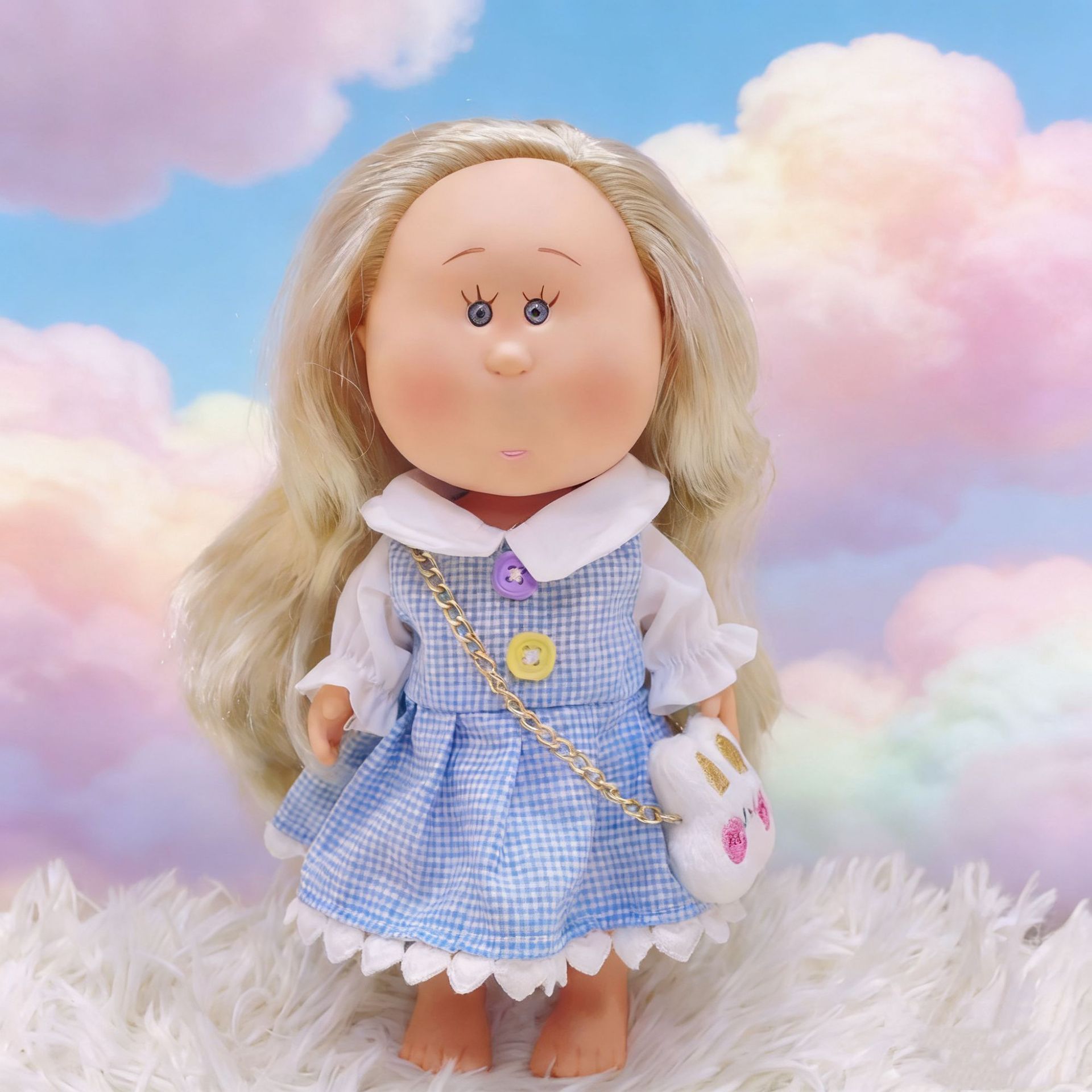 蓝色甜美格子裙+兔子包(无娃) 高度