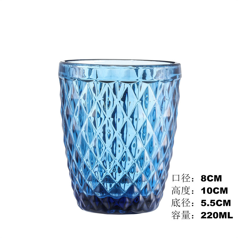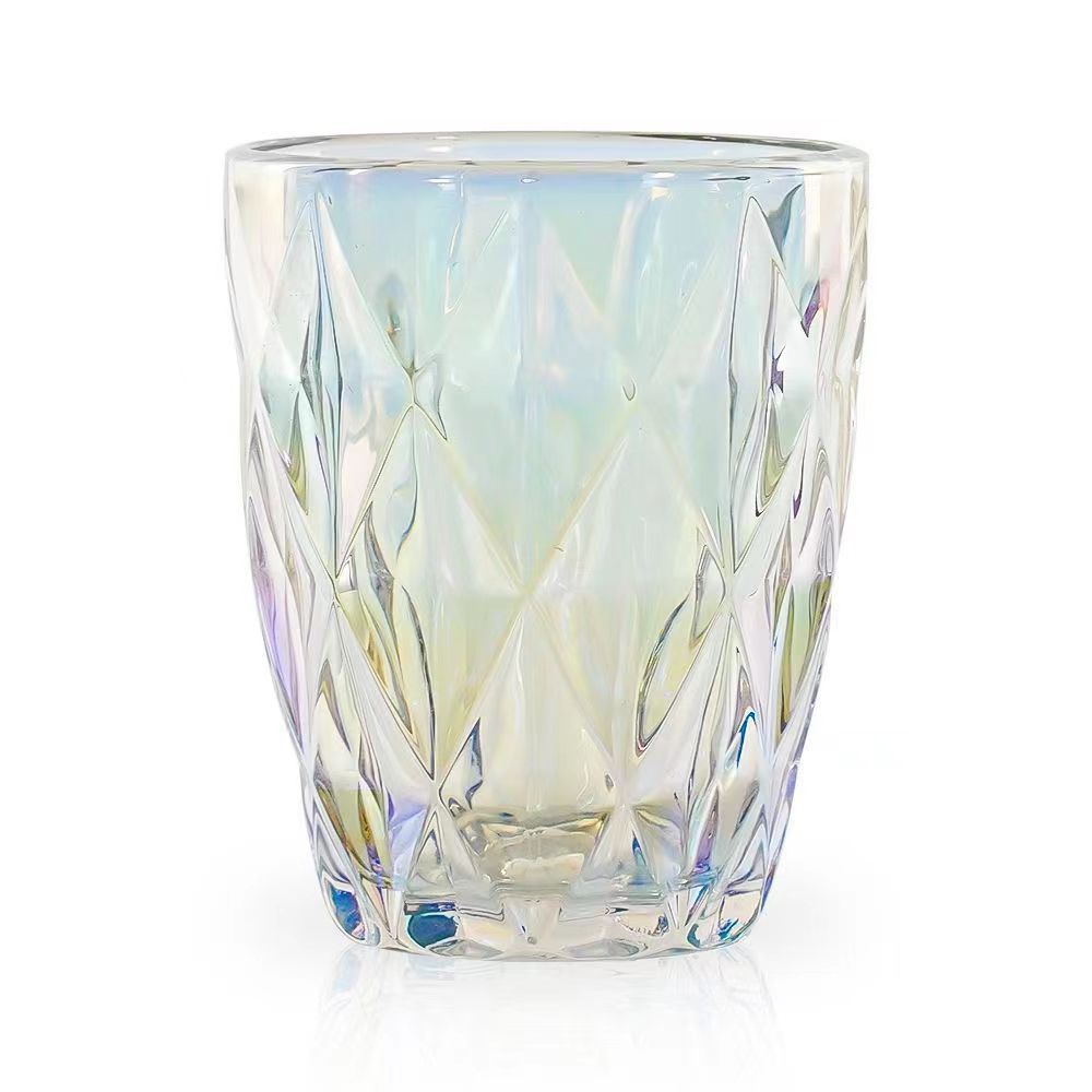 热卖菱形玻璃杯复古钻石杯彩色电镀琥珀七彩杯 投诉