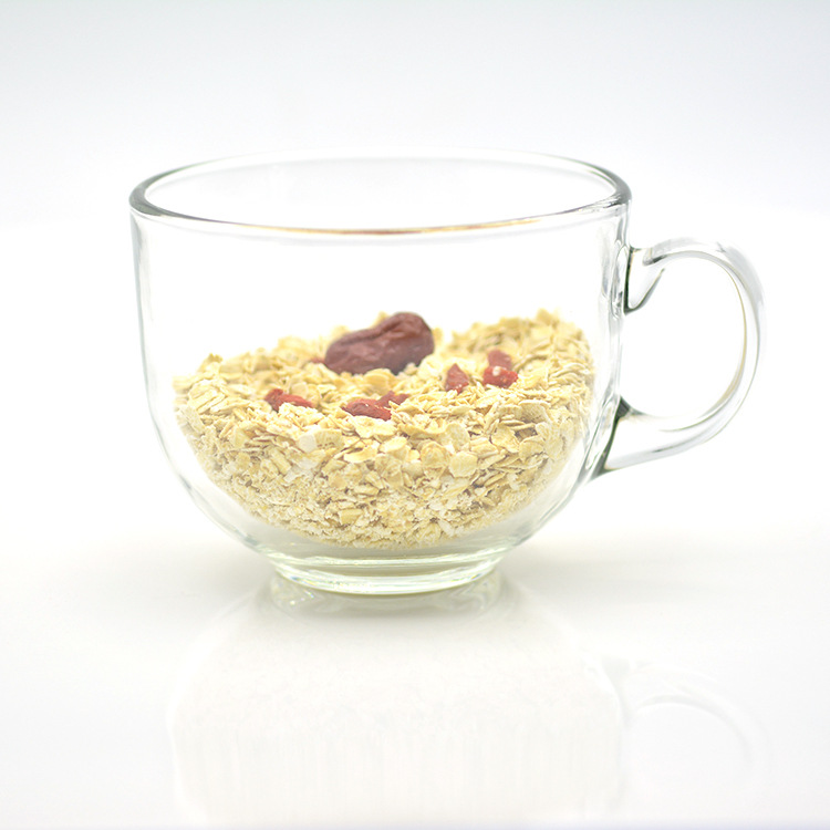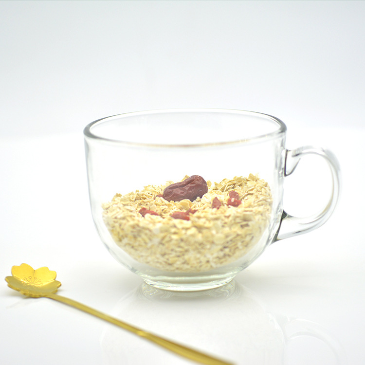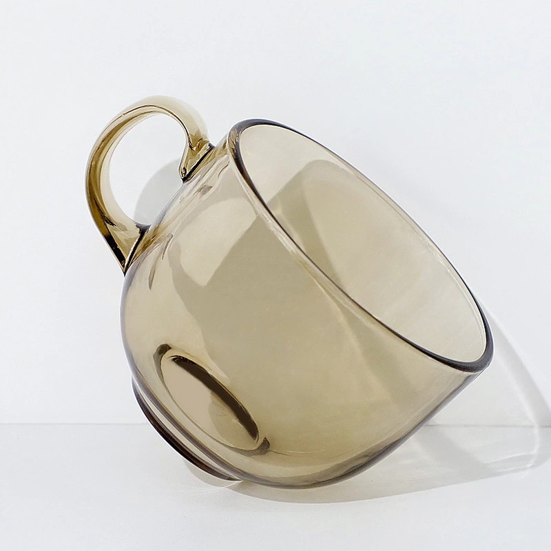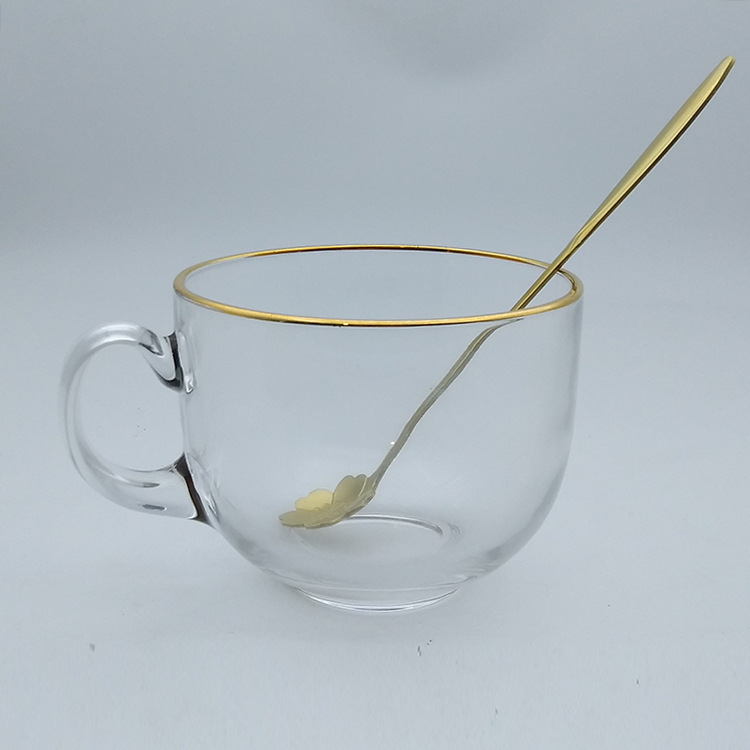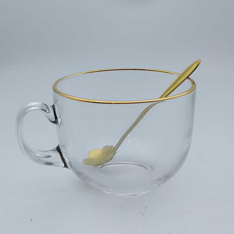 日式金边早餐杯琥珀色燕麦玻璃杯带把大容量牛奶杯可印logo礼品杯