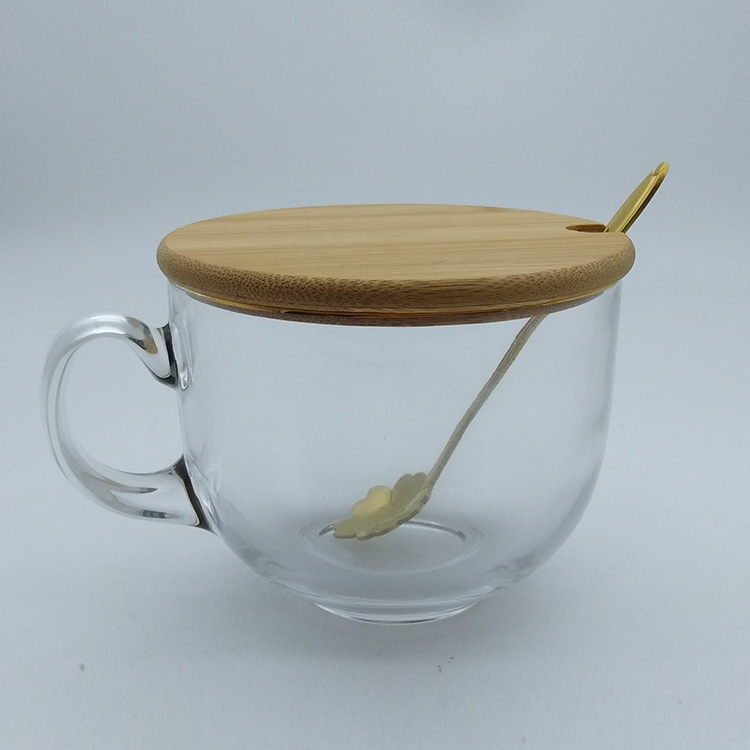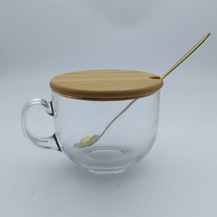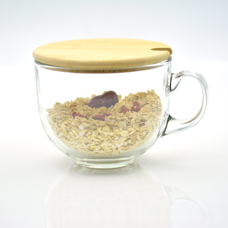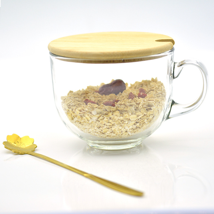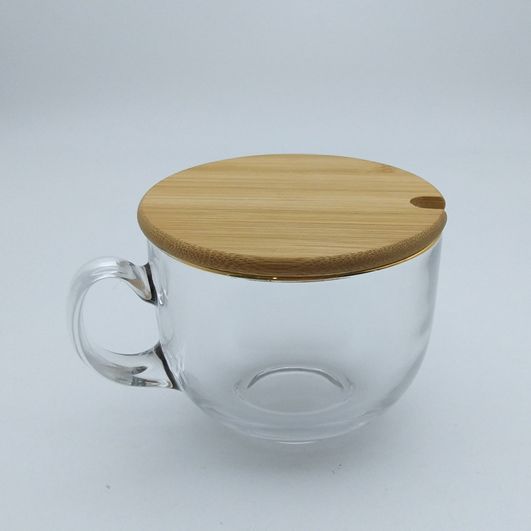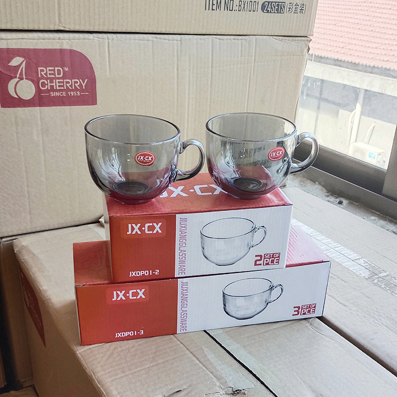 日式金边早餐杯琥珀色燕麦玻璃杯带把大容量牛奶杯可印logo礼品杯