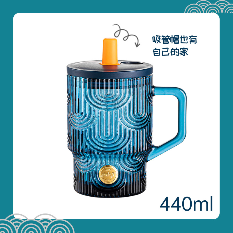 墨蓝云纹浮雕吸管杯【440ml】 x1000+容量