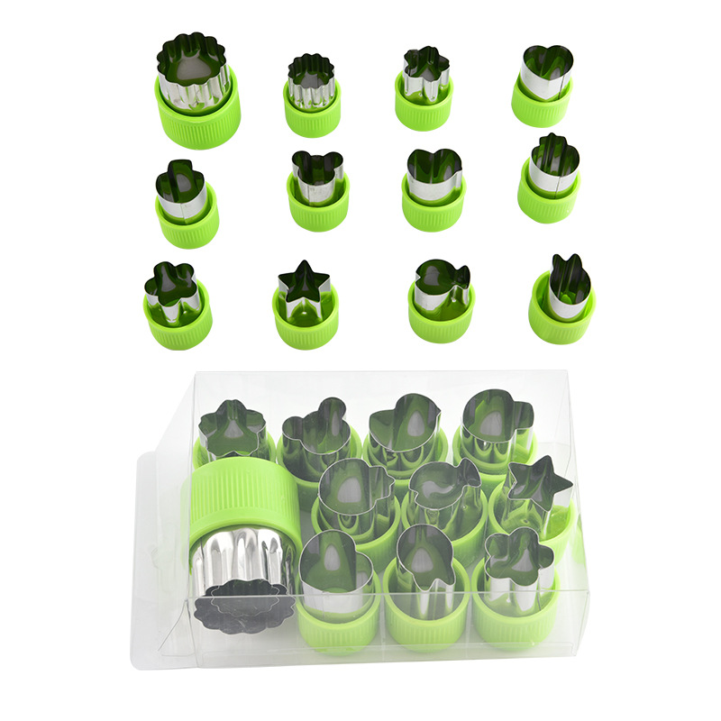 不锈钢饼干曲奇压花模具12件套小熊宝宝辅食水果蔬菜切烘培工具