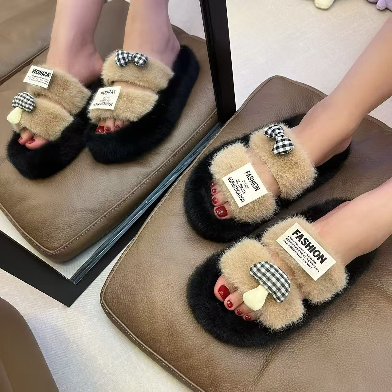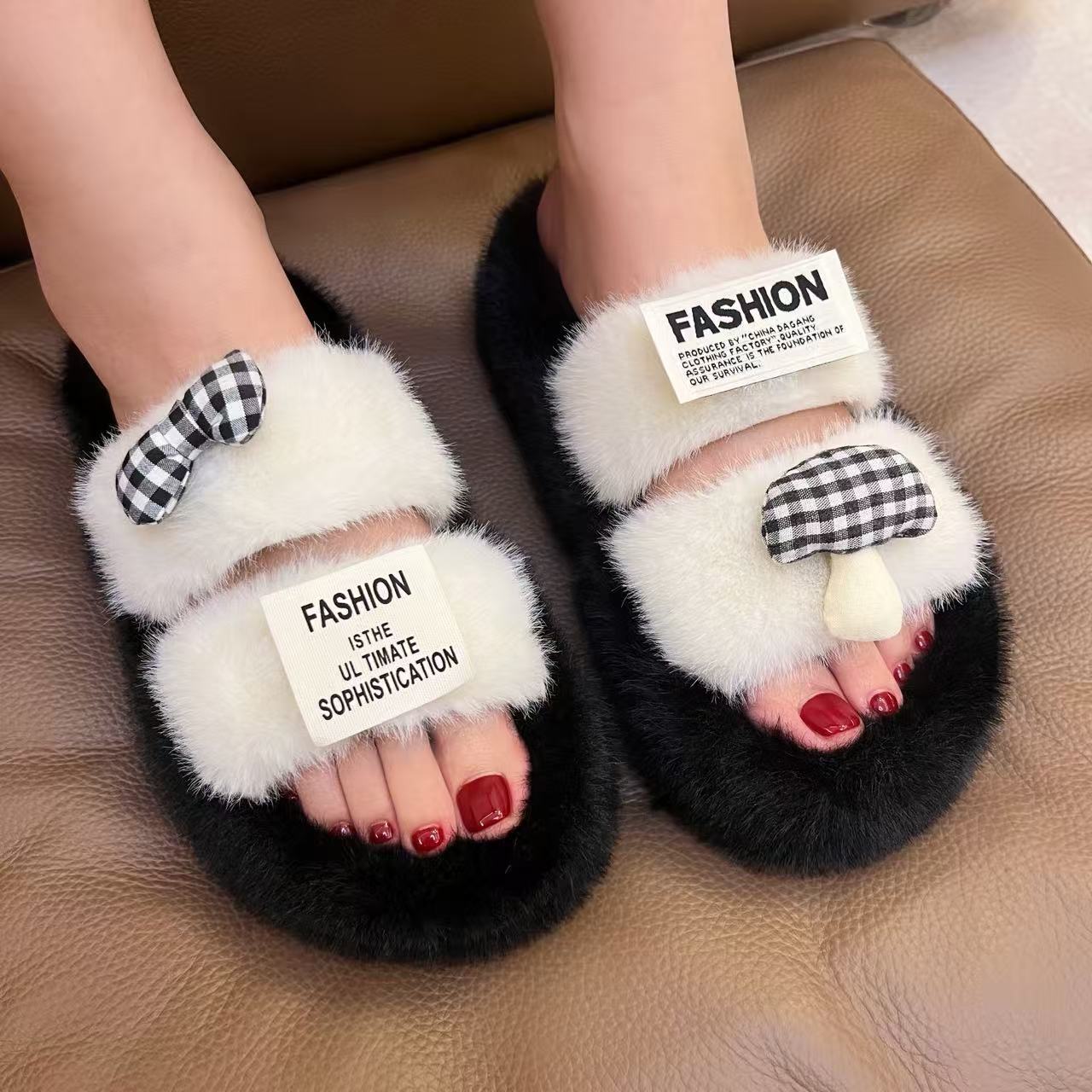 半拖手掌蝴蝶结白黑黑咖