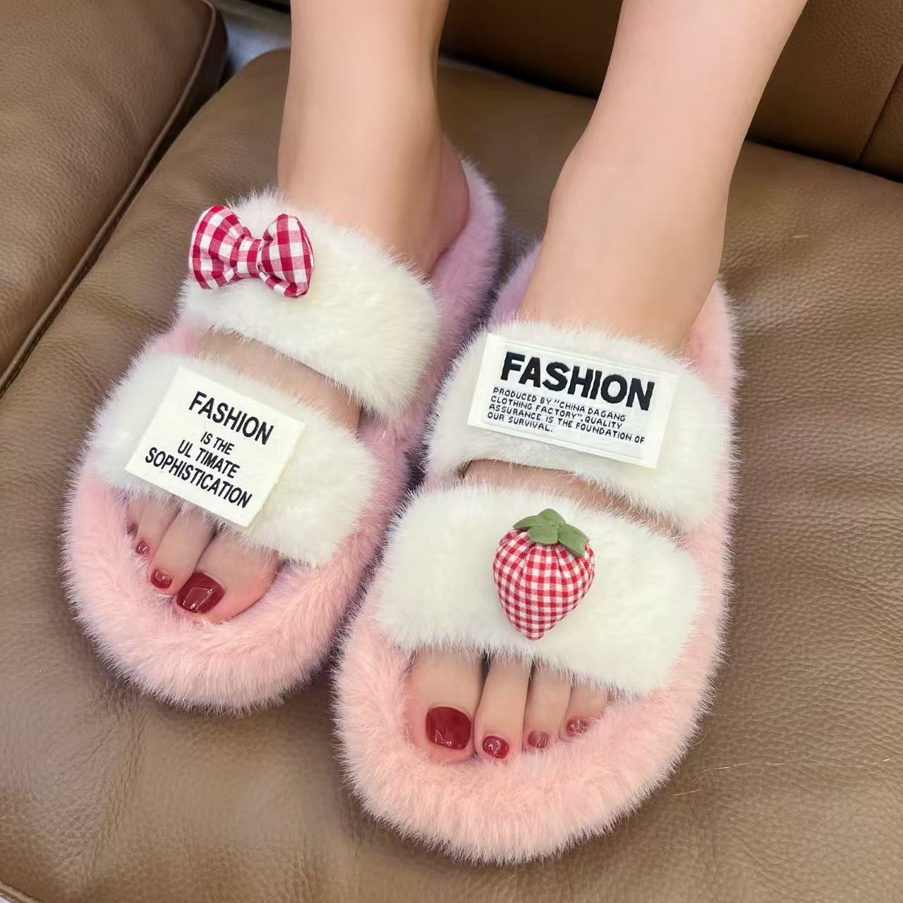 半拖手掌蝴蝶结白黑白粉