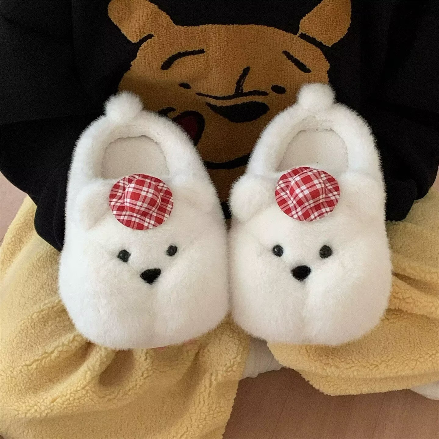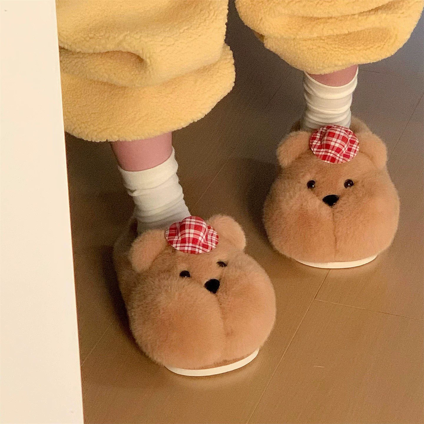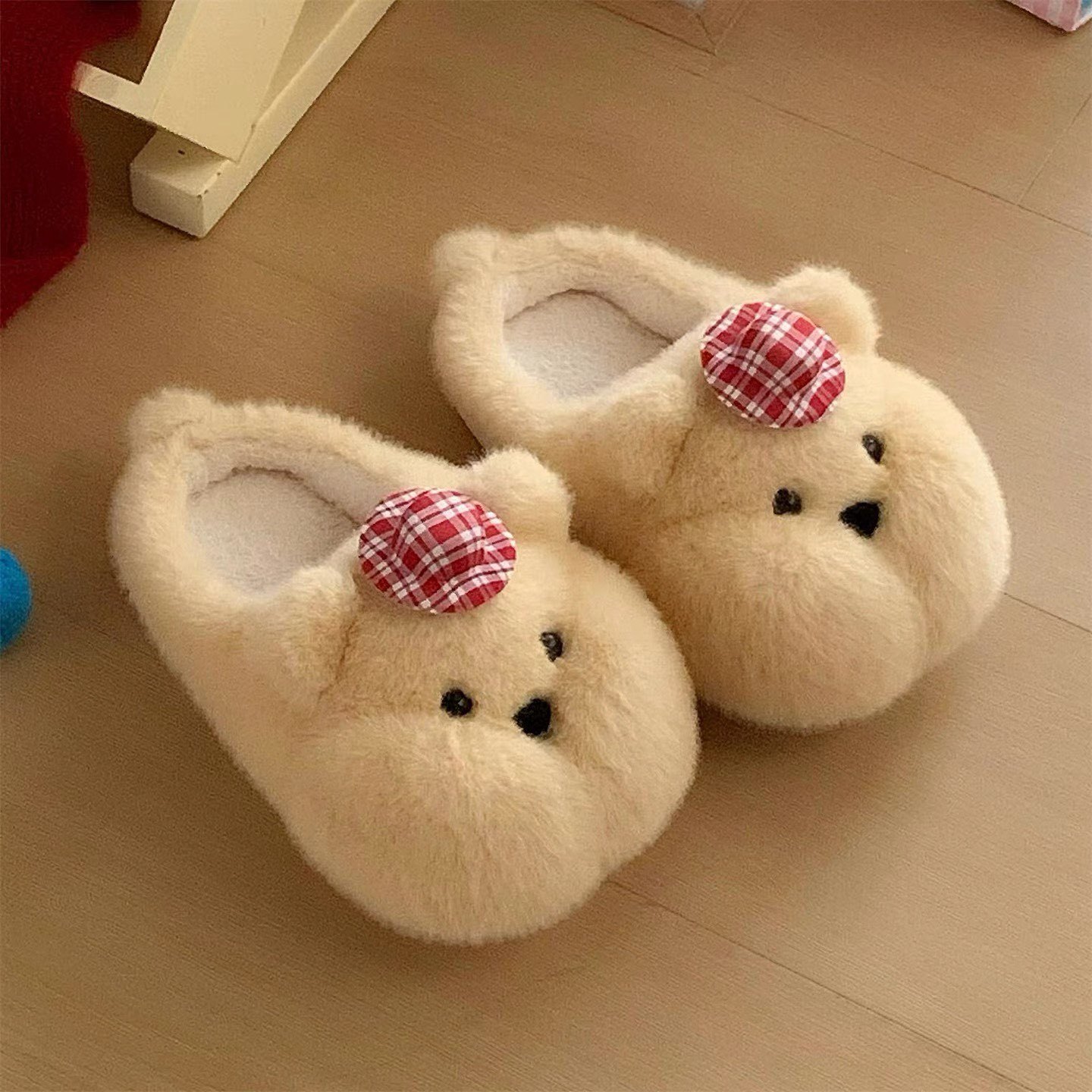 居家厚底学生居家防滑软萌小胖熊棉拖鞋可爱奶呼呼保暖毛毛鞋女冬