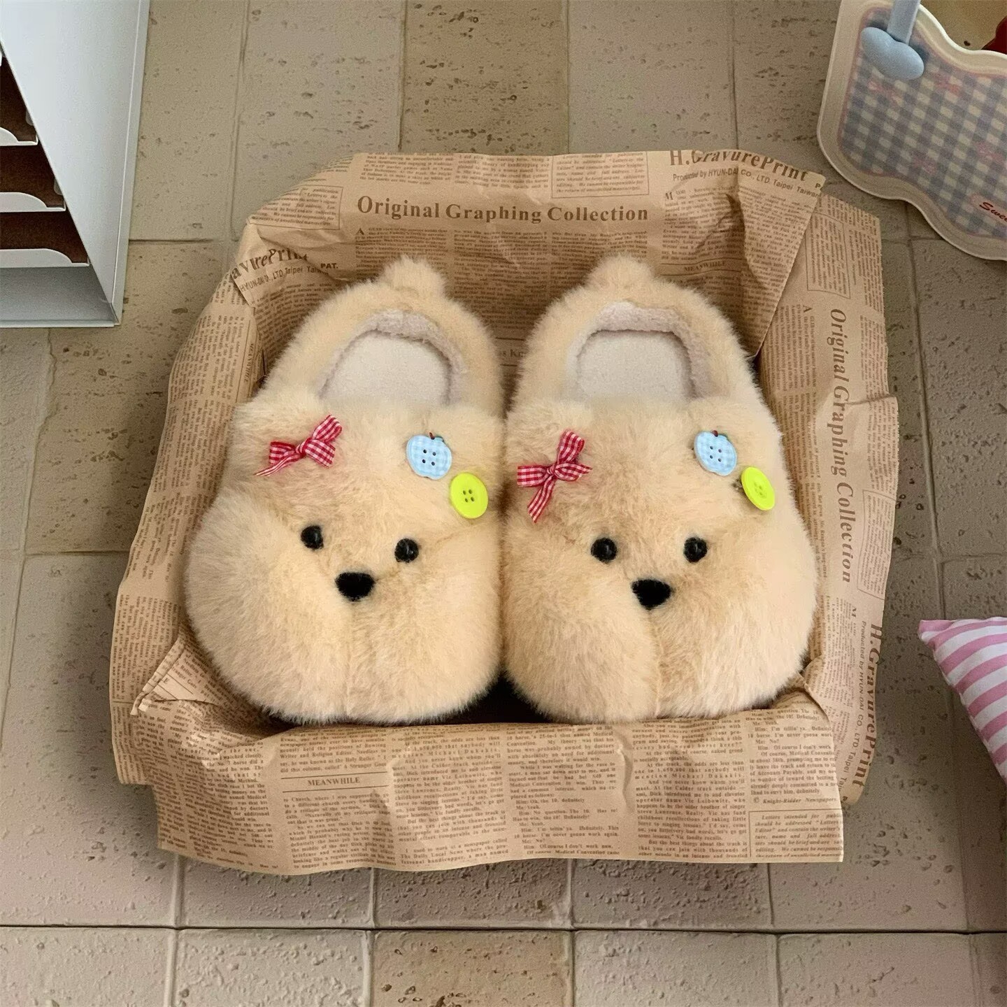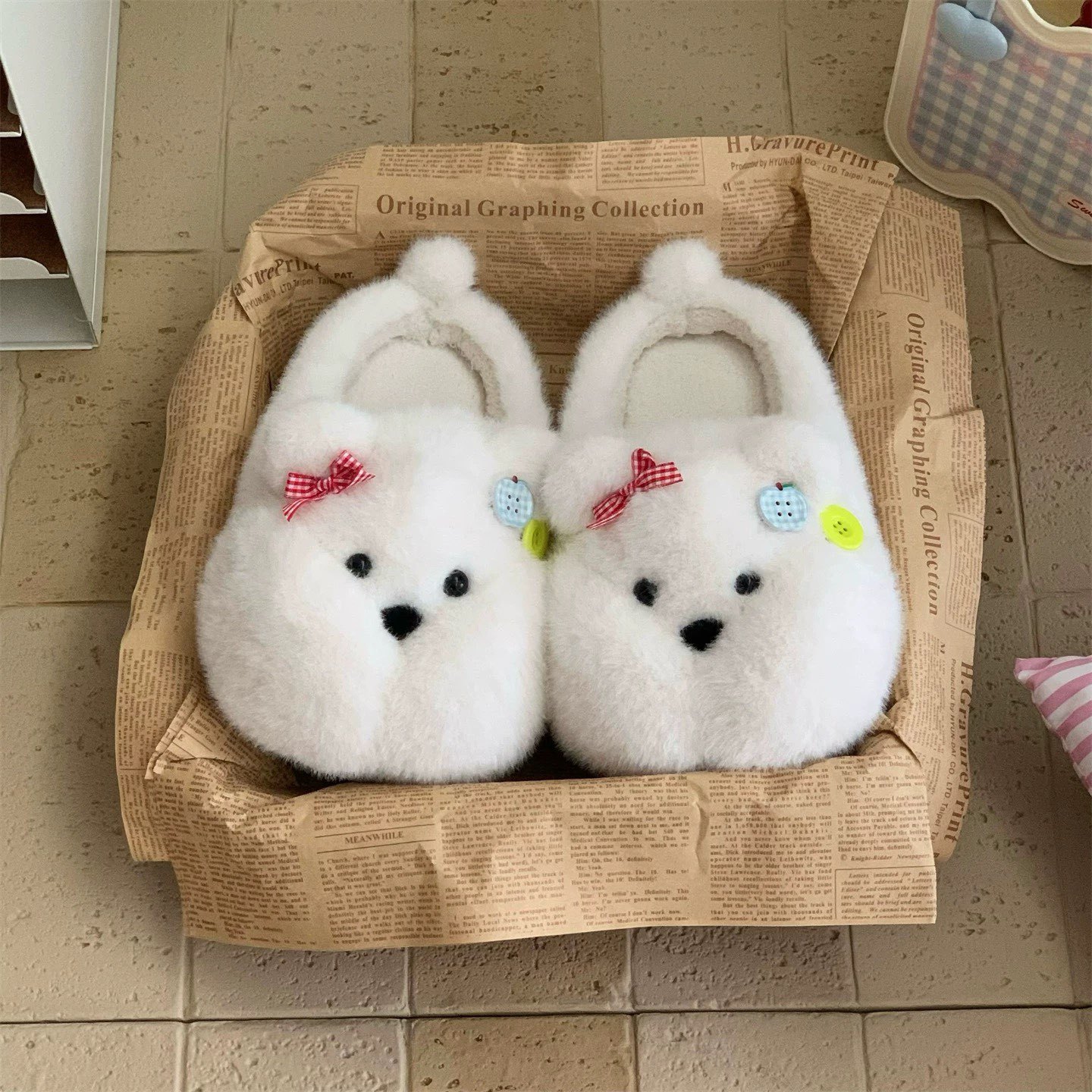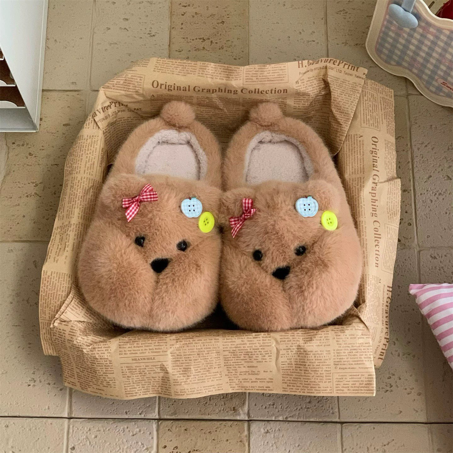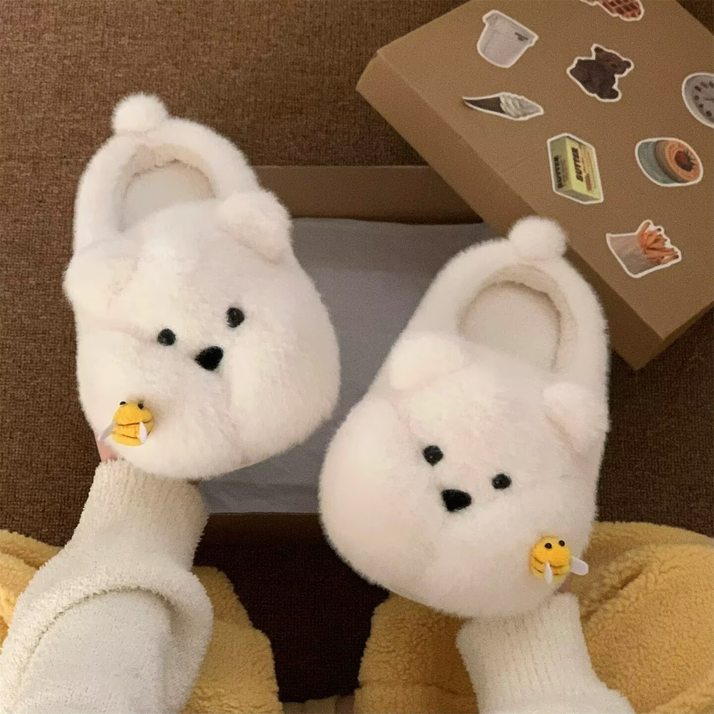 居家厚底学生居家防滑软萌小胖熊棉拖鞋可爱奶呼呼保暖毛毛鞋女冬