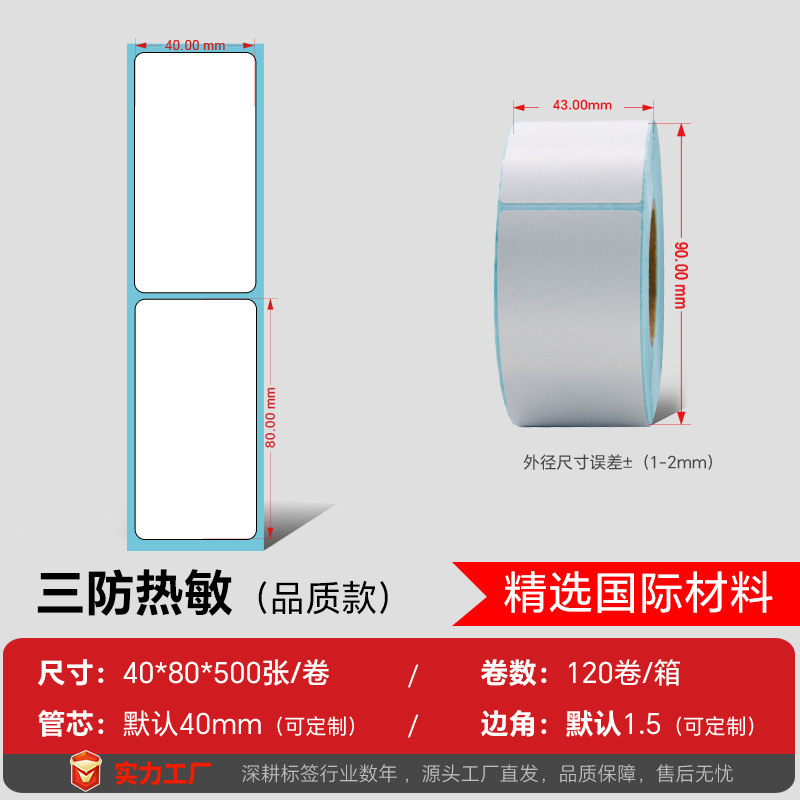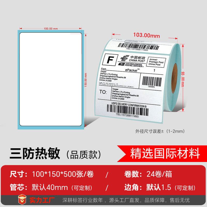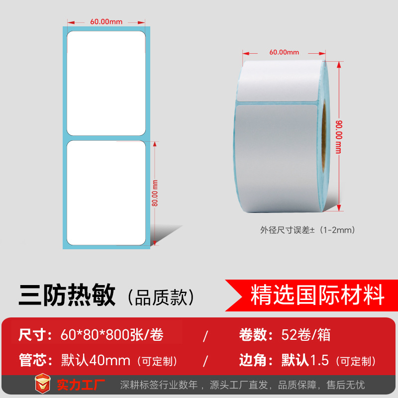 使用膜类: 哑膜不干胶标签 ,三防热敏,快递打印纸,
