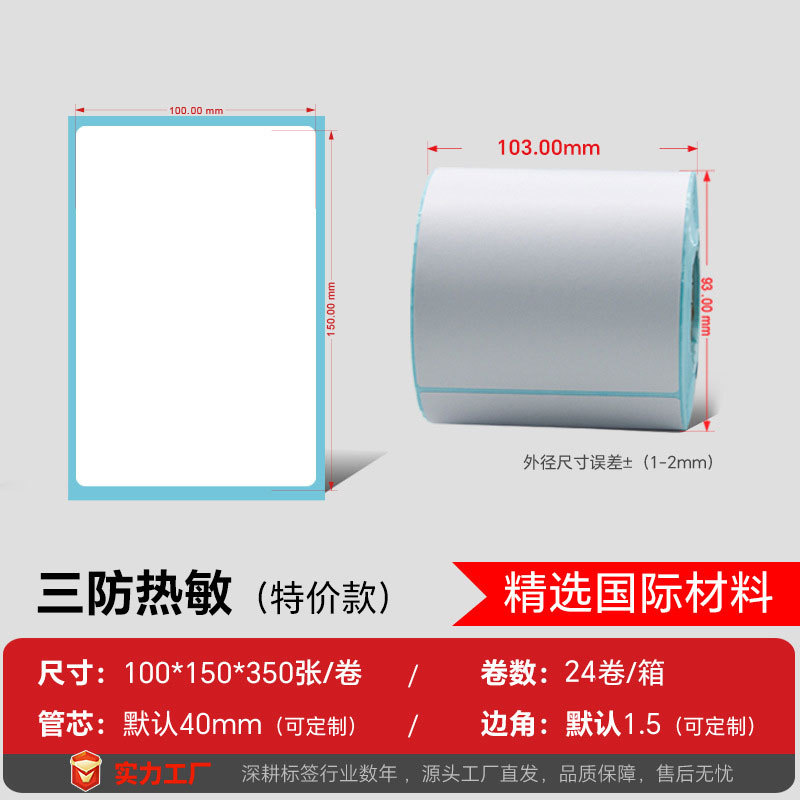 三防热敏标签打印纸纸不干胶贴纸定制100x100快递面单热敏纸批发 投诉