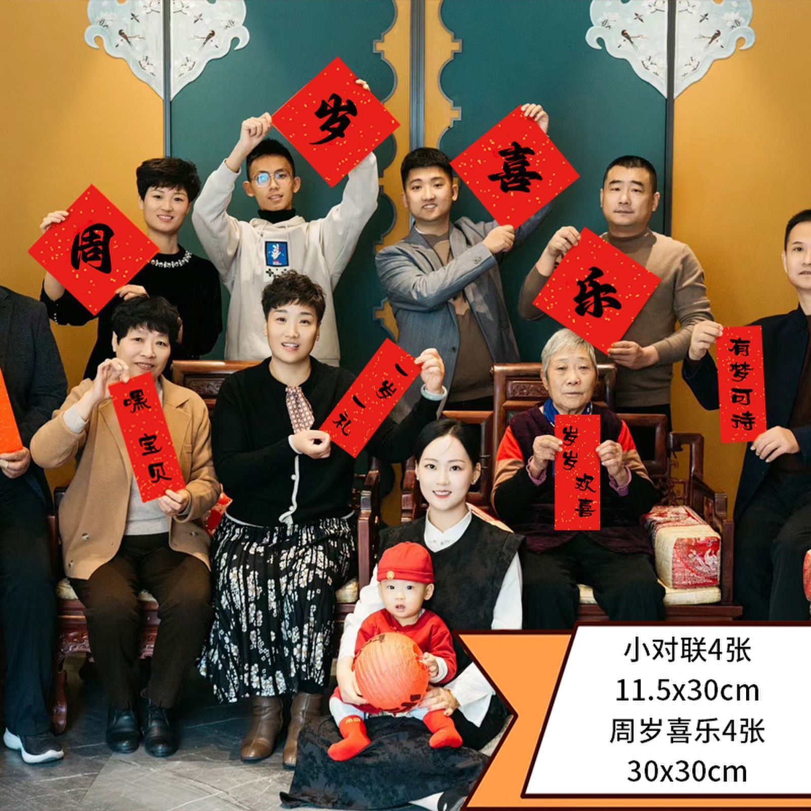 抓周小对联一周岁生日派对布置儿童男女宝宝中式背景装饰拍照道具