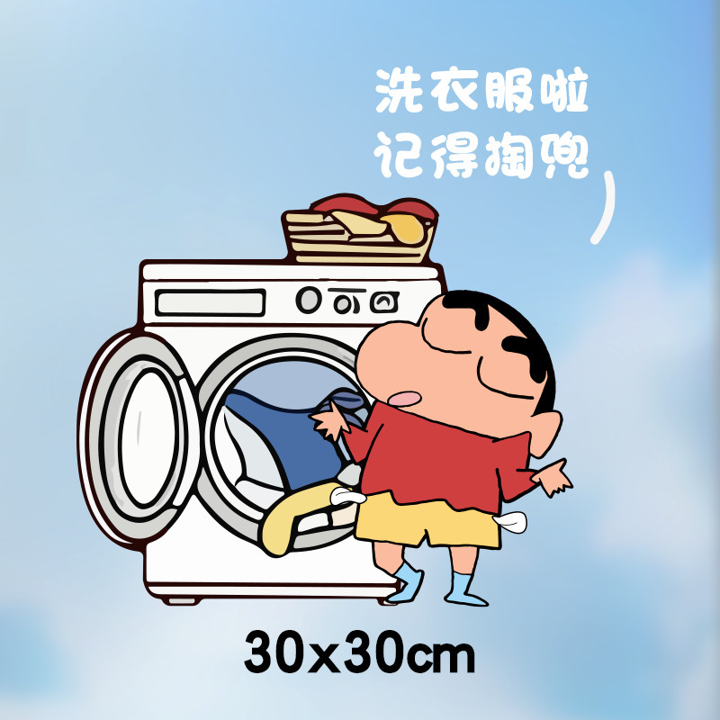 记得掏兜滚筒洗衣机贴纸蜡笔小新洗衣机贴纸乔迁之喜静电贴纸