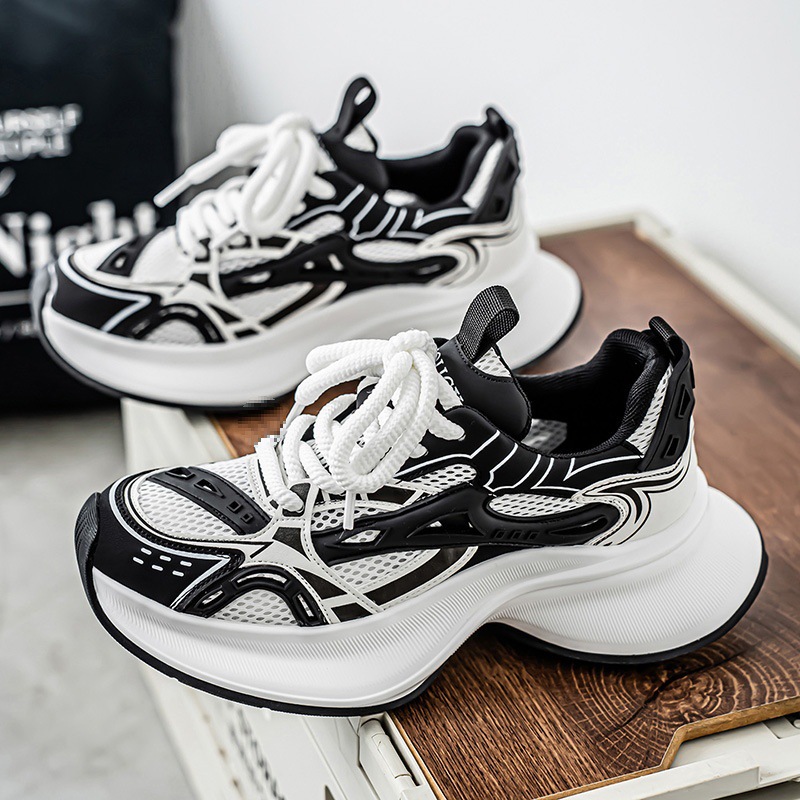 TEMU跨境大码春秋新款休闲跑步运动鞋男士增高厚底阿甘老爹鞋潮款