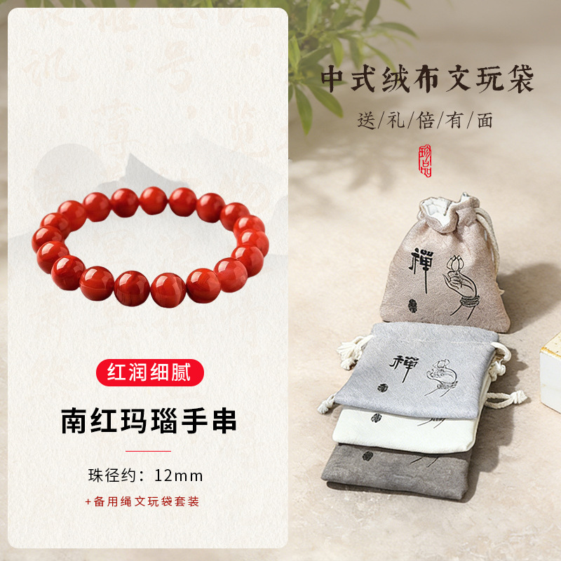 南红级玛瑙12mm+文玩袋套装