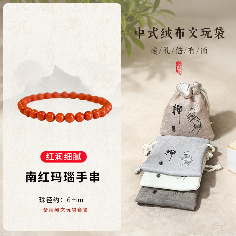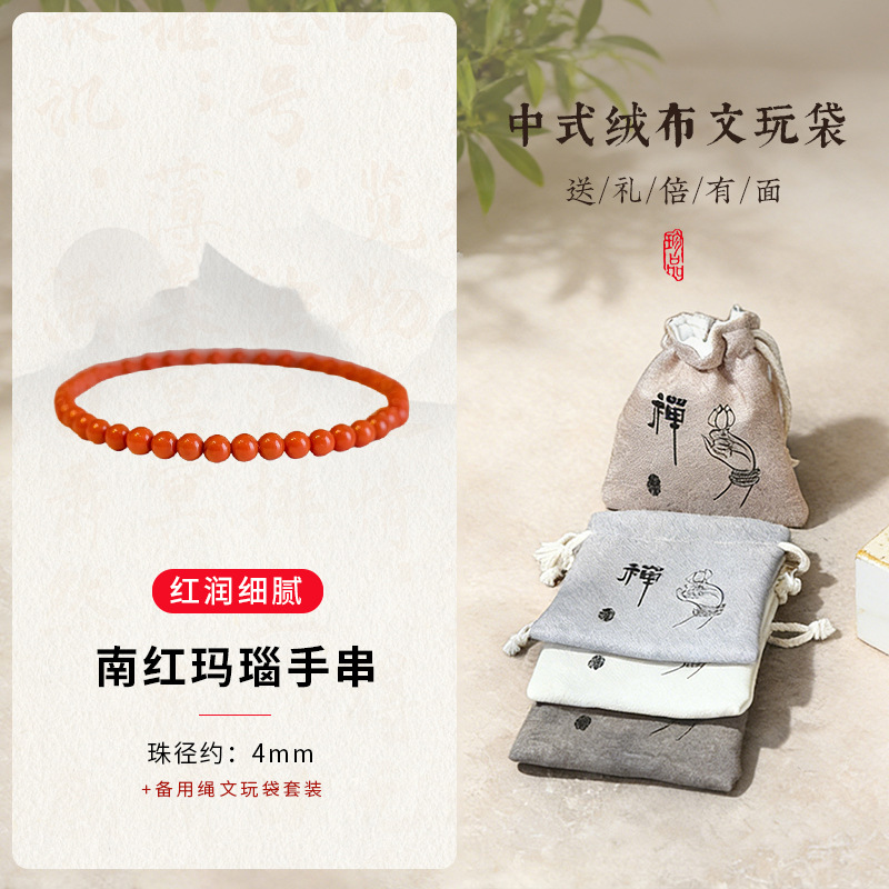 南红玛瑙4mm+文玩袋套装