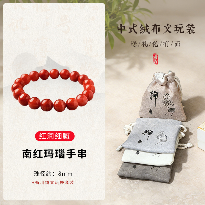 南红级玛瑙8mm+文玩袋套装