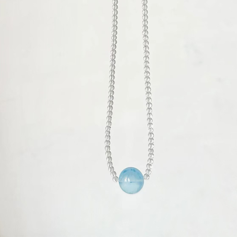 天然海蓝宝设计款项链挂坠水晶短款锁骨链批发饰品