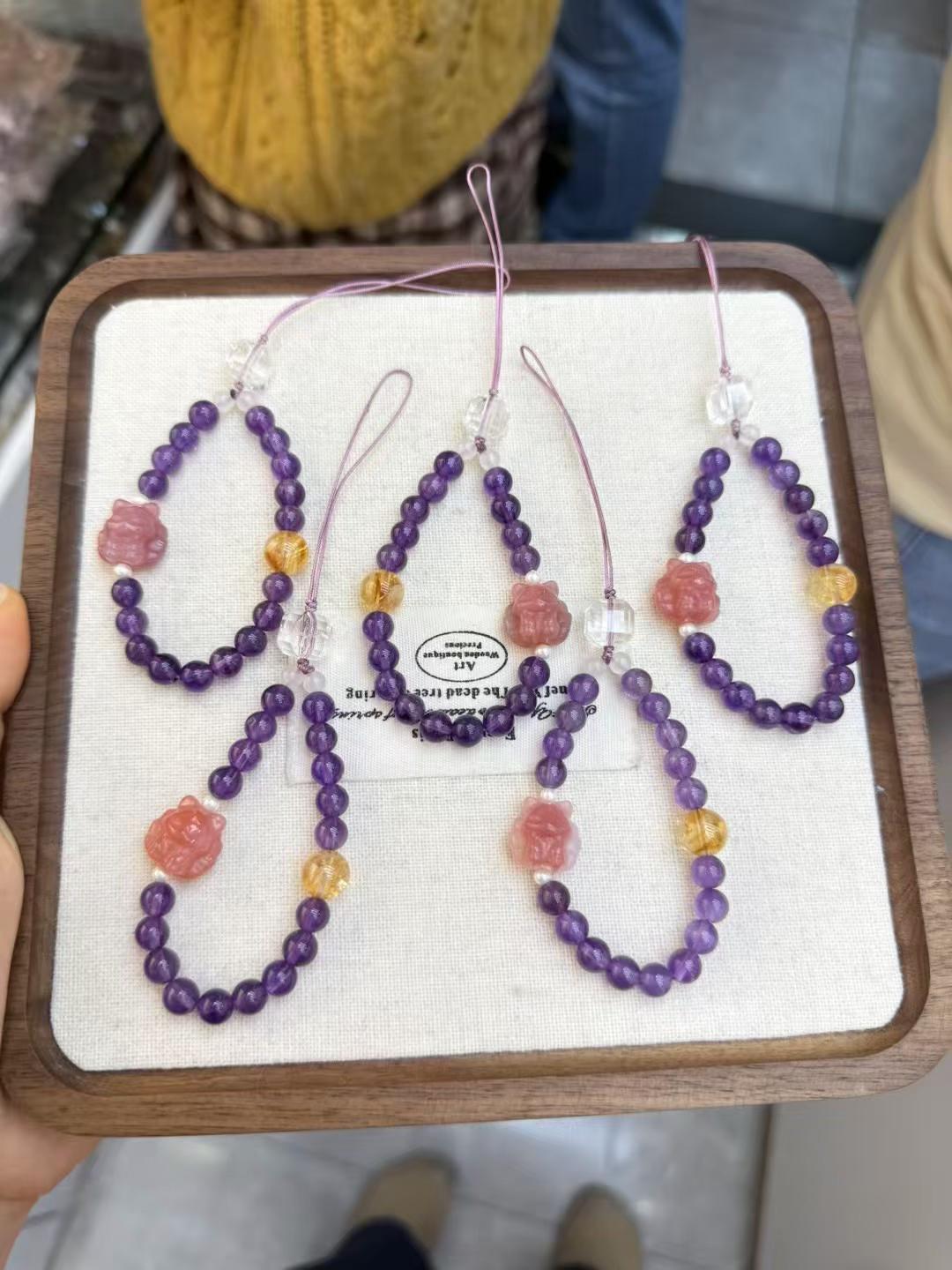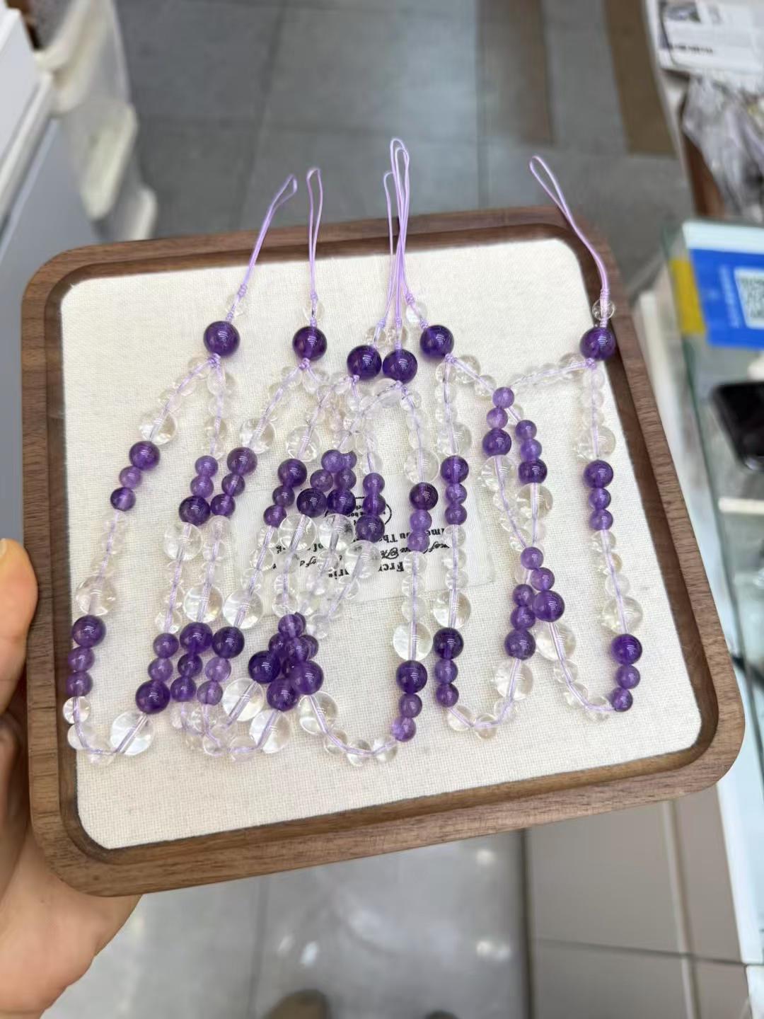 原创天然水晶挂件手机链中式挂绳手腕款车挂平安紫水晶夏