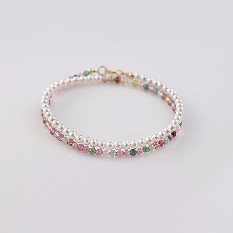 天然小碧玺贝珠双层手链女原创设计小众轻奢高级感精致手串批发