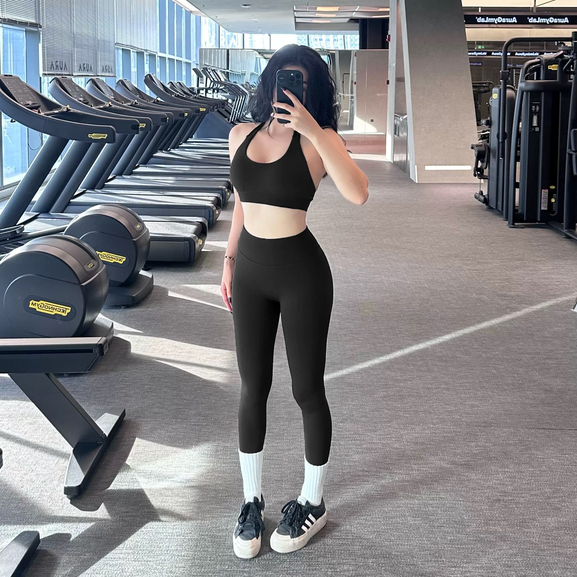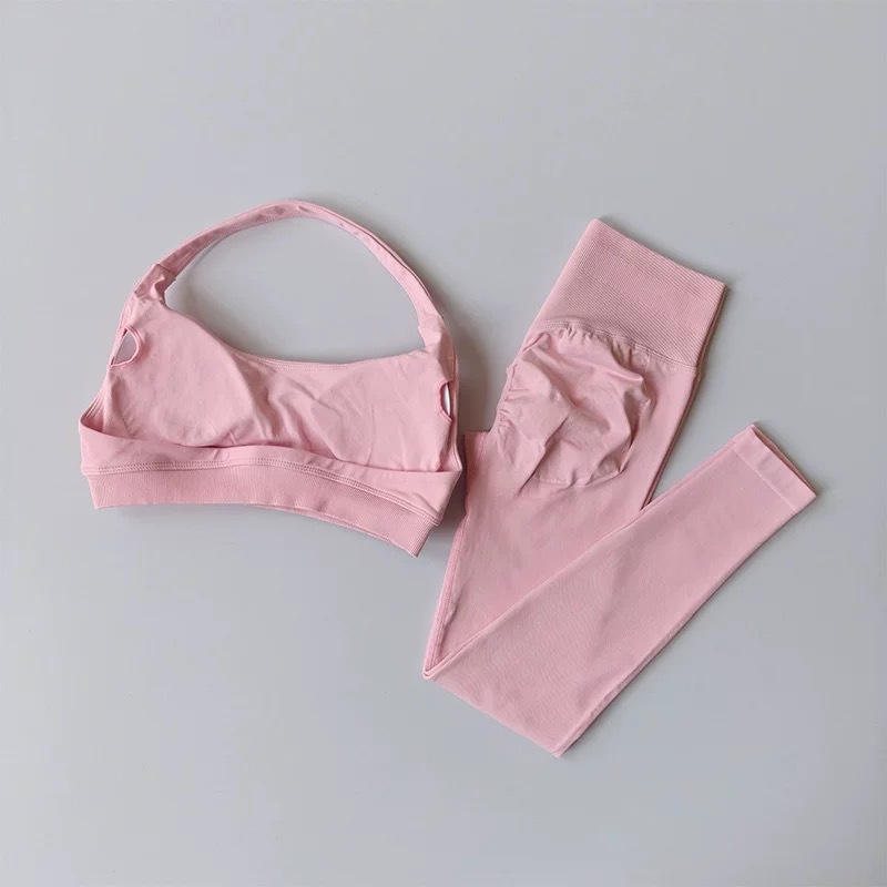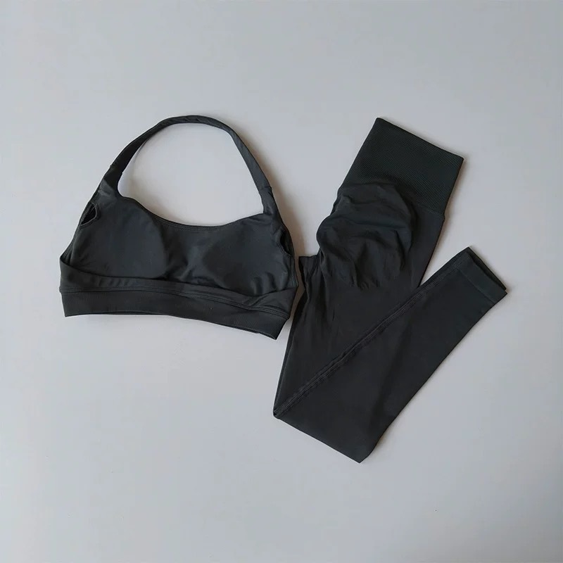 无缝新款瑜伽服套装挂脖带胸垫运动套装高腰提臀瑜伽裤套装健身服