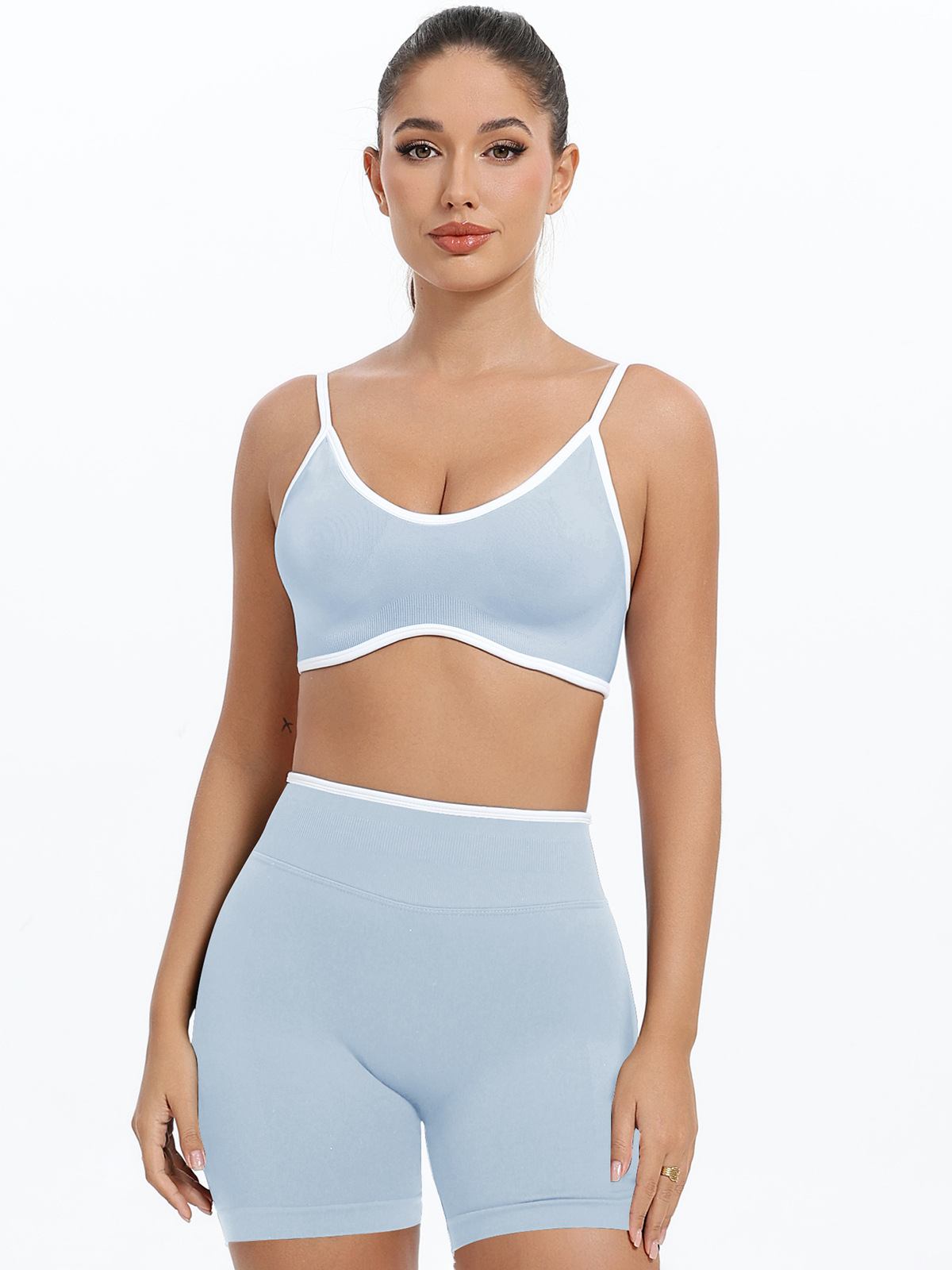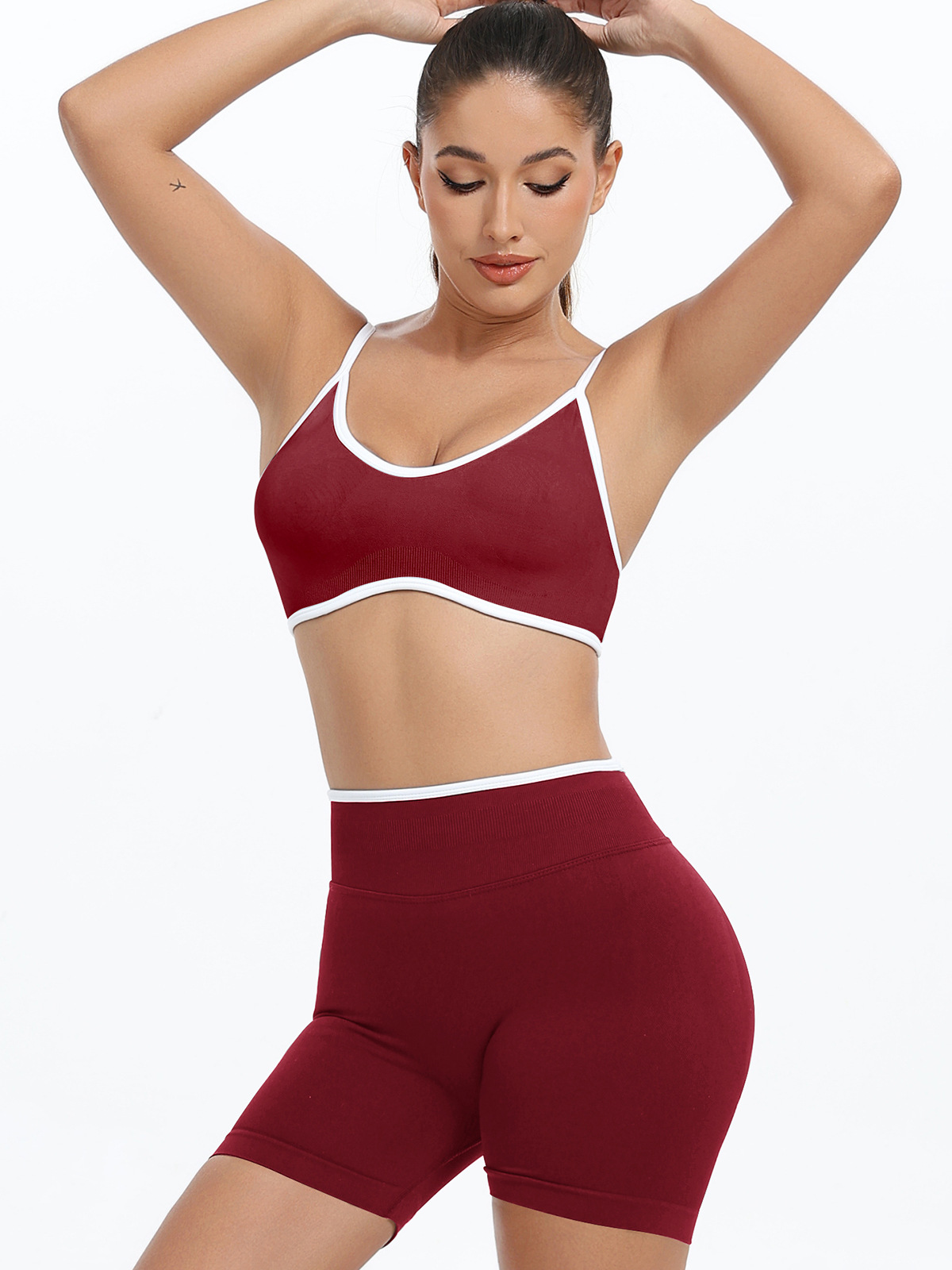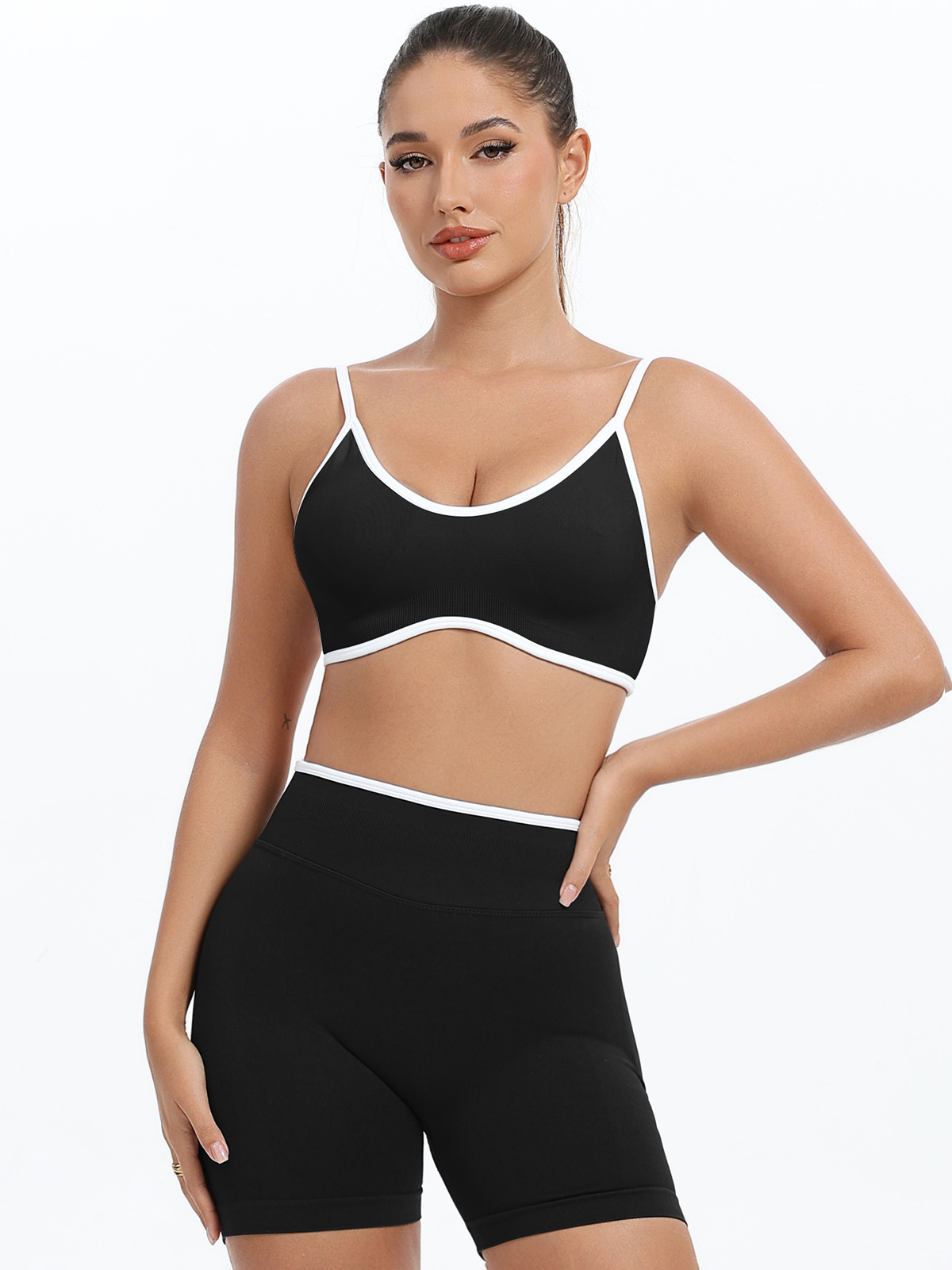 无缝新款瑜伽服套装撞色吊带文胸瑜伽短裤套装跑步健身服运动套装