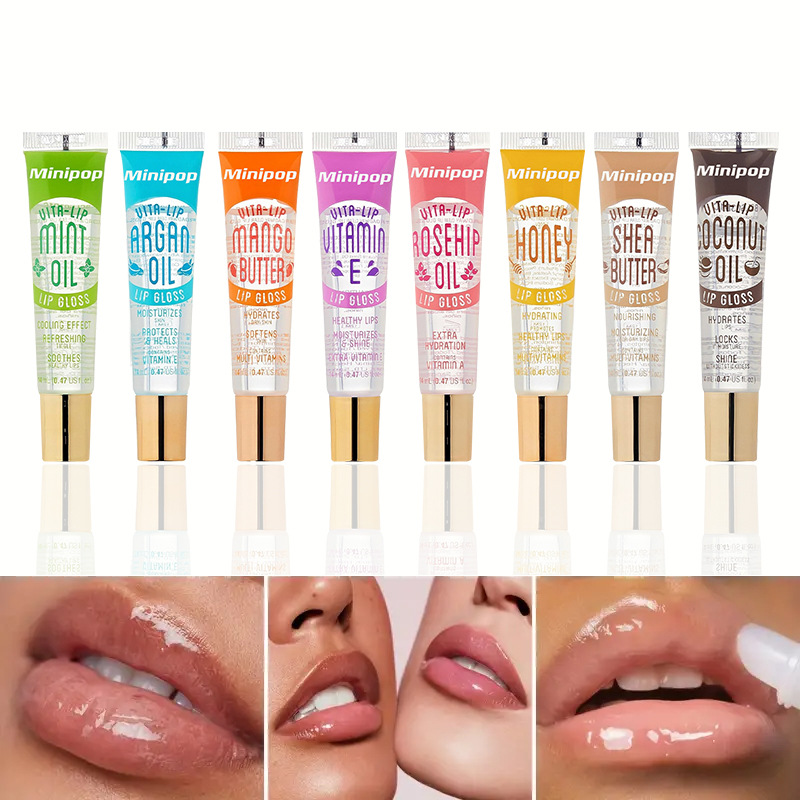 跨境8色水果软管透明无色滋润丰唇大嘴巴唇油唇蜜唇彩