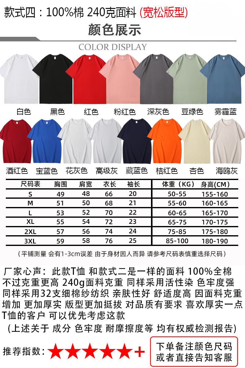 纯棉圆领T恤定制工作衣班服印字logo刺绣宽松落肩短袖广告衫订做