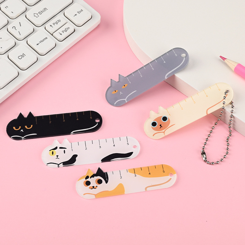 可爱猫咪直尺亚克力掌心尺学生用高颜值卡通文具用品挂件送朋友