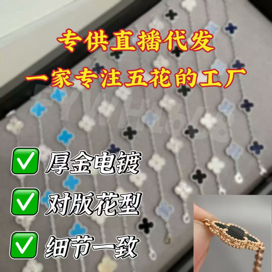 梵家v金四叶草手链高版镀18k真金高克重五花手链CNC扣直播批发