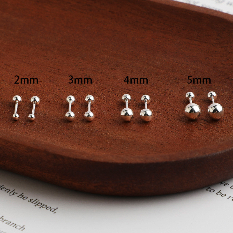 足银999精工圆珠耳钉睡觉不用摘耳骨钉螺丝豆豆耳针环养耳洞耳饰