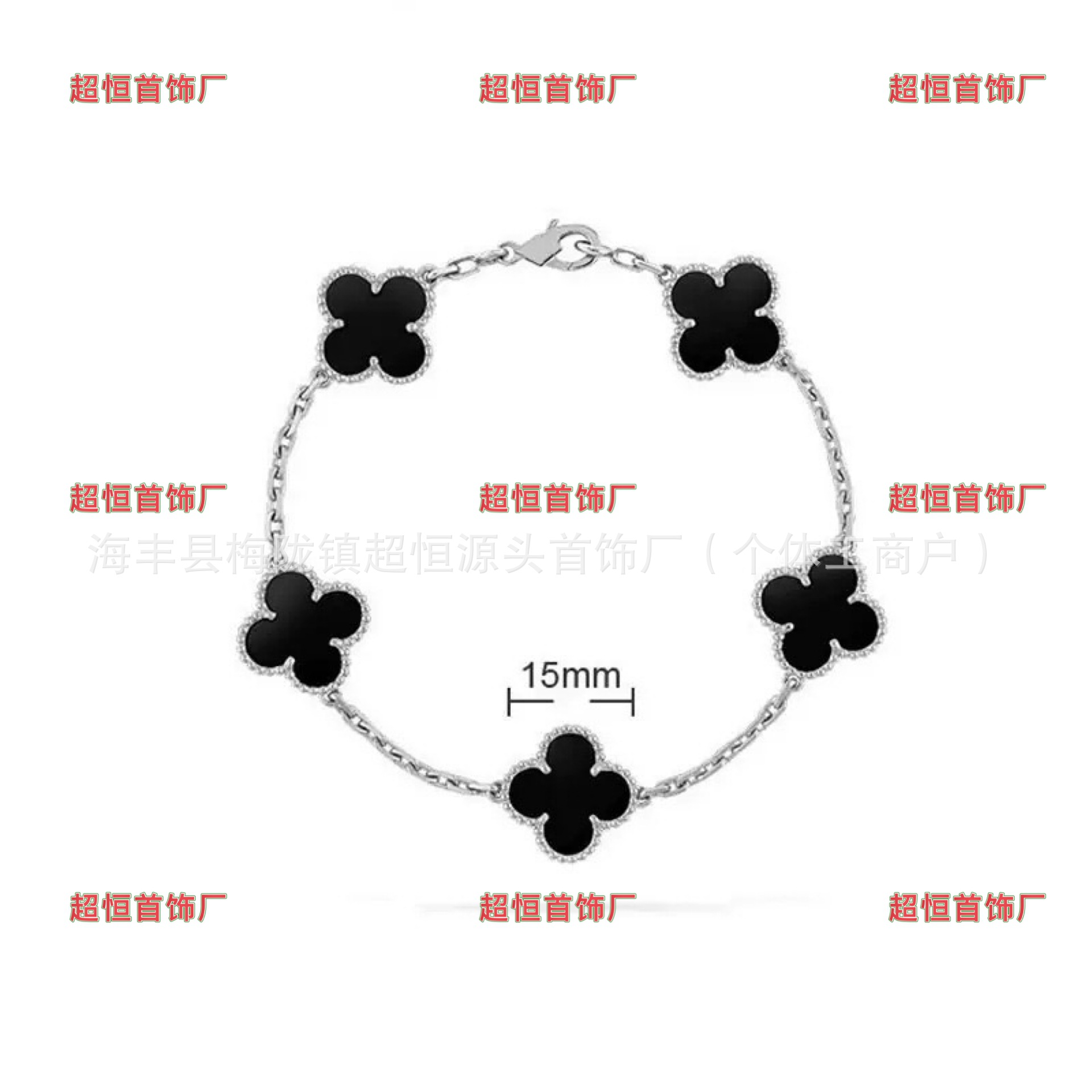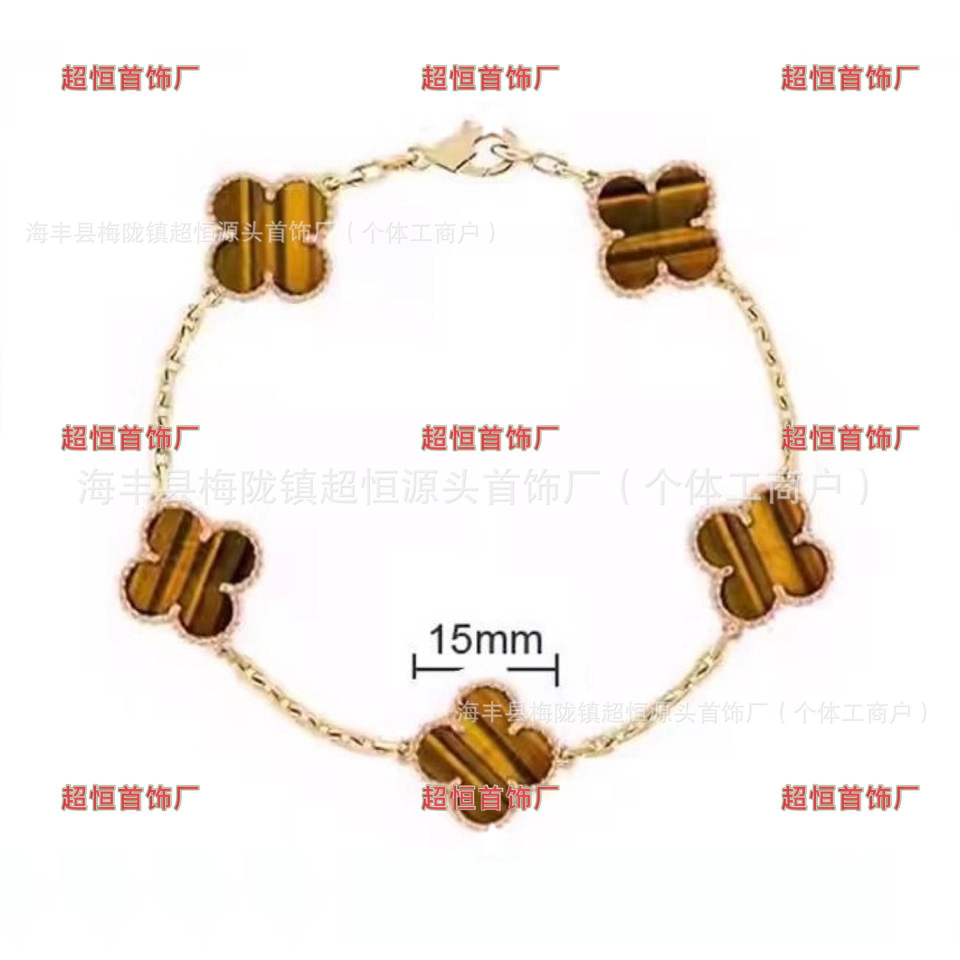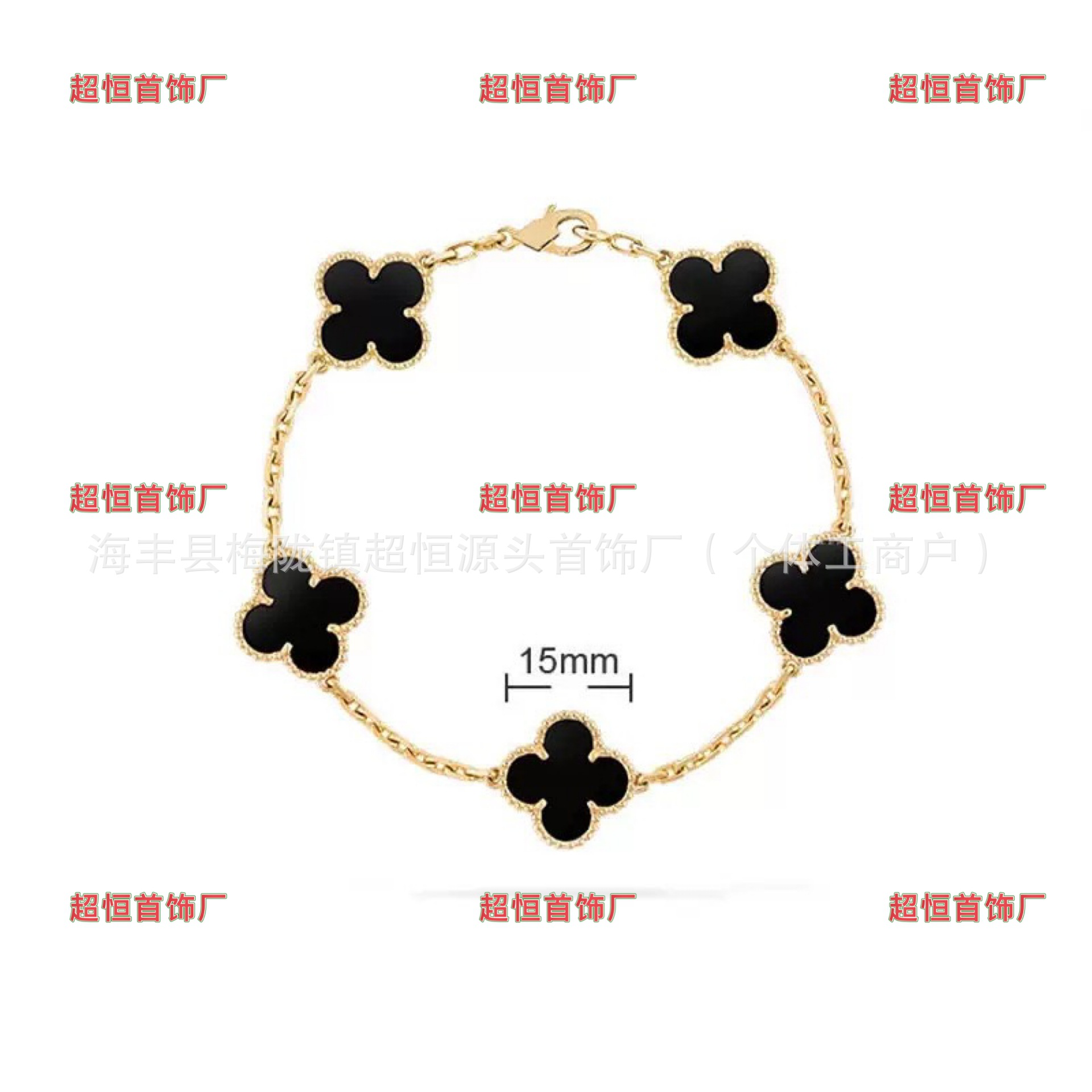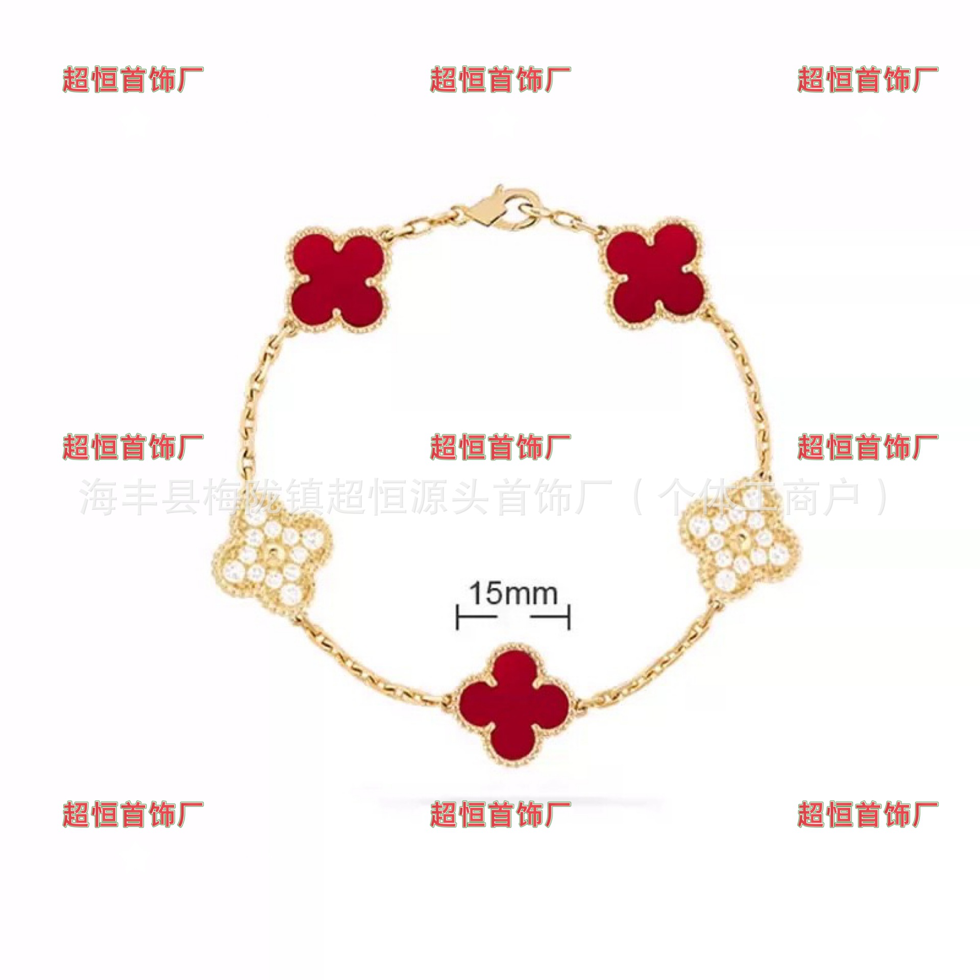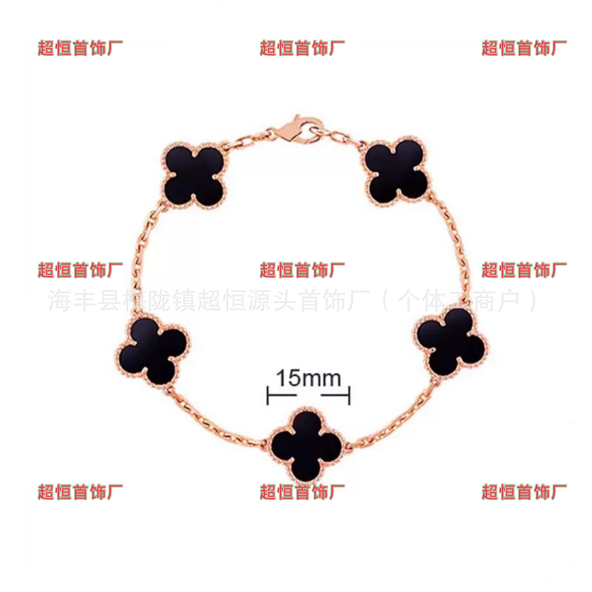 V金CNC精雕瘦花18k玫瑰金红玛瑙熊猫四叶草925银五花手链直播批发