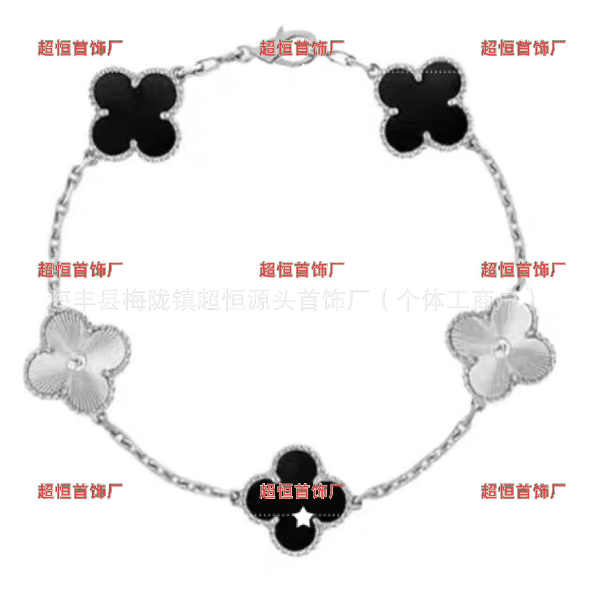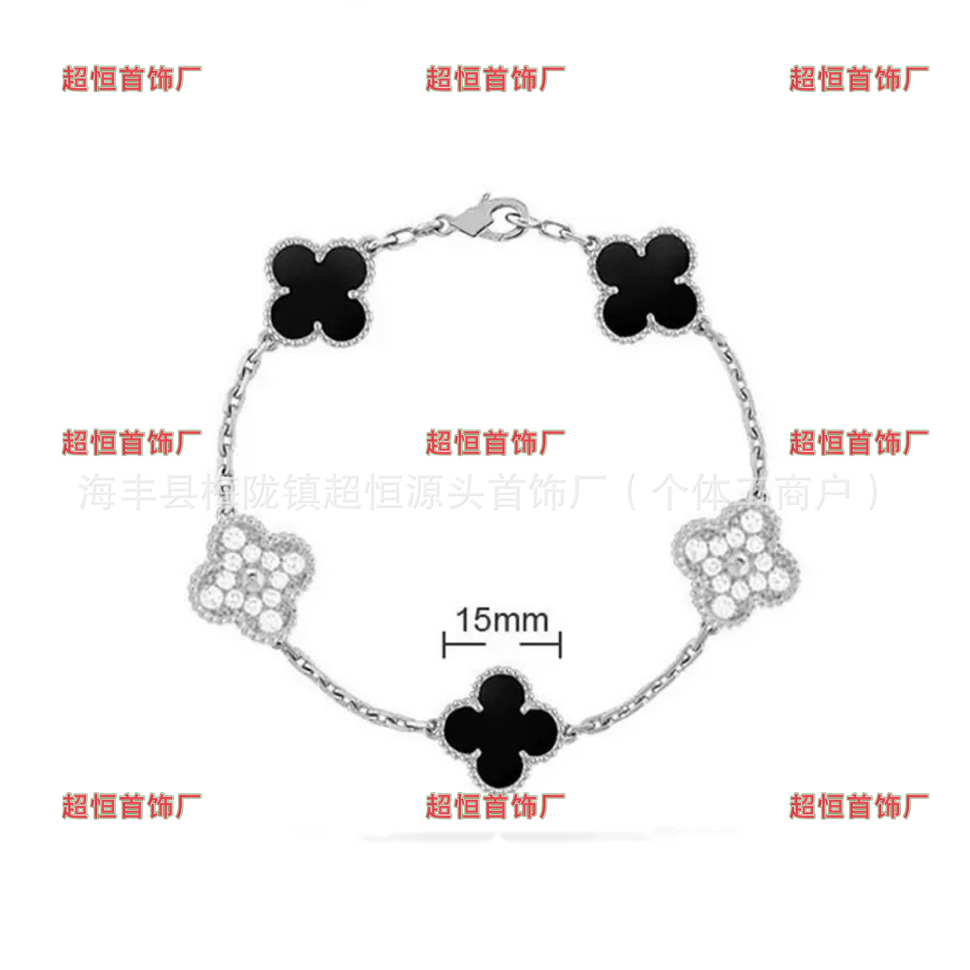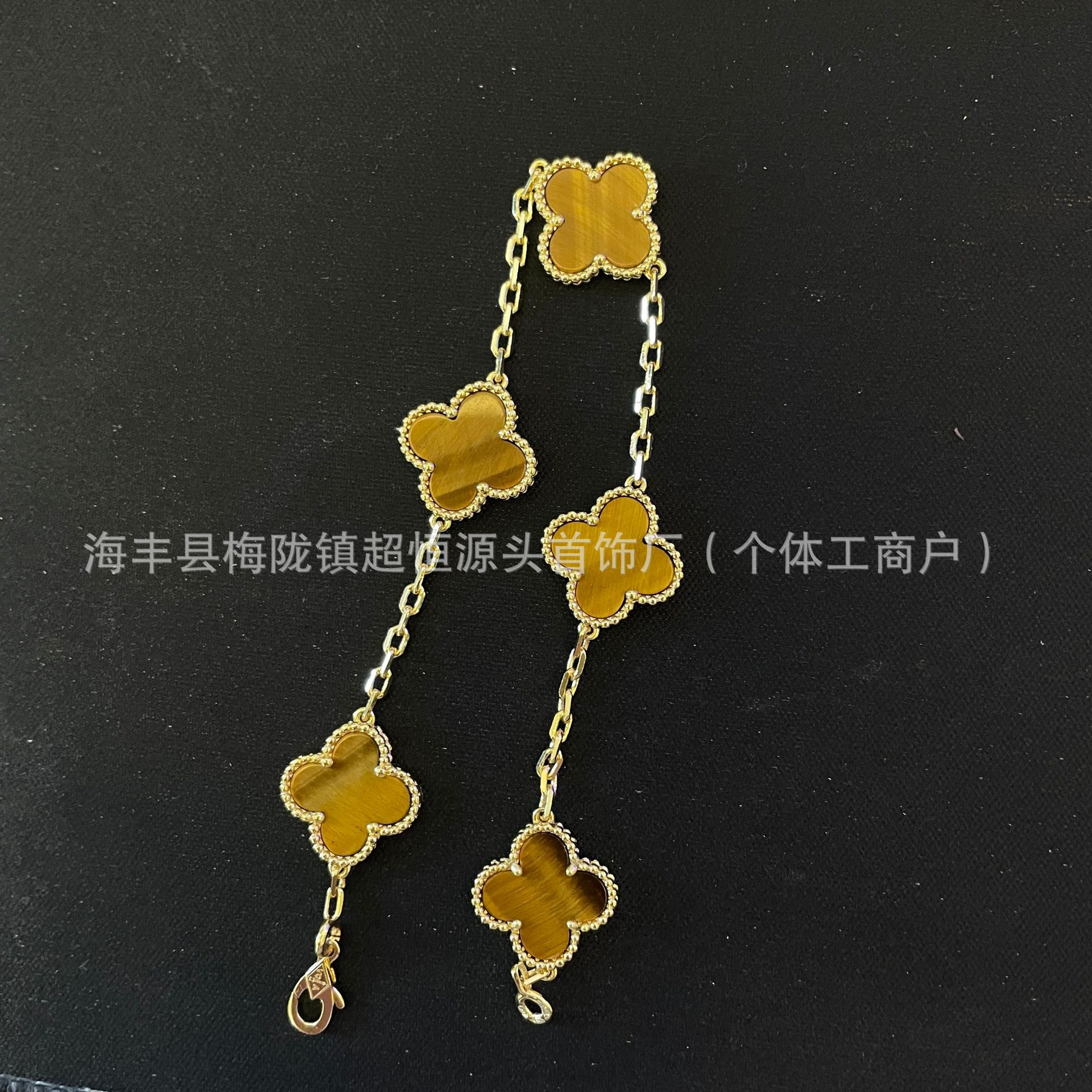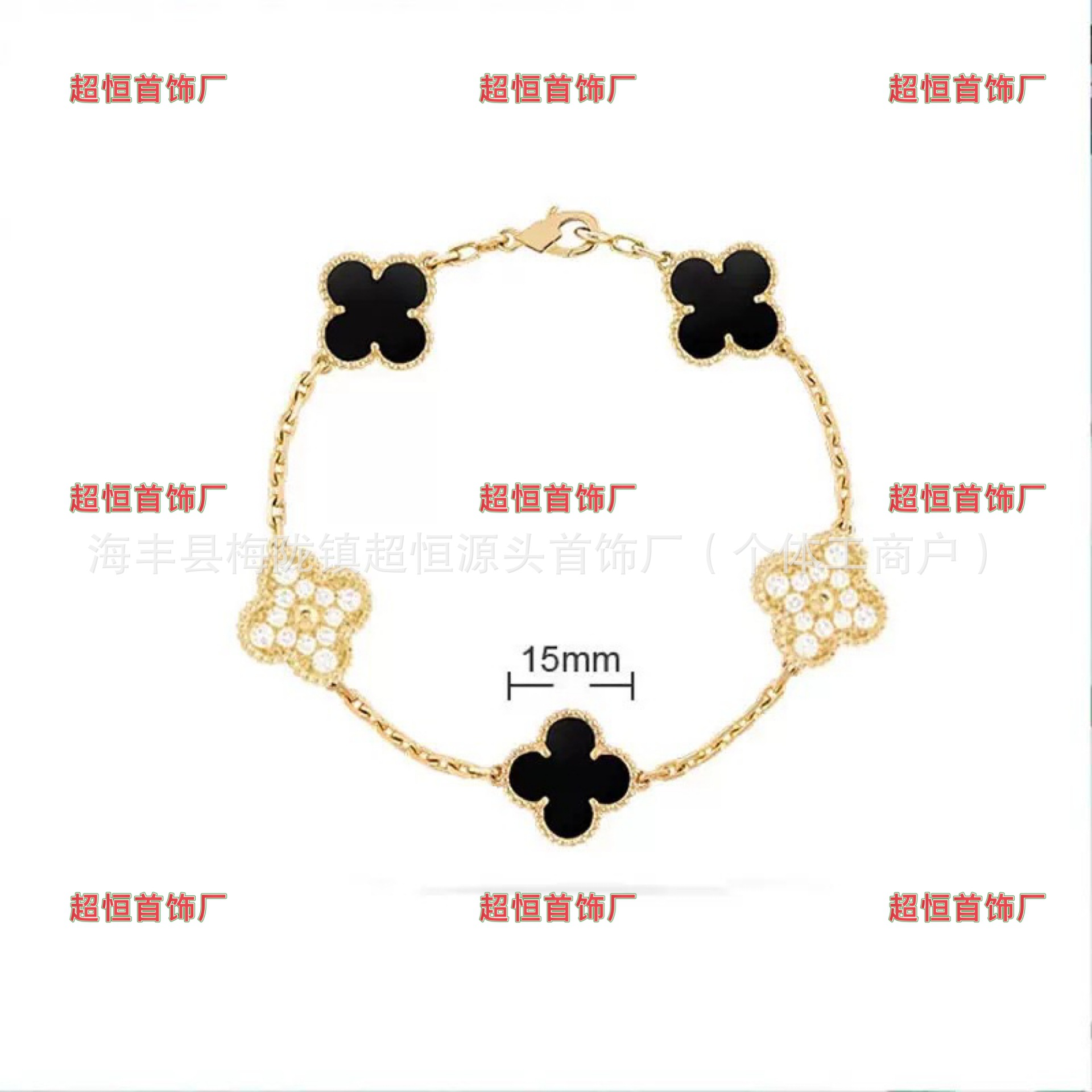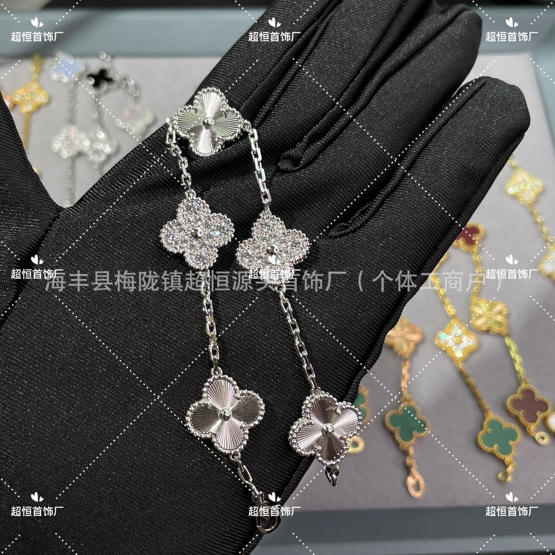 V金CNC精雕瘦花18k玫瑰金红玛瑙熊猫四叶草925银五花手链直播批发