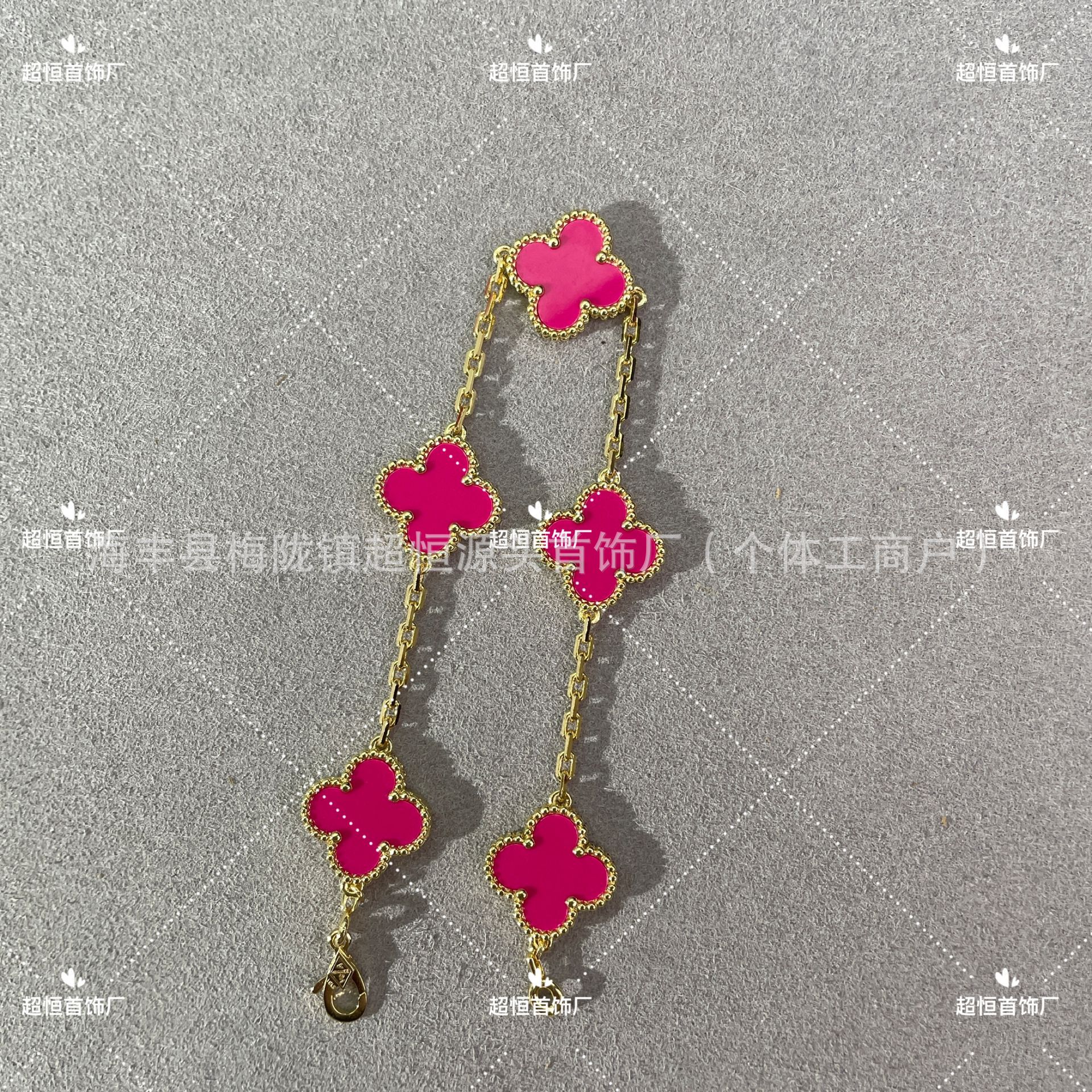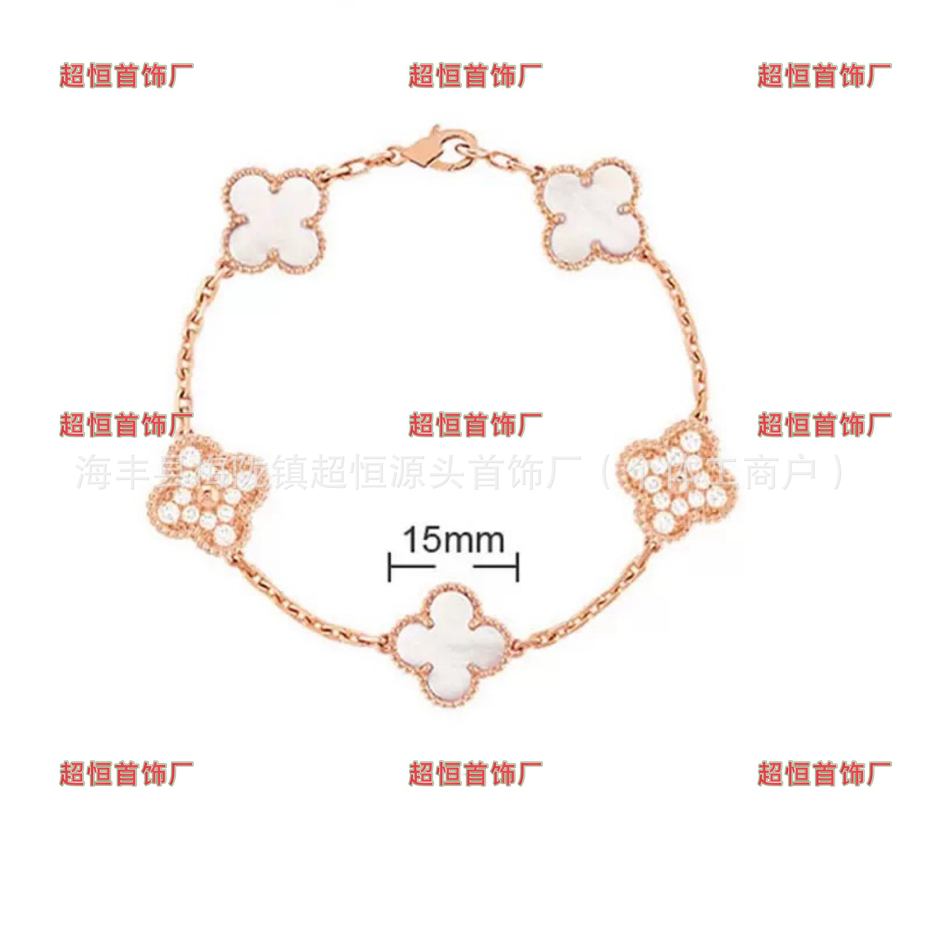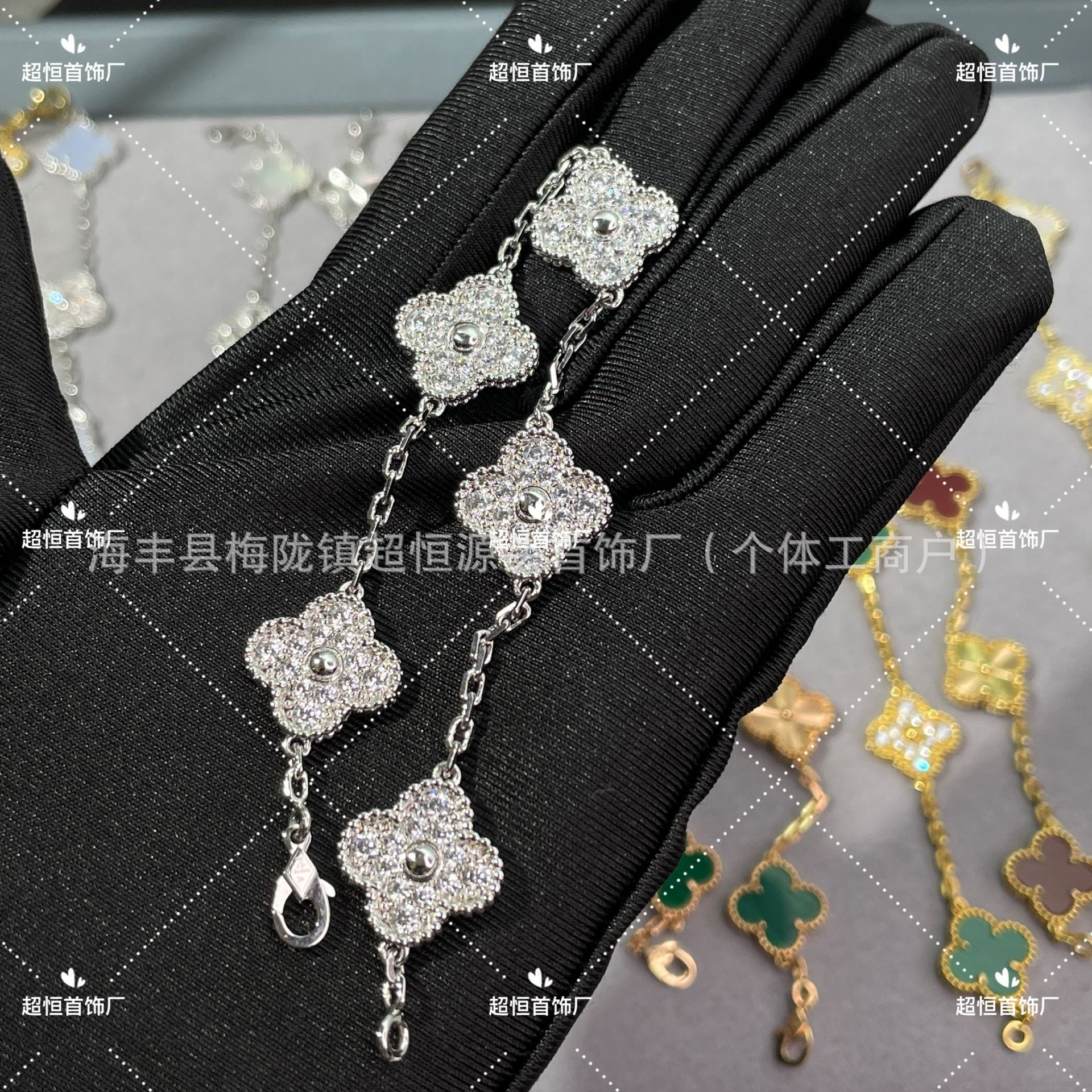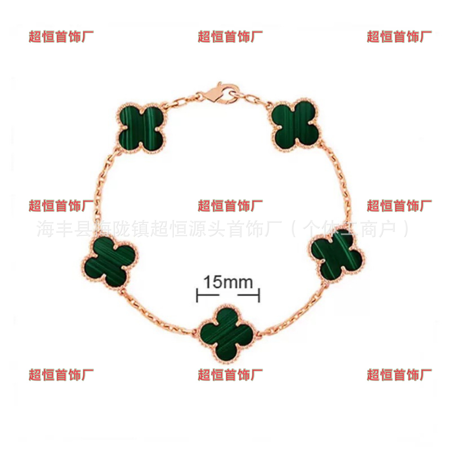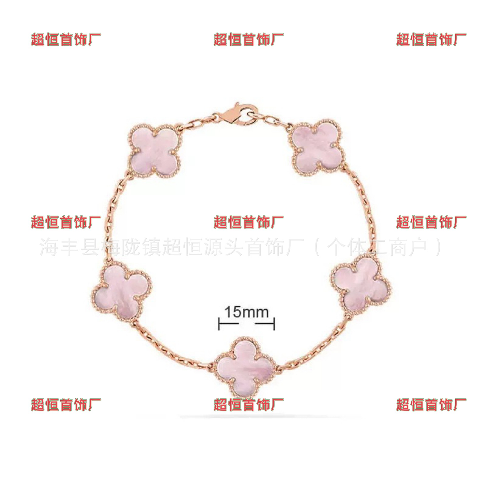 V金CNC精雕瘦花18k玫瑰金红玛瑙熊猫四叶草925银五花手链直播批发