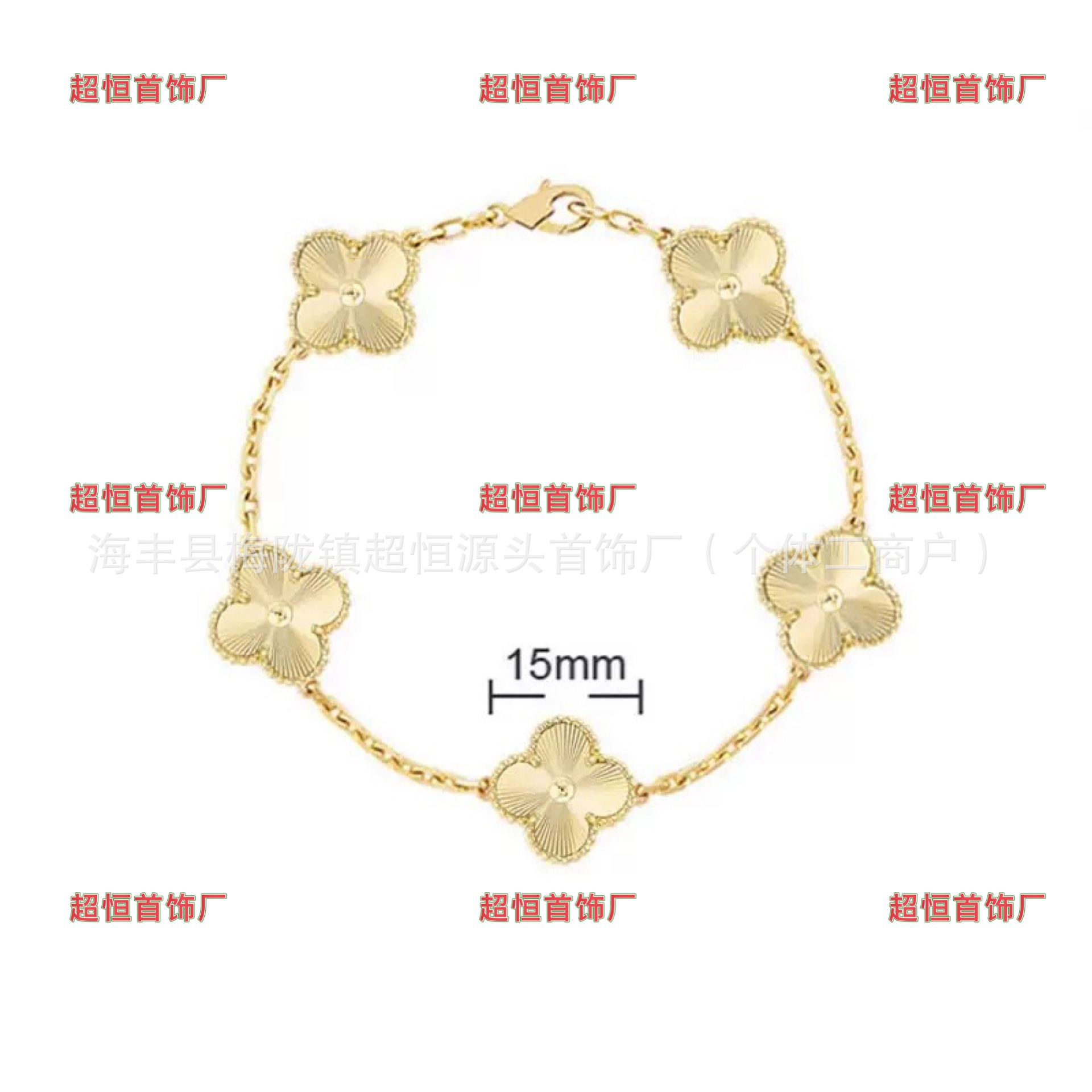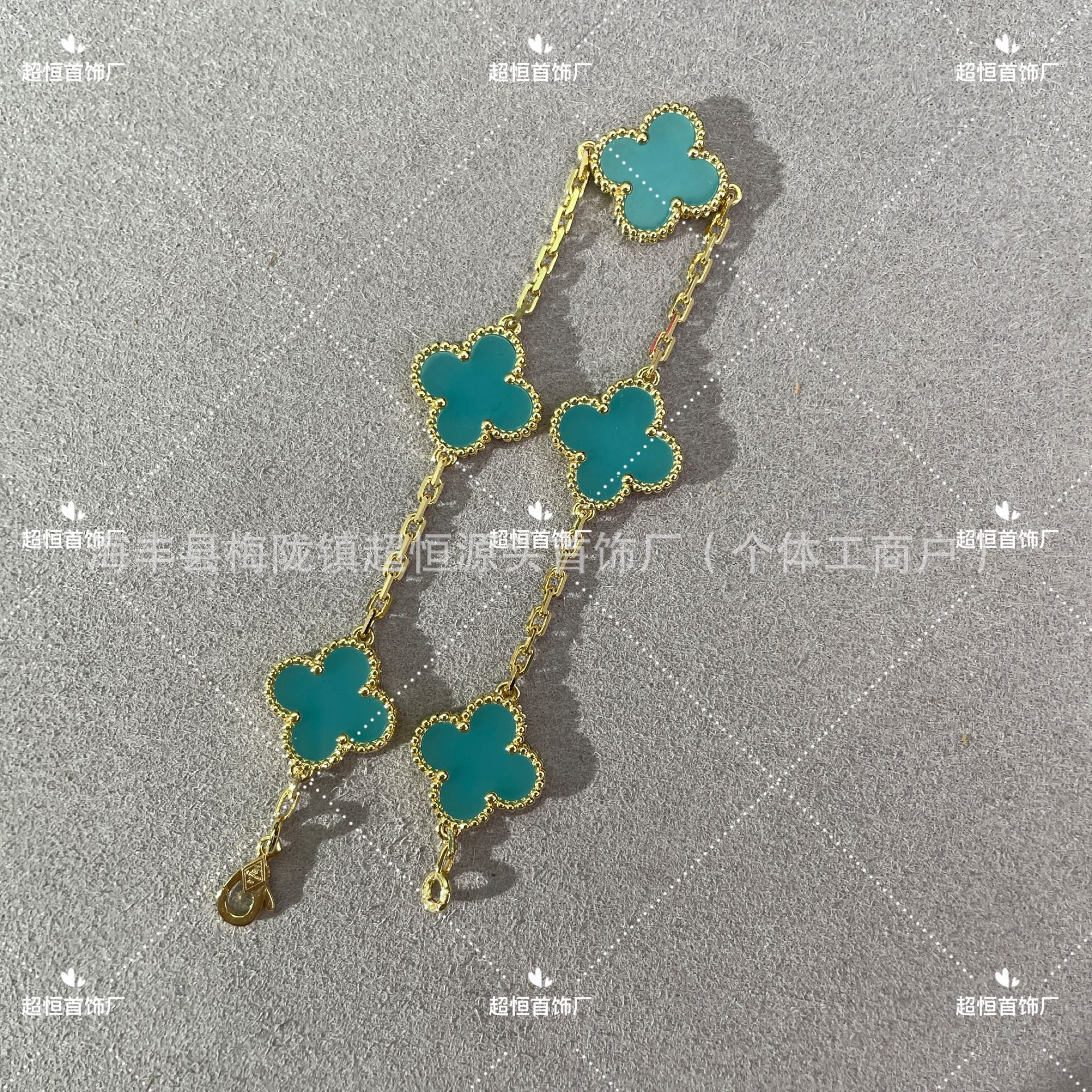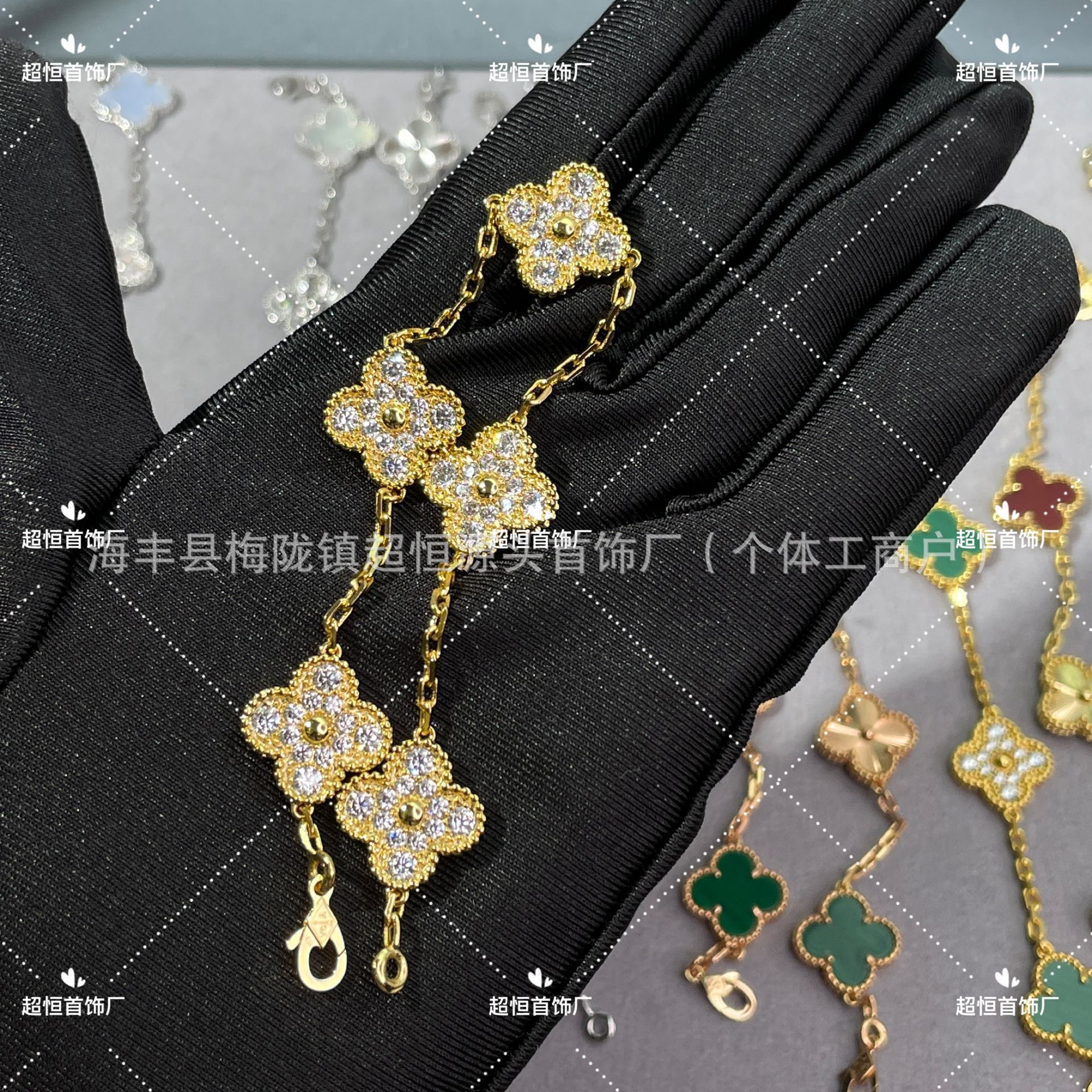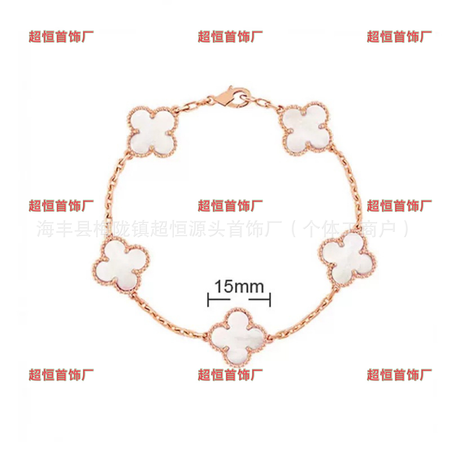 V金CNC精雕瘦花18k玫瑰金红玛瑙熊猫四叶草925银五花手链直播批发
