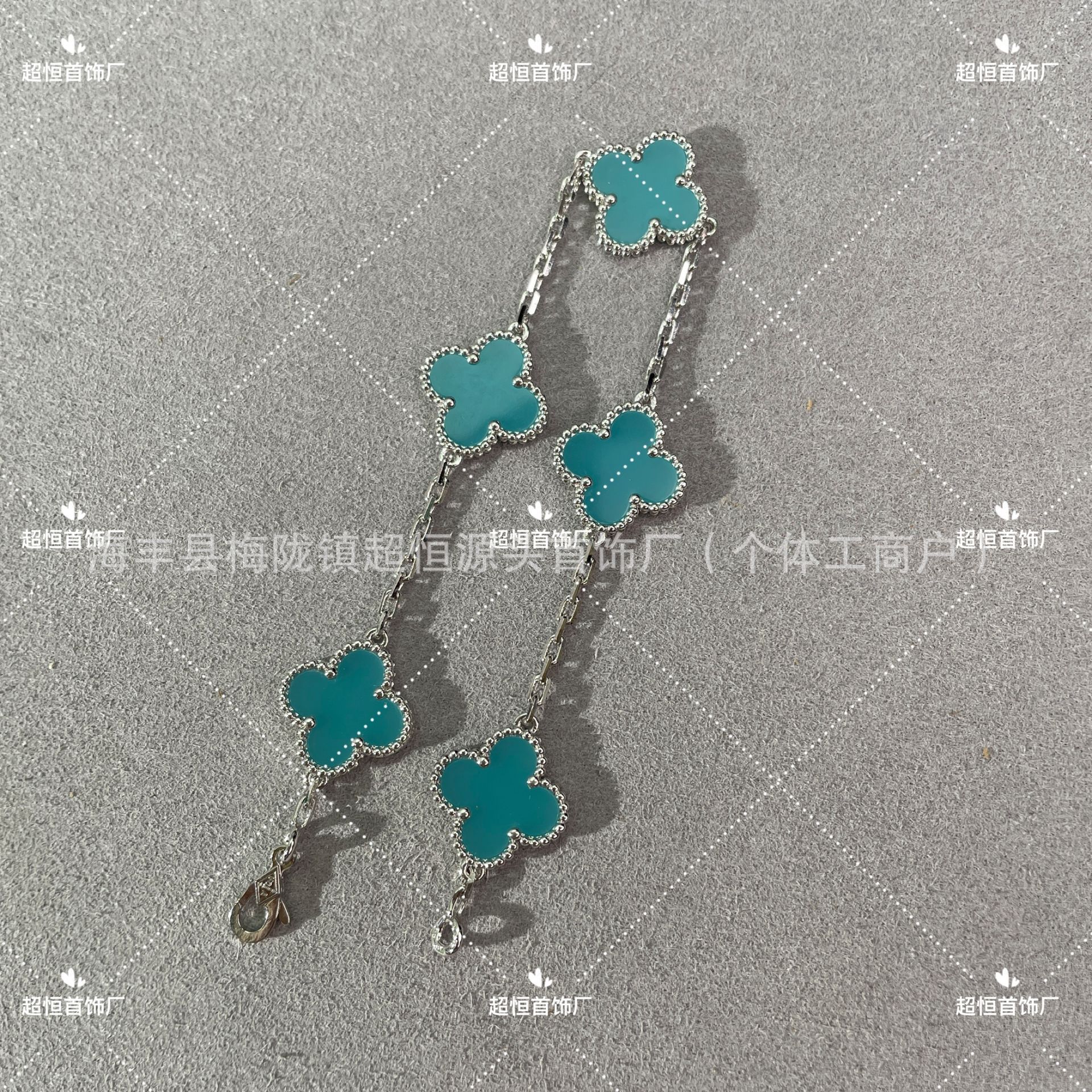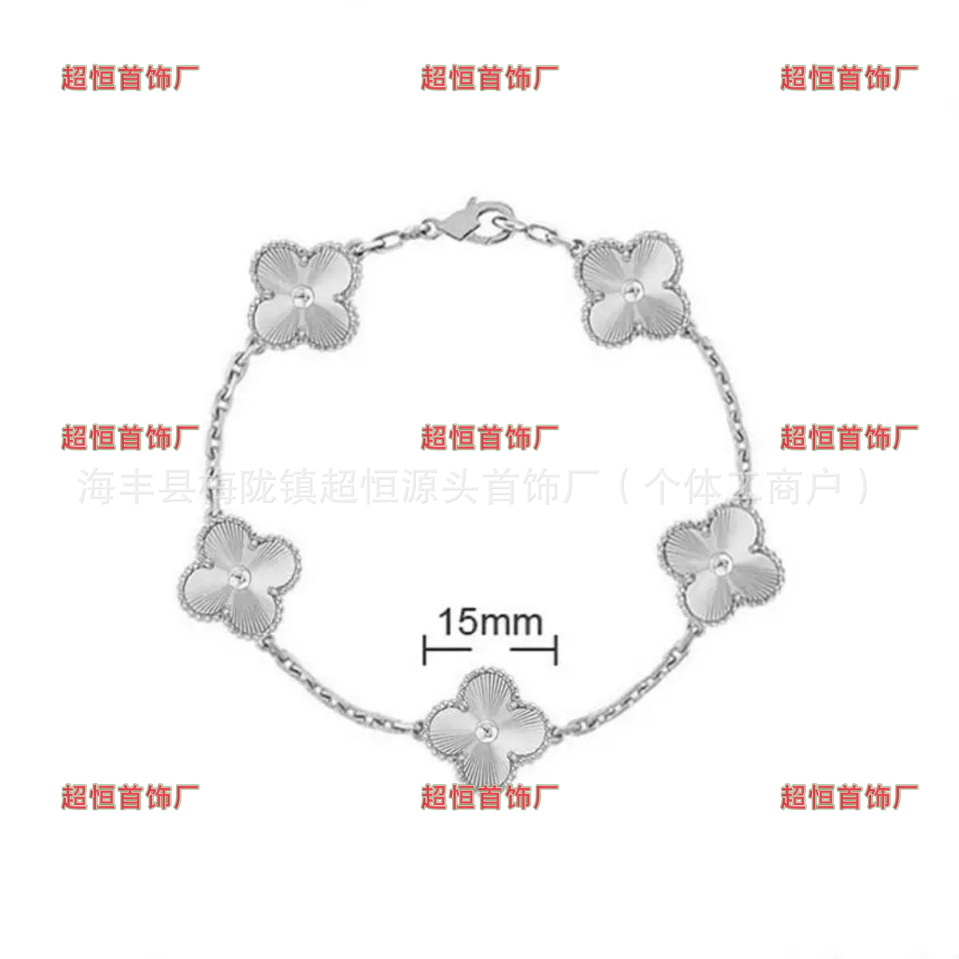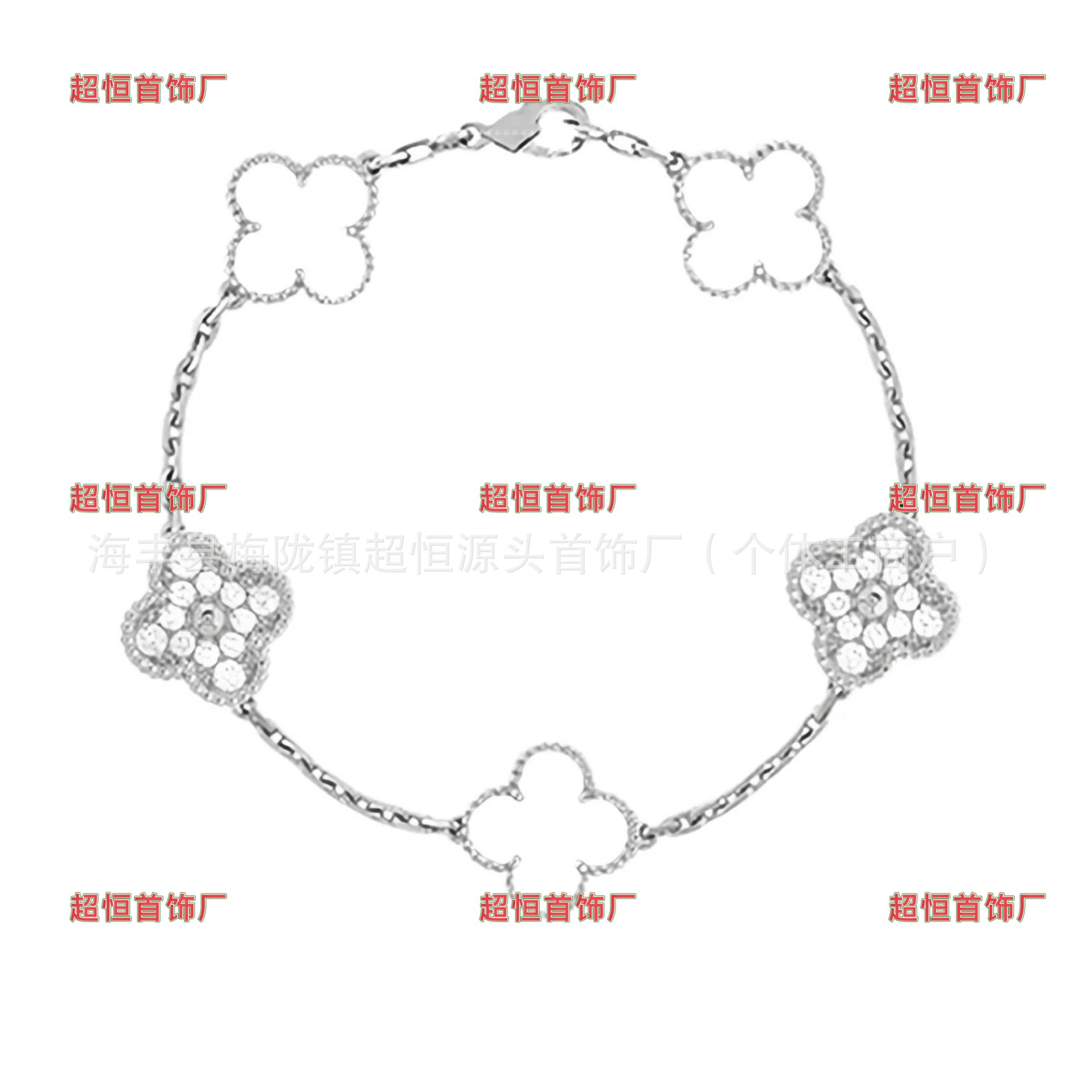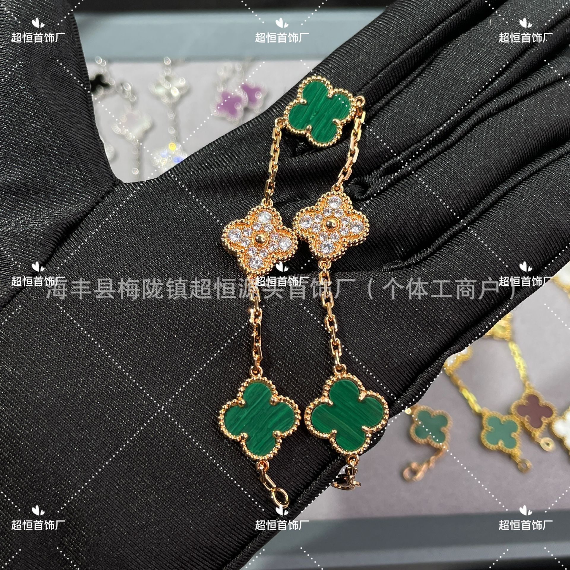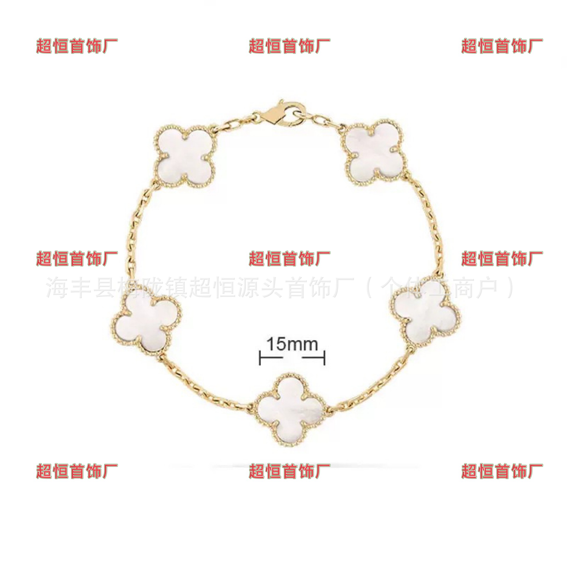 V金CNC精雕瘦花18k玫瑰金红玛瑙熊猫四叶草925银五花手链直播批发