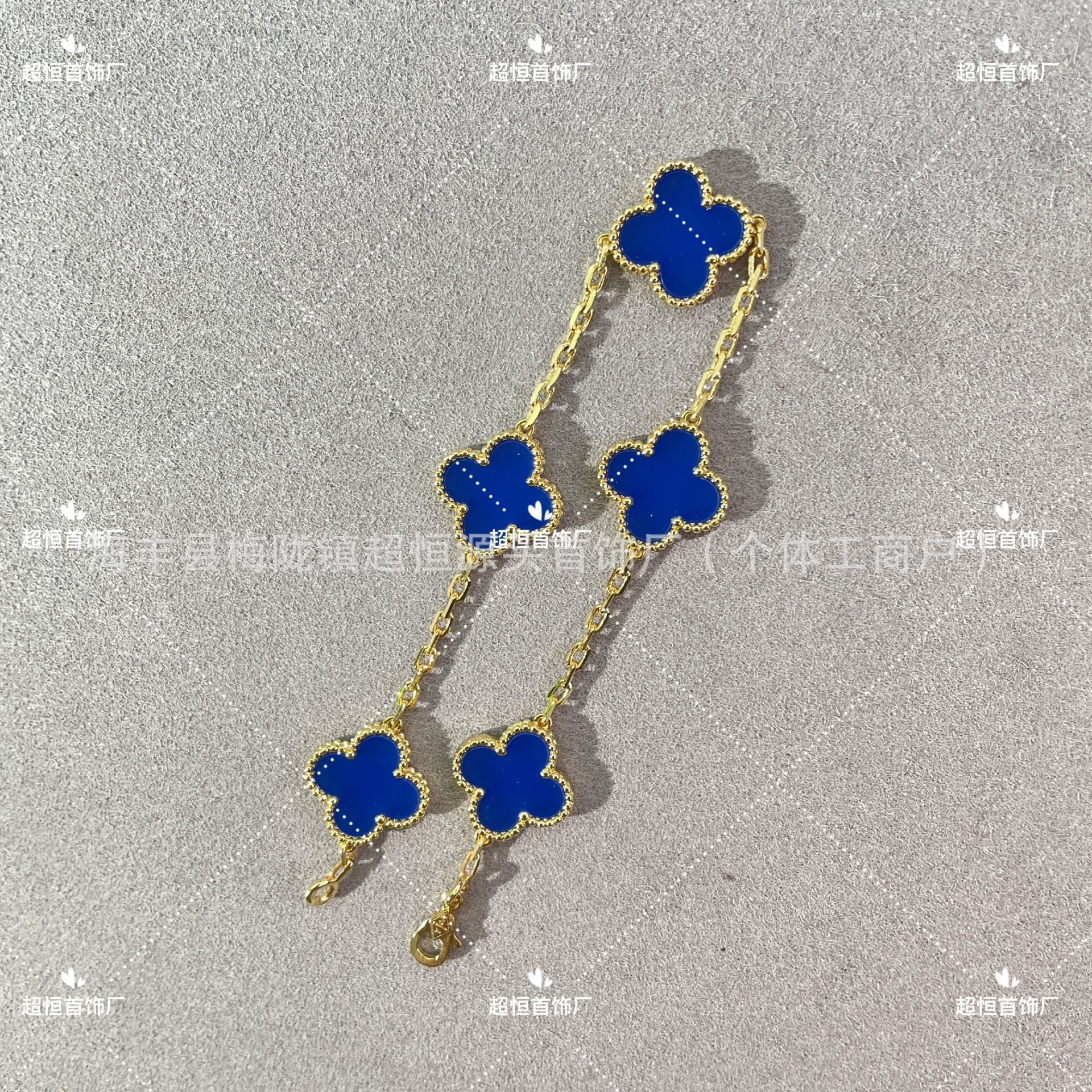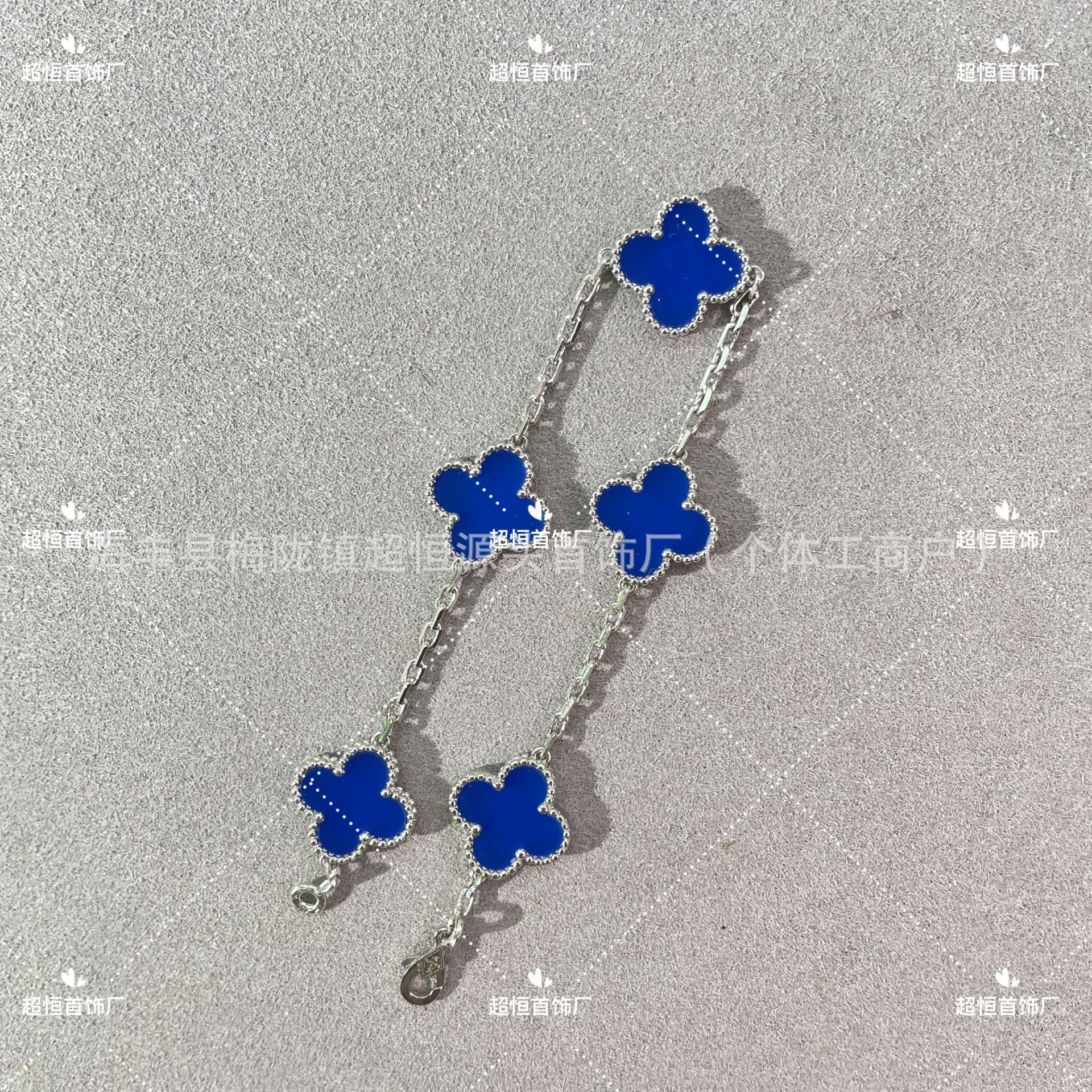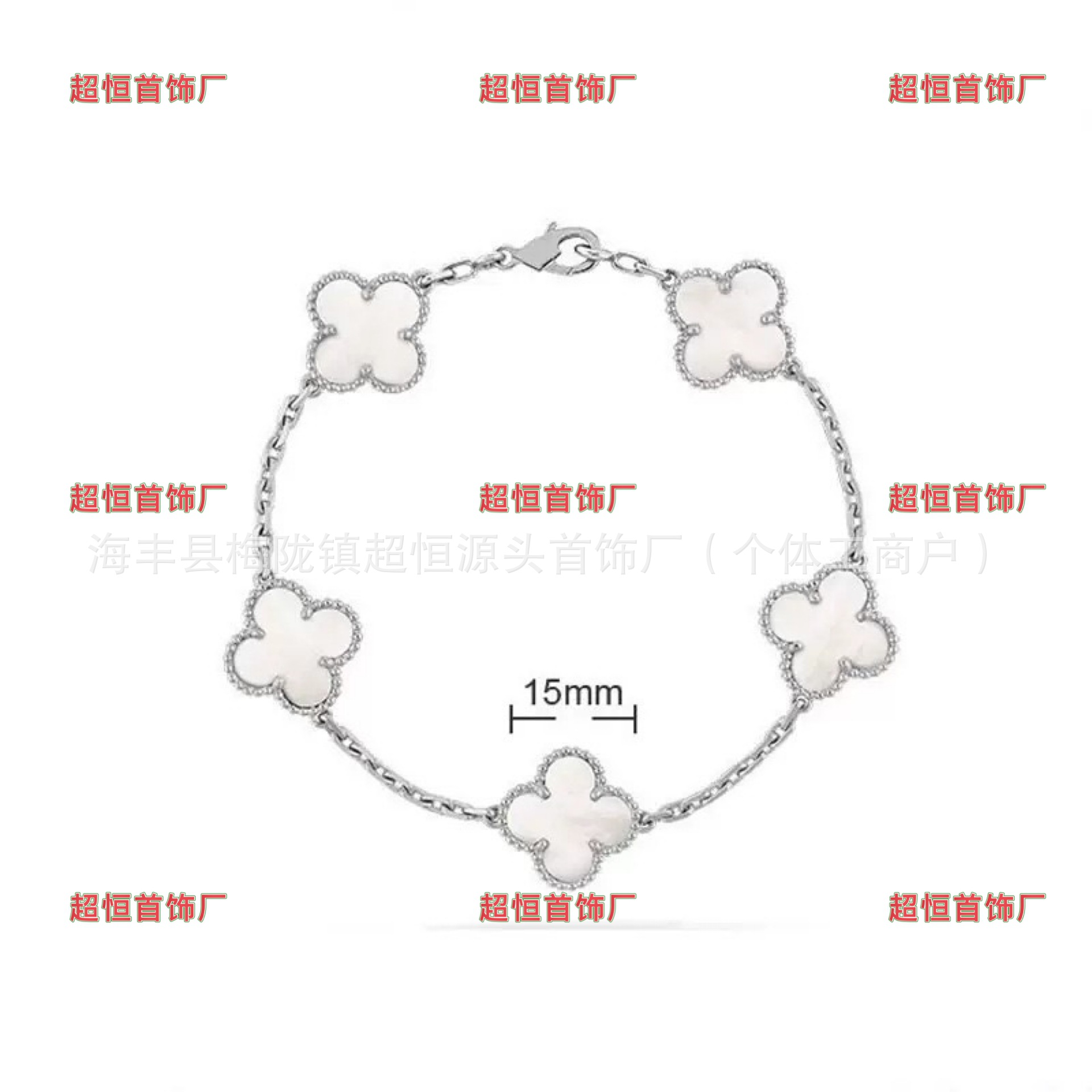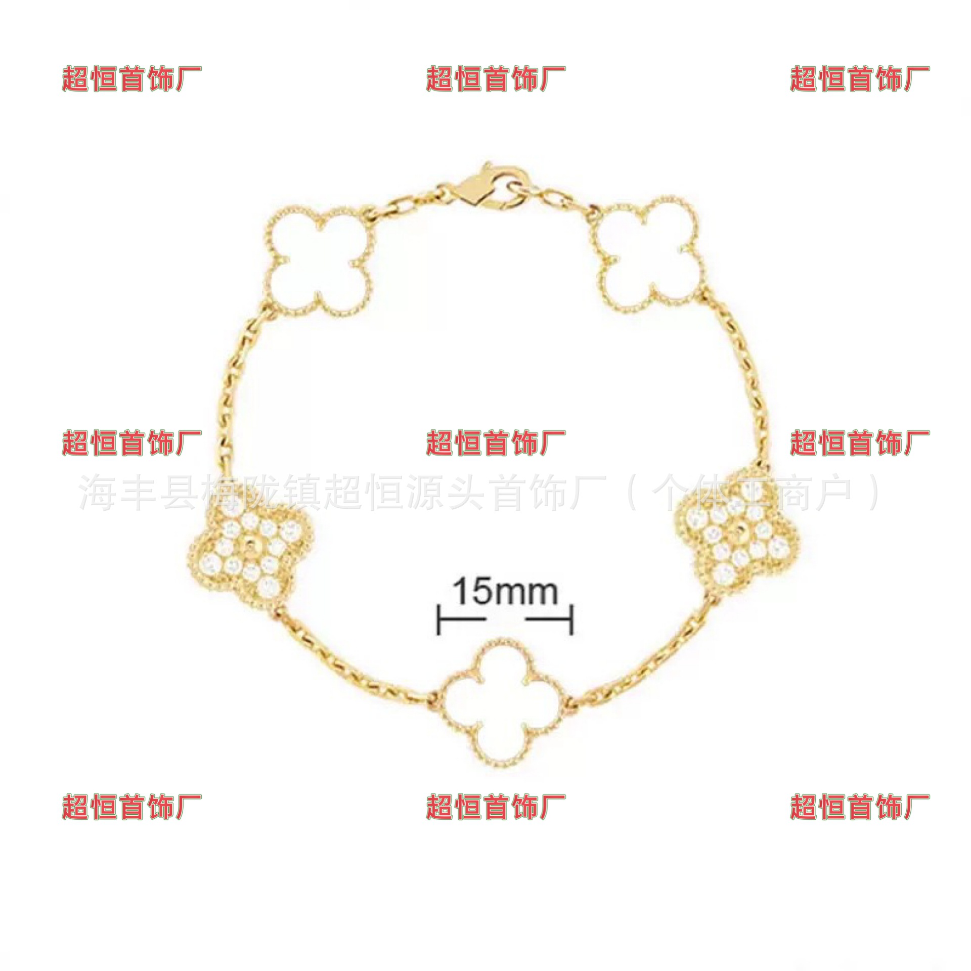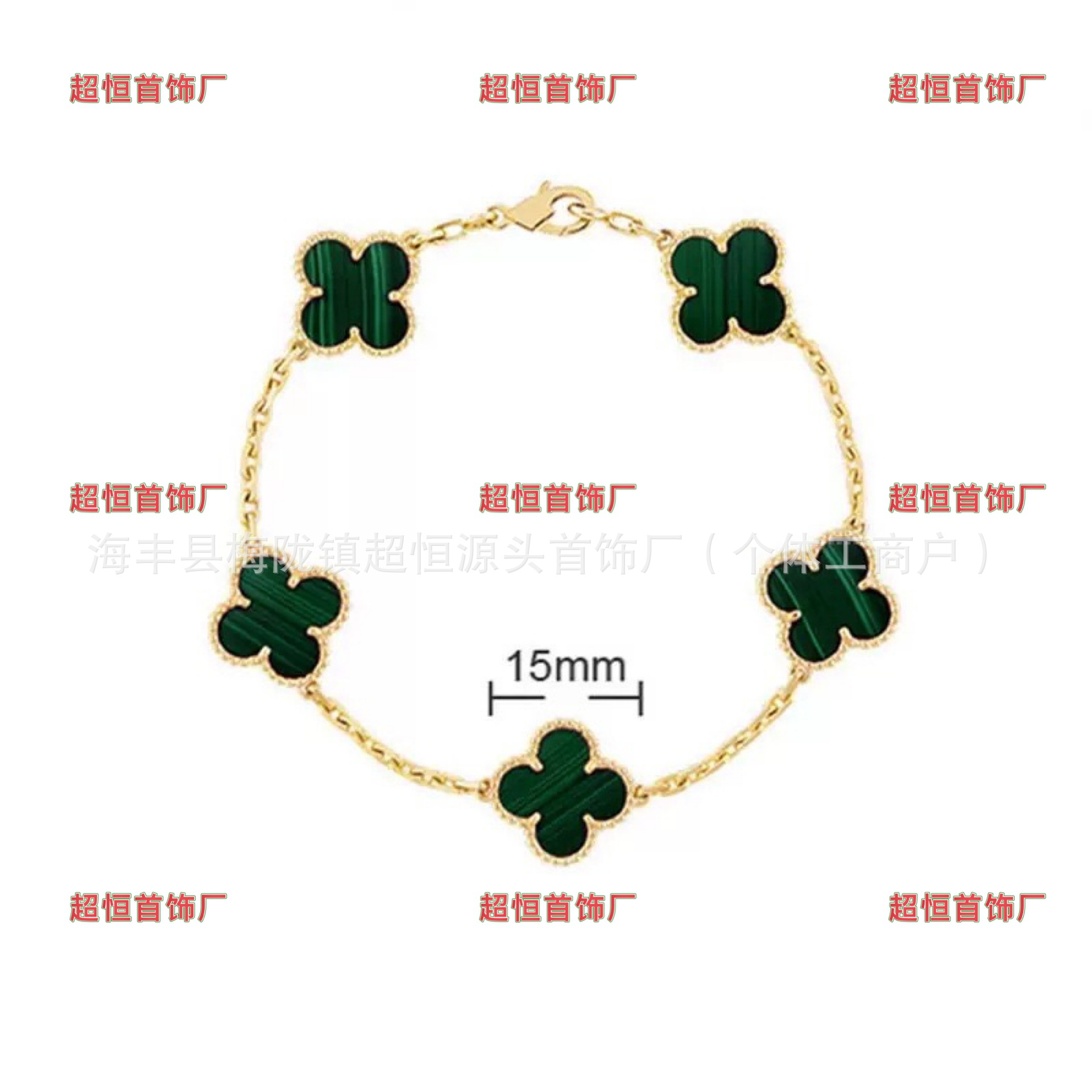 V金CNC精雕瘦花18k玫瑰金红玛瑙熊猫四叶草925银五花手链直播批发