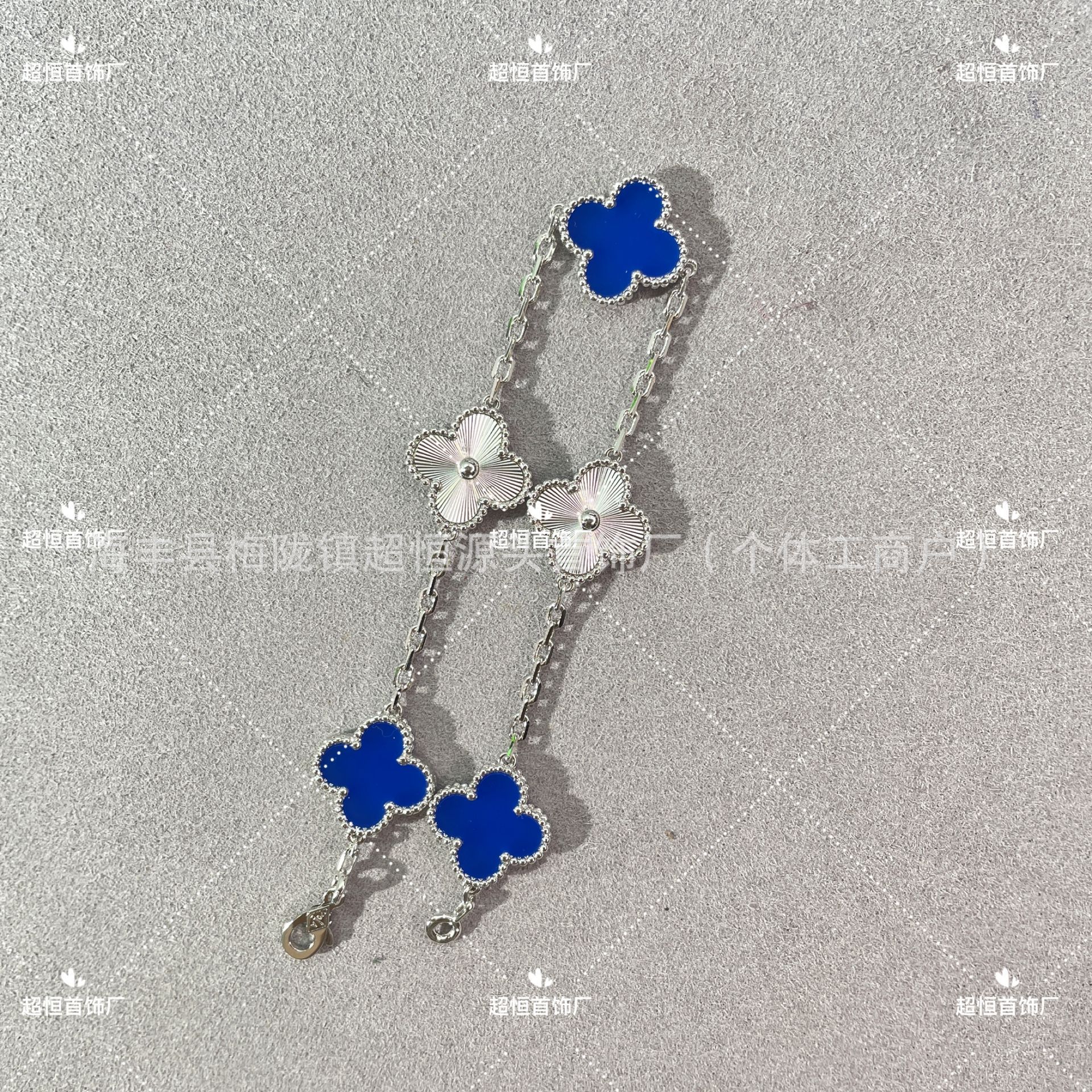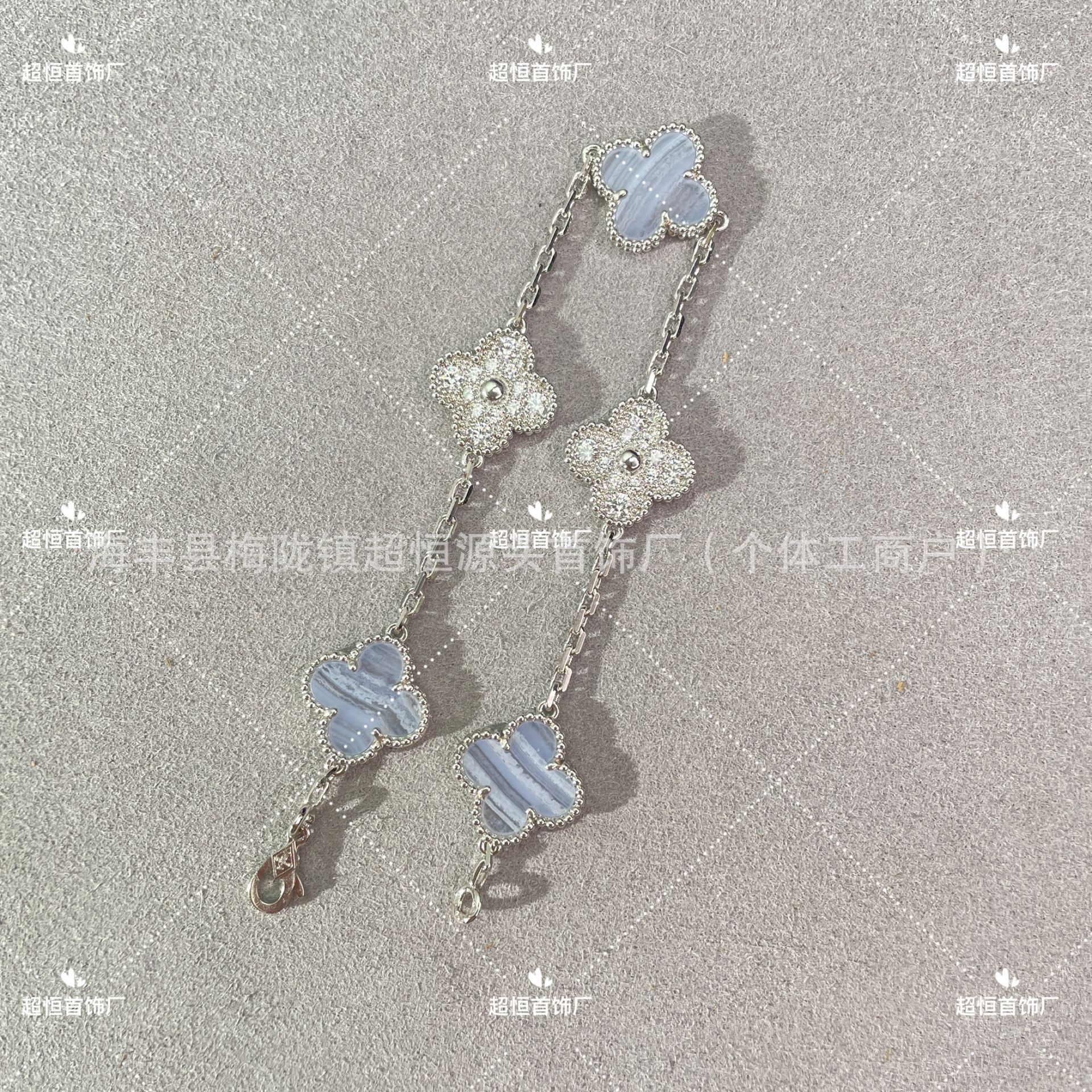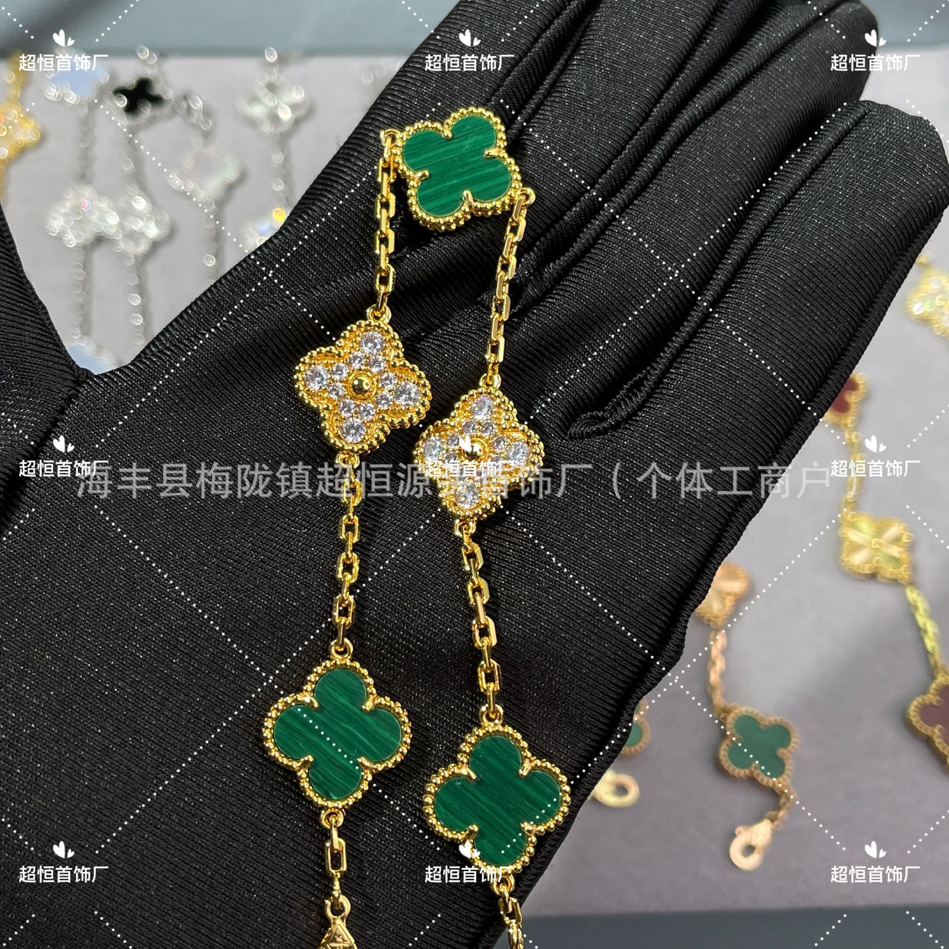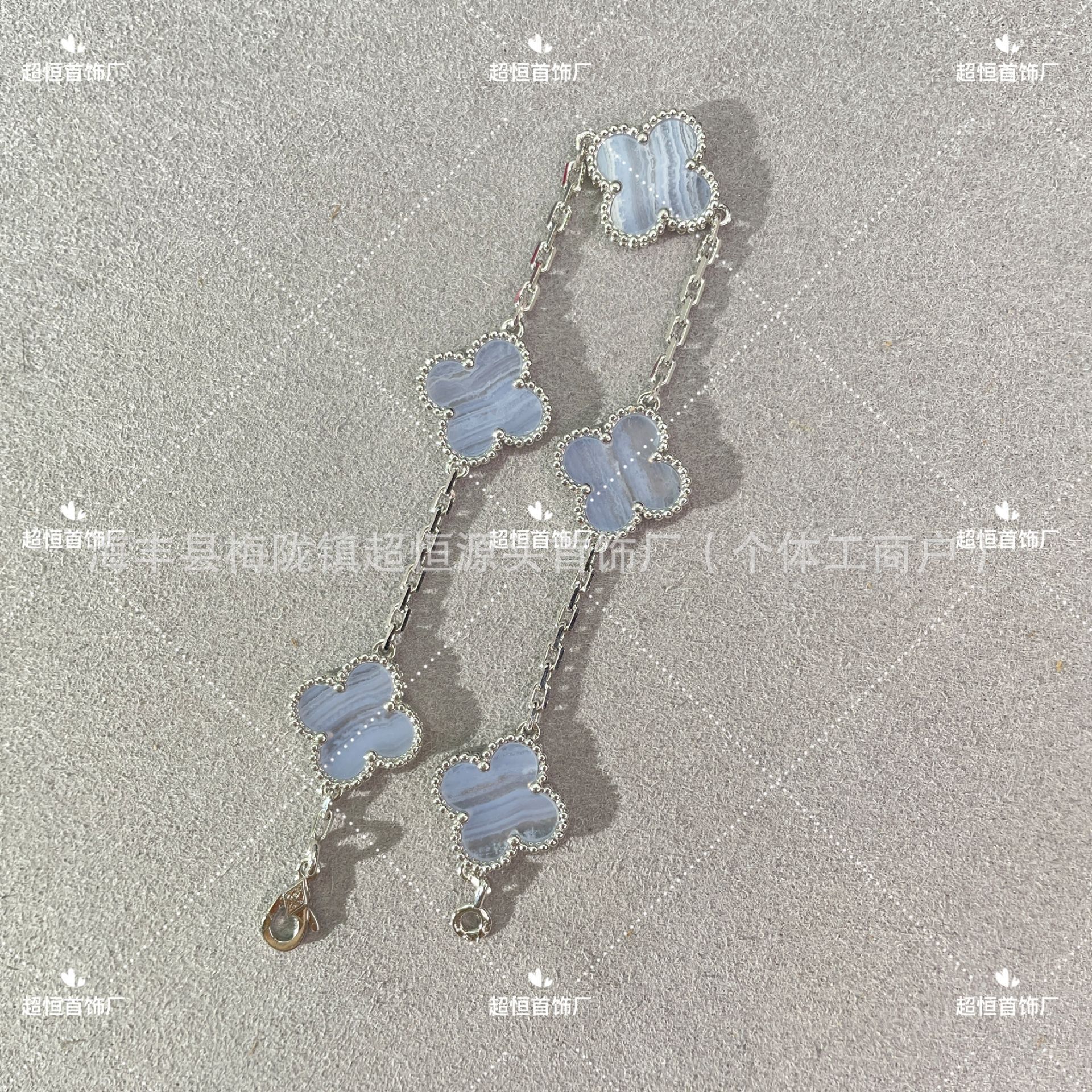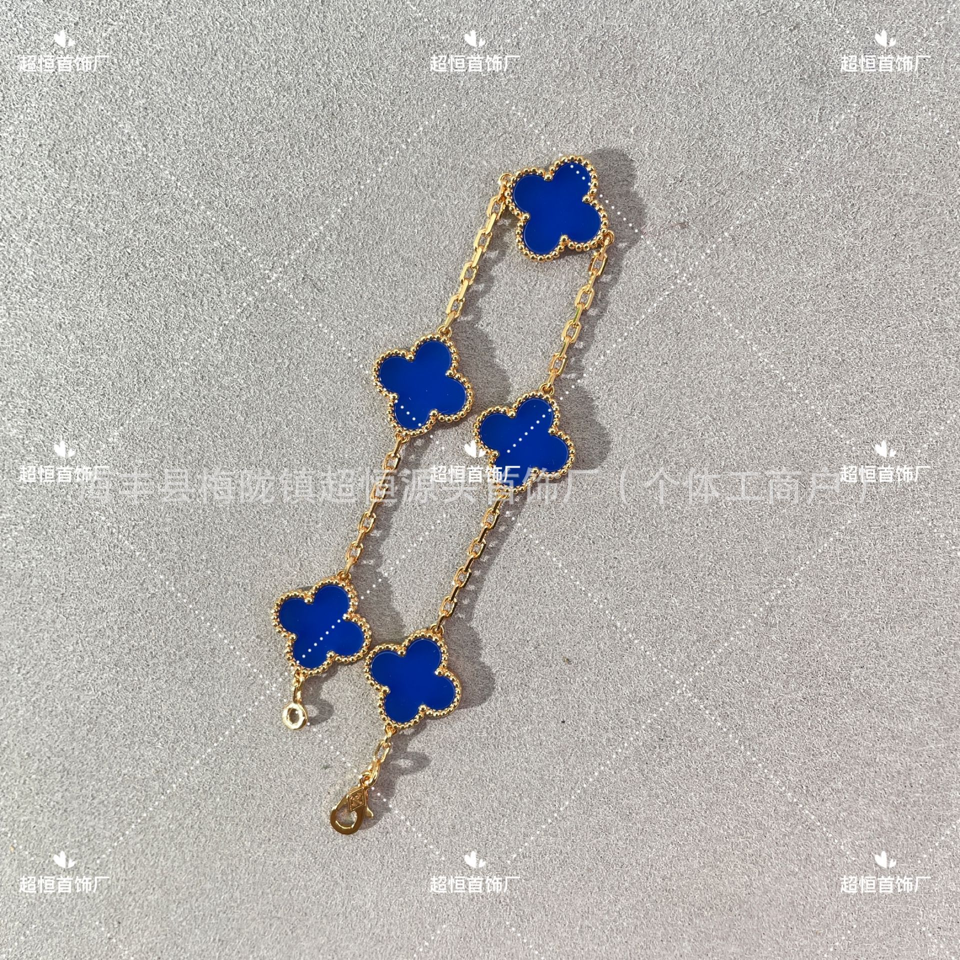 V金CNC精雕瘦花18k玫瑰金红玛瑙熊猫四叶草925银五花手链直播批发