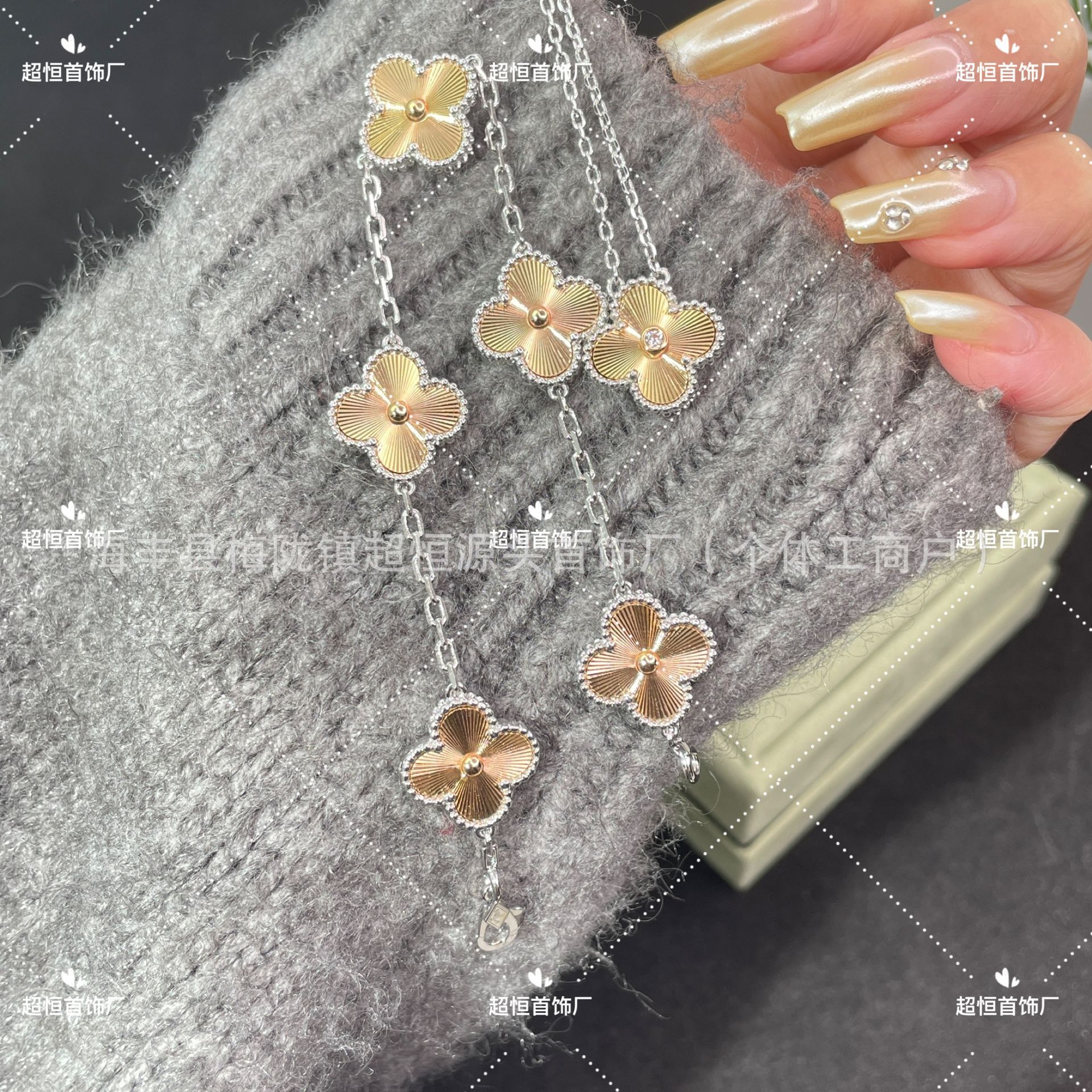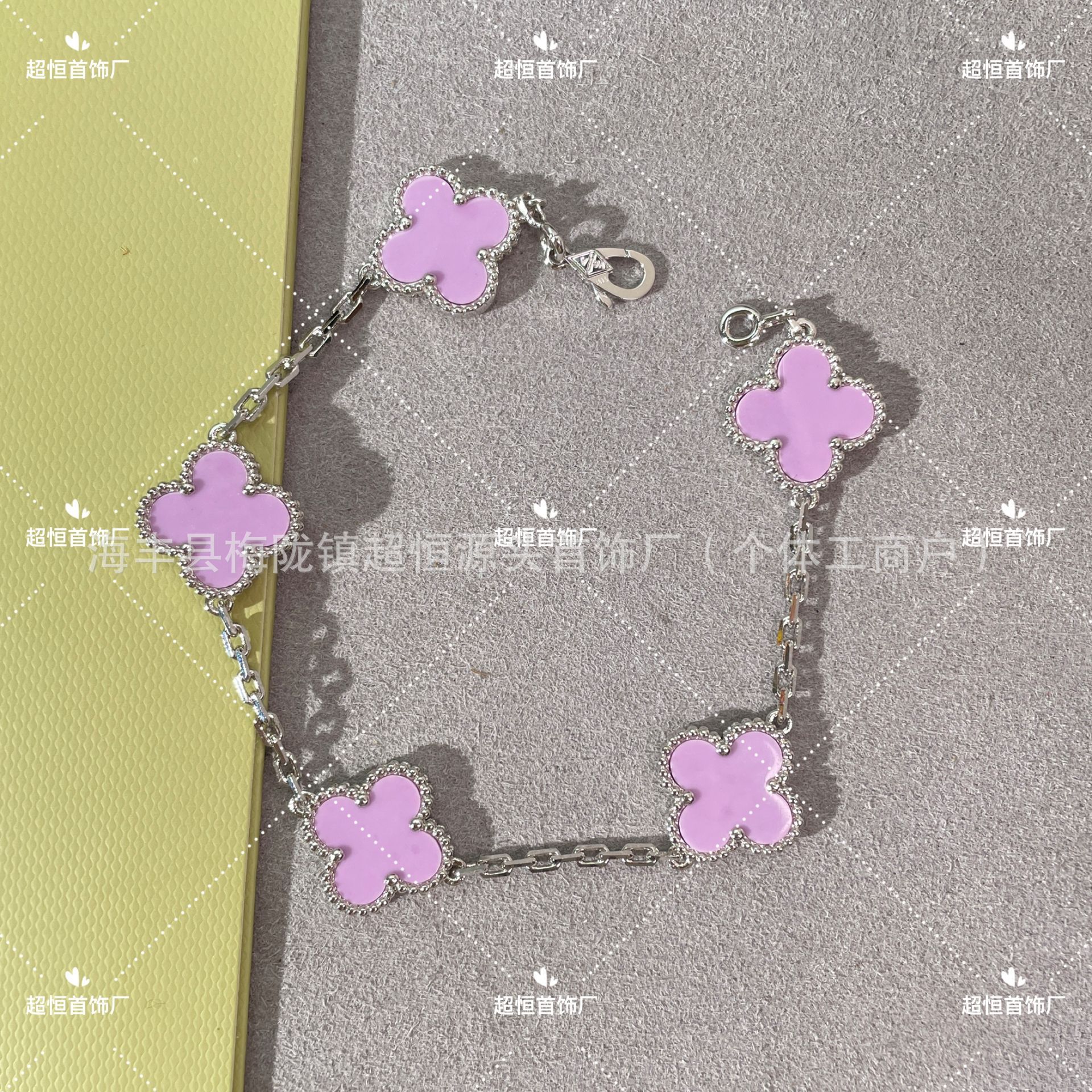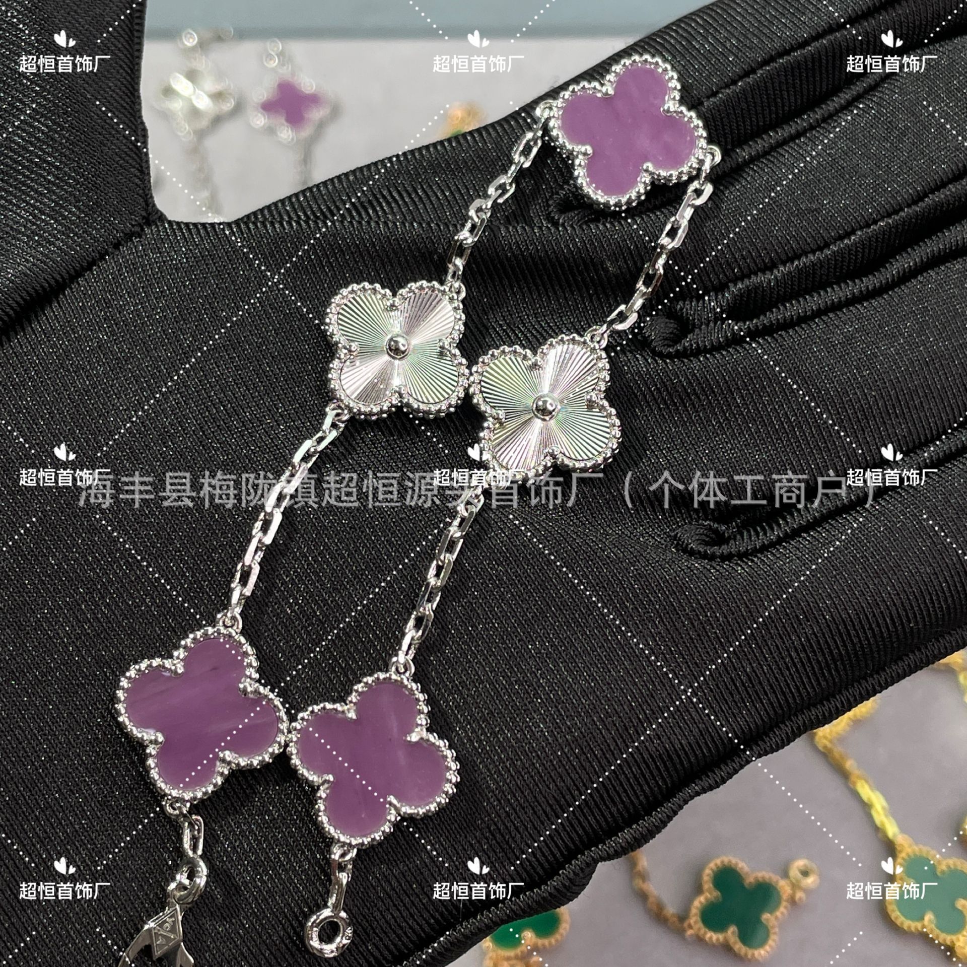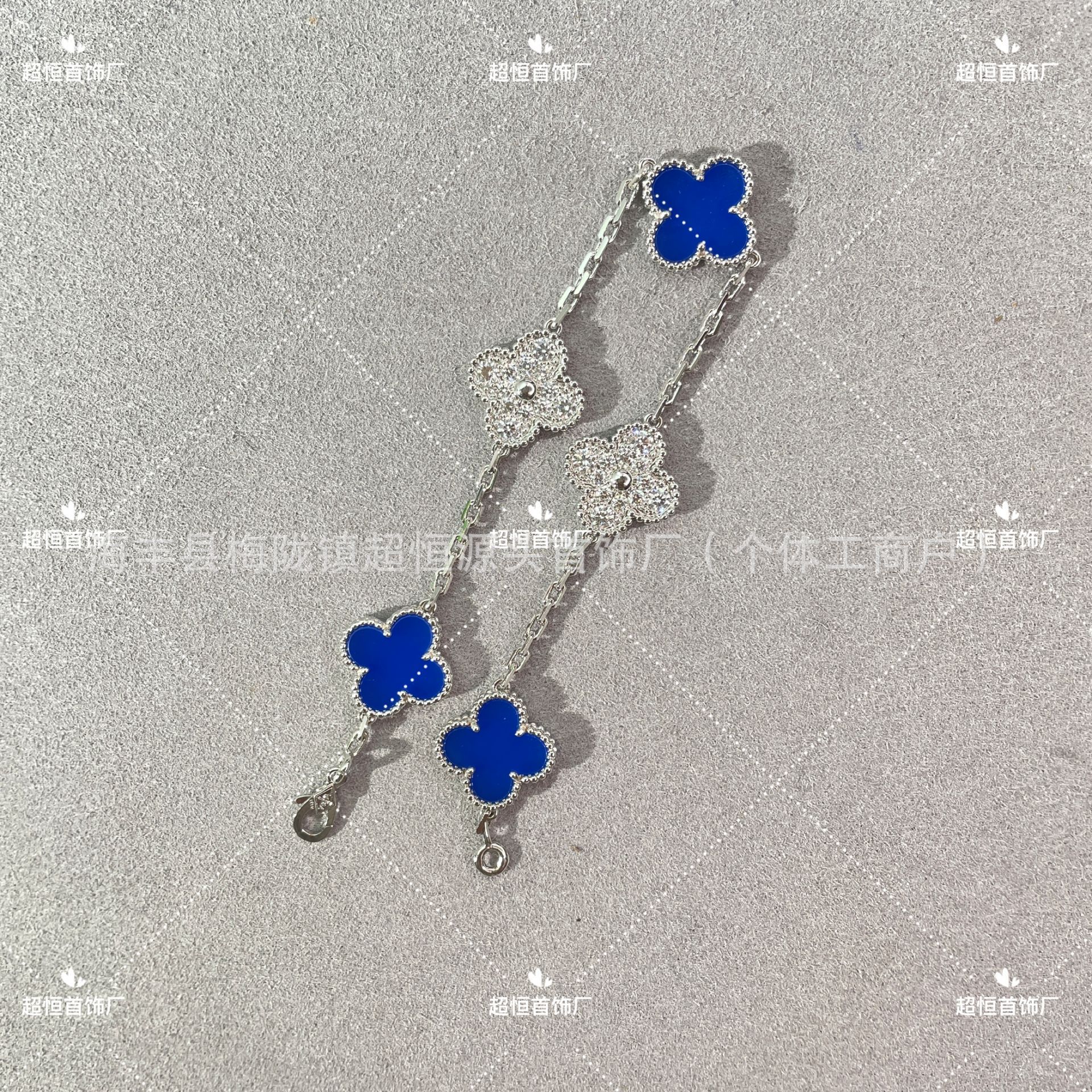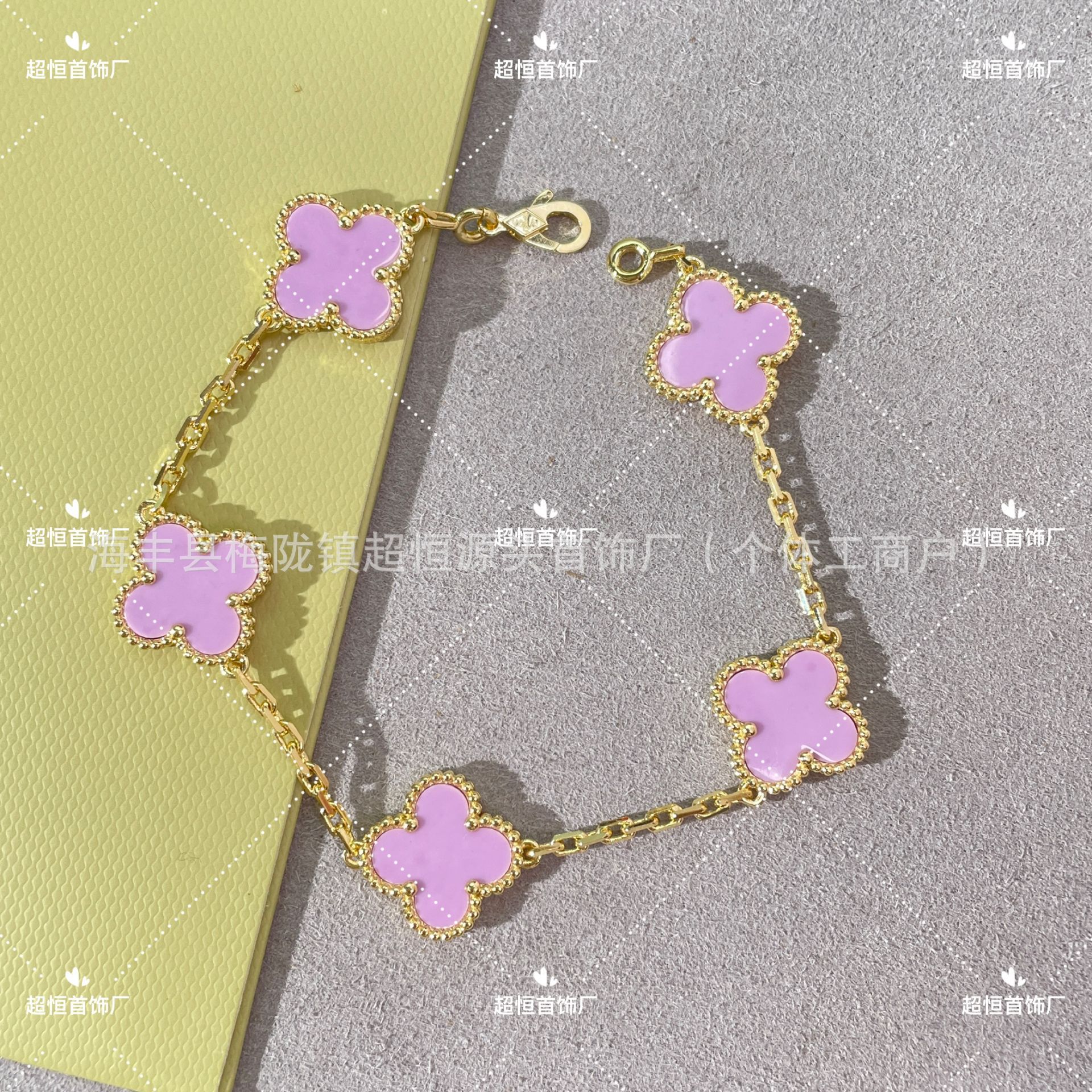 V金CNC精雕瘦花18k玫瑰金红玛瑙熊猫四叶草925银五花手链直播批发