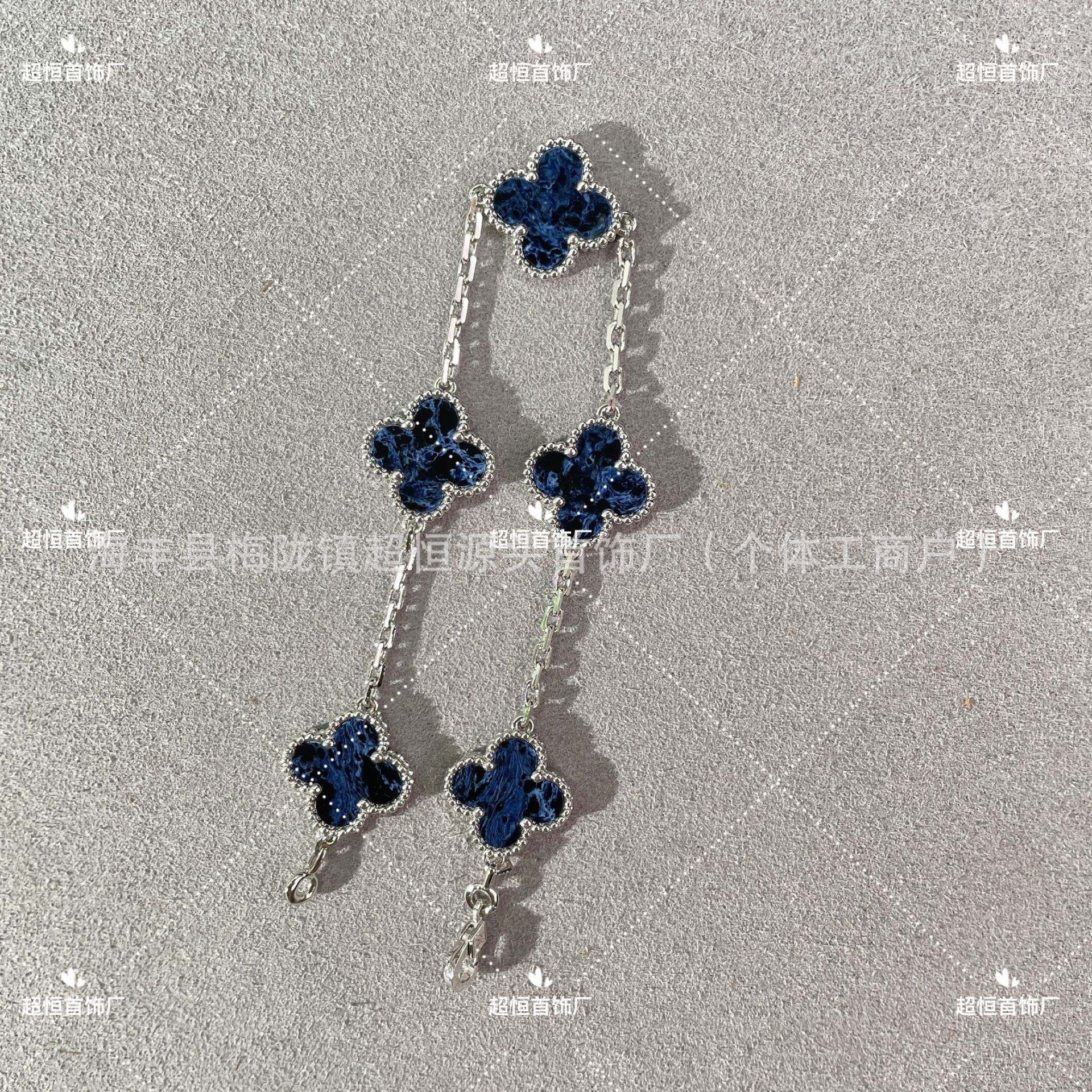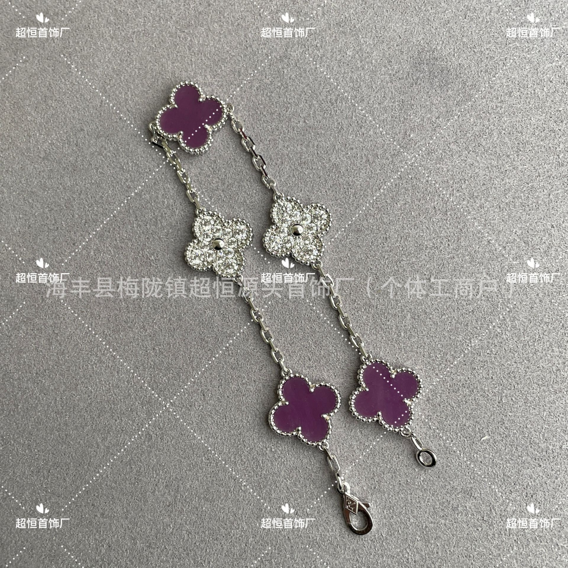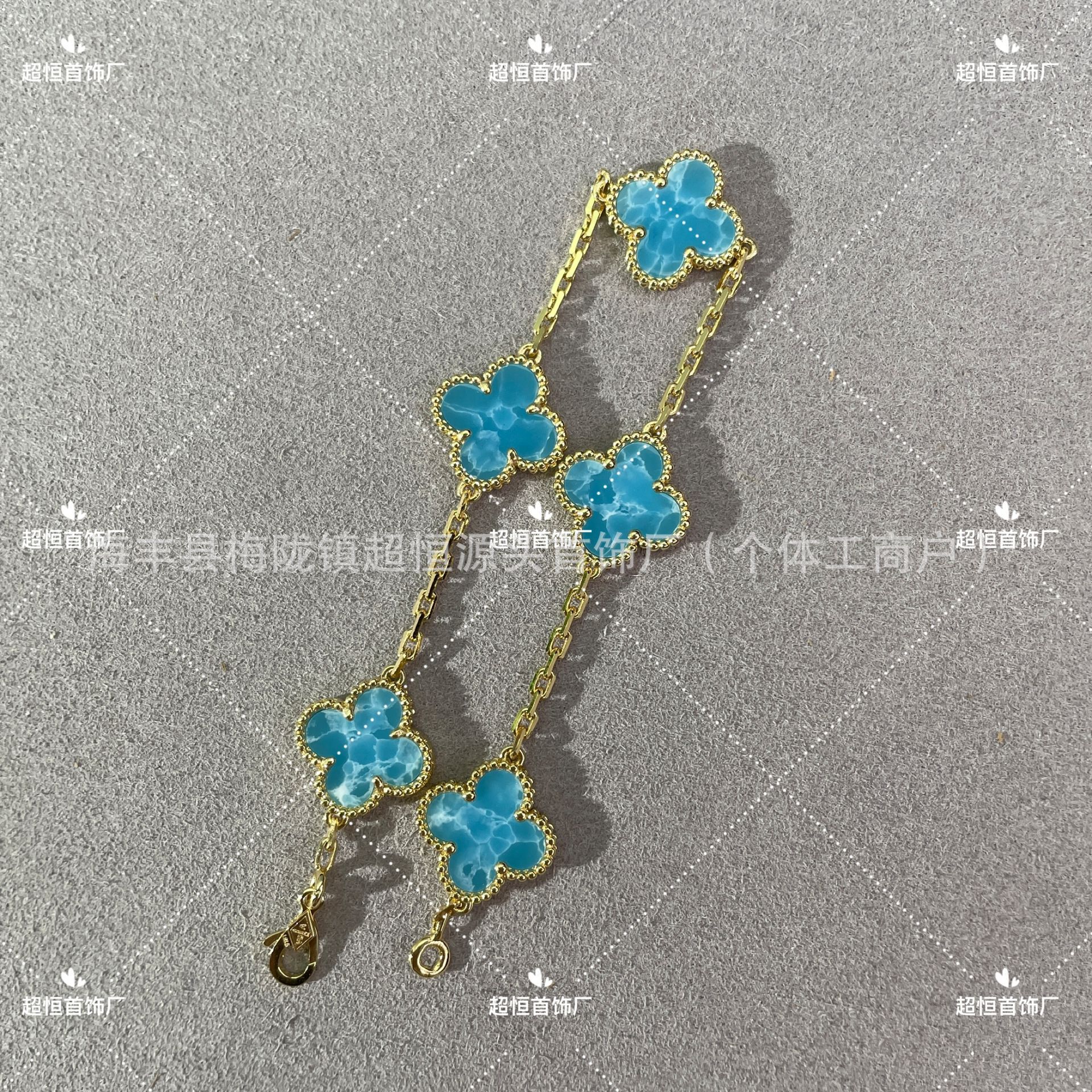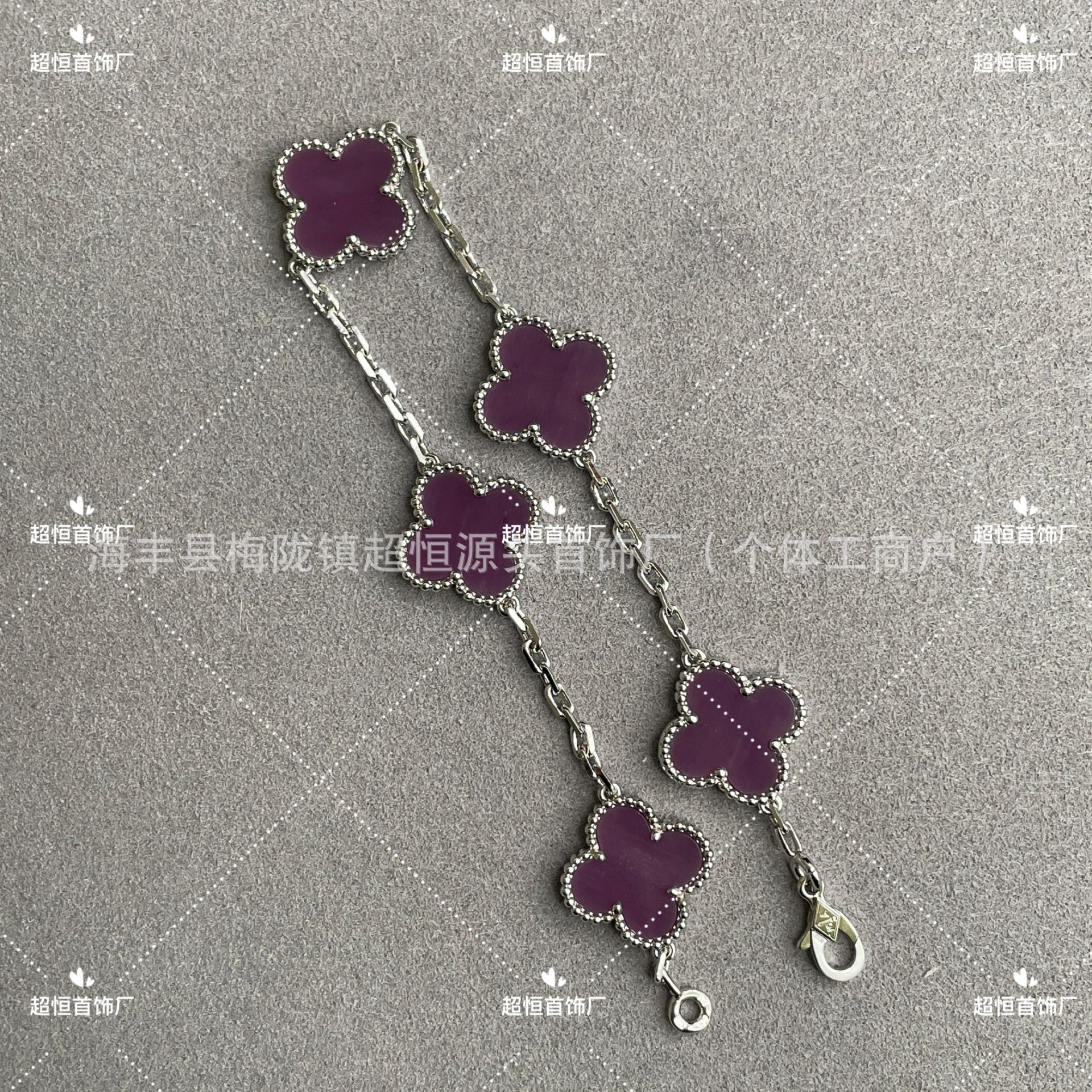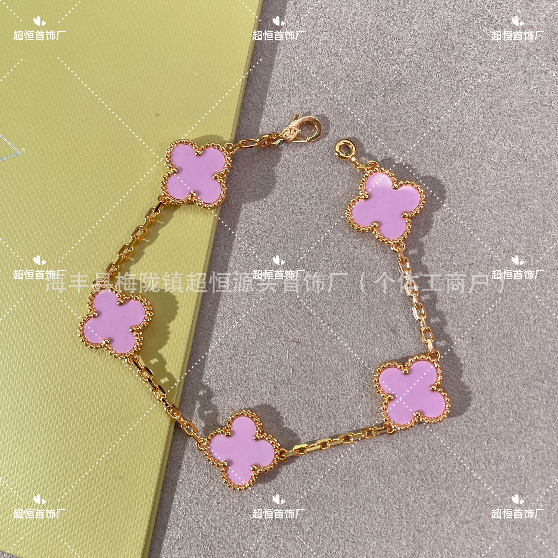 V金CNC精雕瘦花18k玫瑰金红玛瑙熊猫四叶草925银五花手链直播批发
