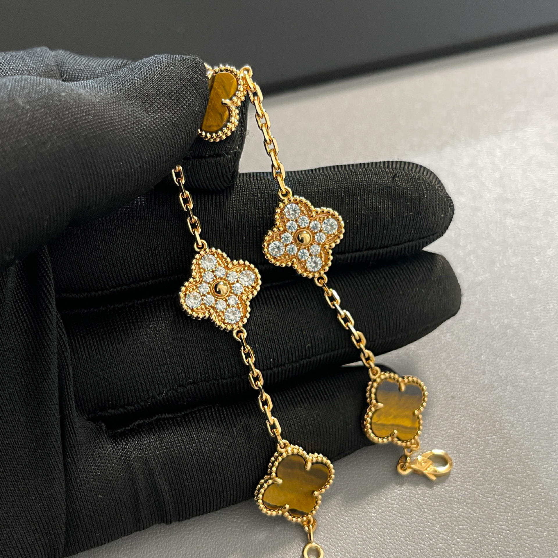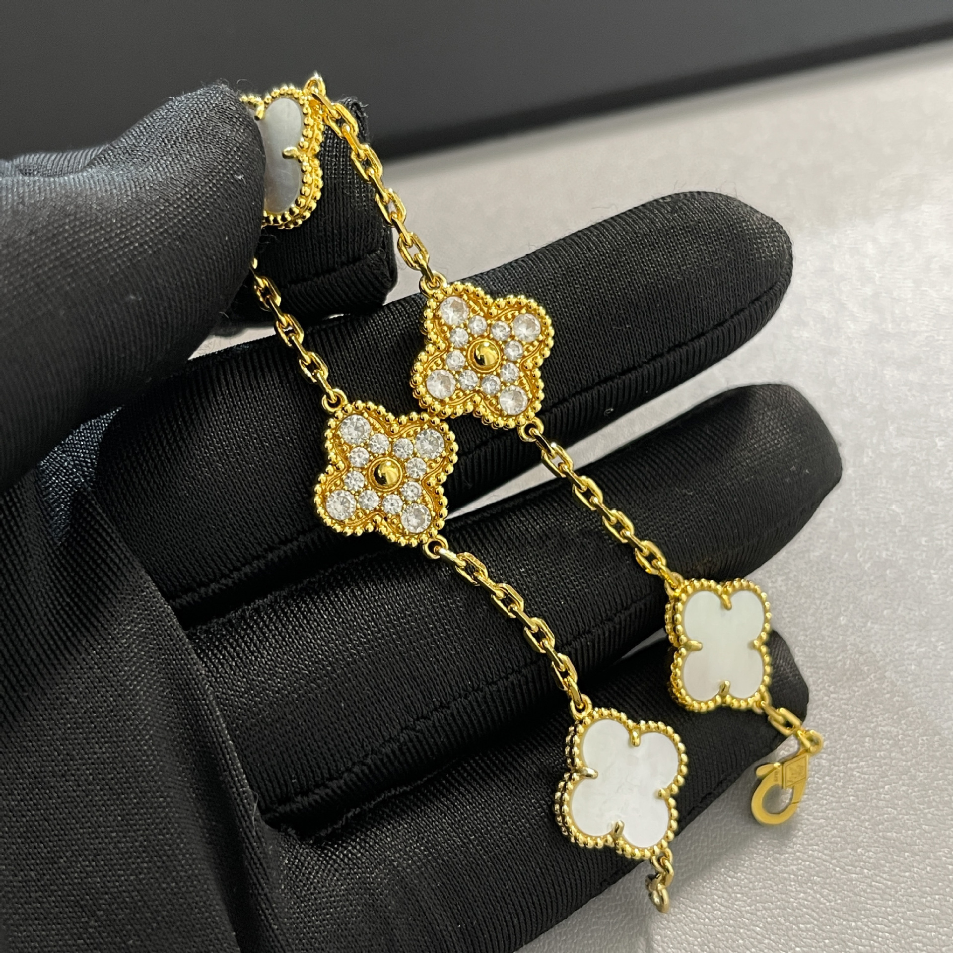 天花板瘦花V金四叶草五花手链高版女项链高版本厚镀18K送女友生日