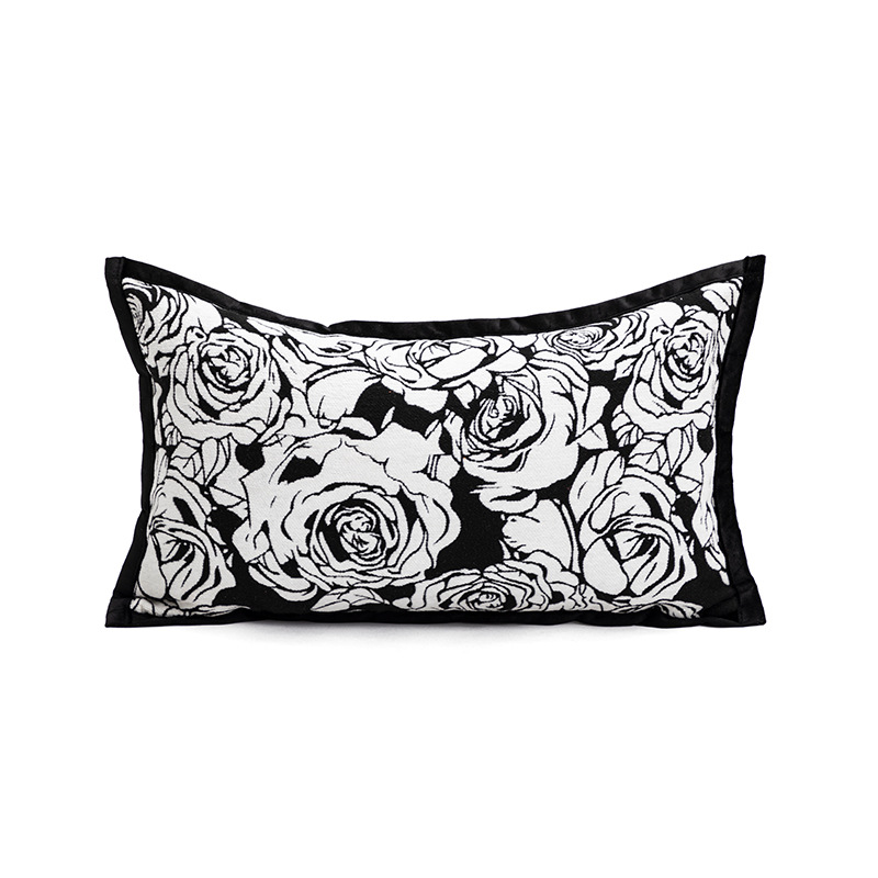 黑白玫瑰腰枕