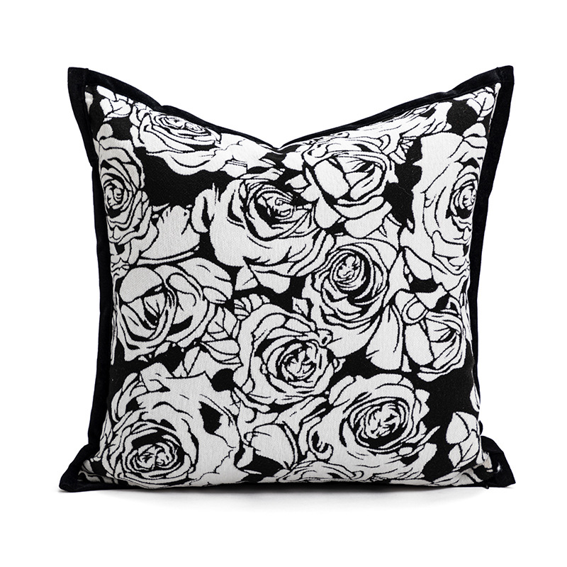 黑白玫瑰抱枕