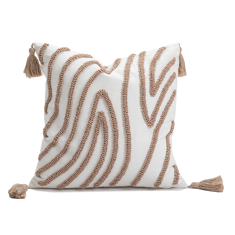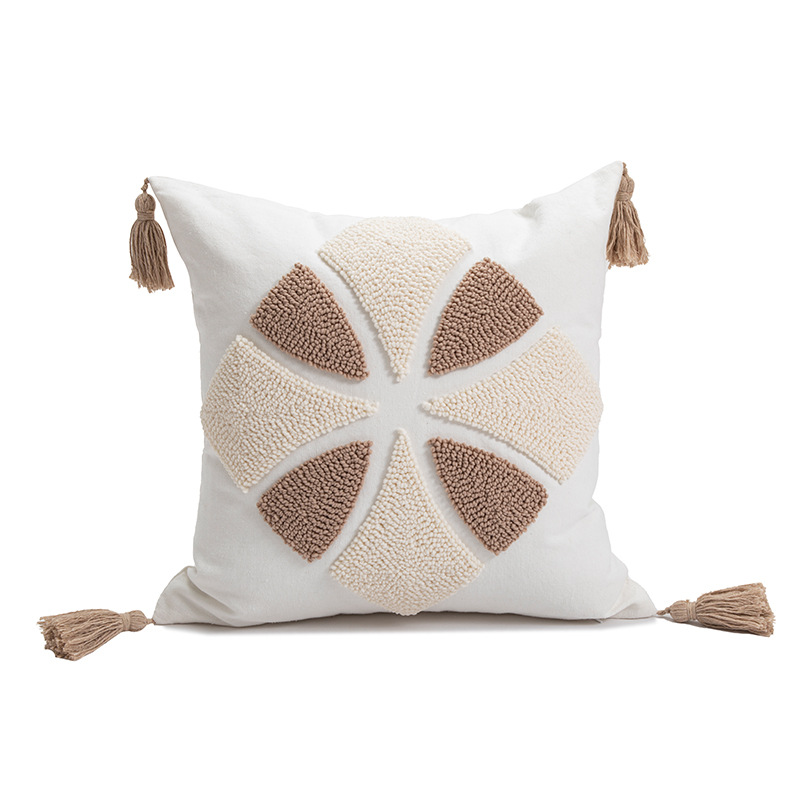 跨境北欧圈绒抱枕套刺绣流苏靠垫酒店样板间装饰抱枕客厅沙发靠枕