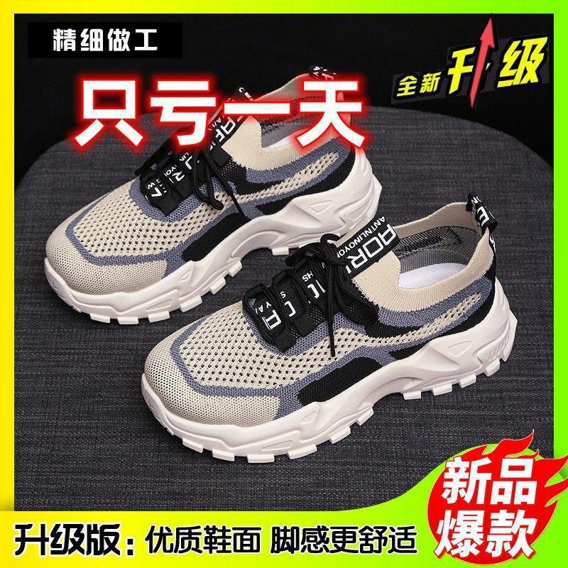 品牌断码特价飞织老爹鞋女2023春秋季新款百搭休闲厚底运动跑步鞋