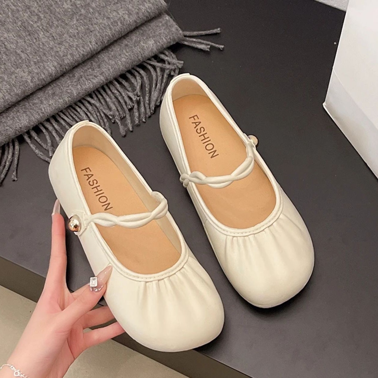 爆款玛丽珍豆豆2025春夏新款平底褶皱一字奶奶浅口温柔单鞋仙女款