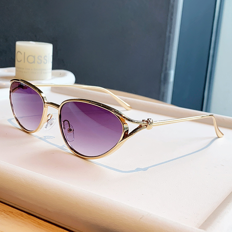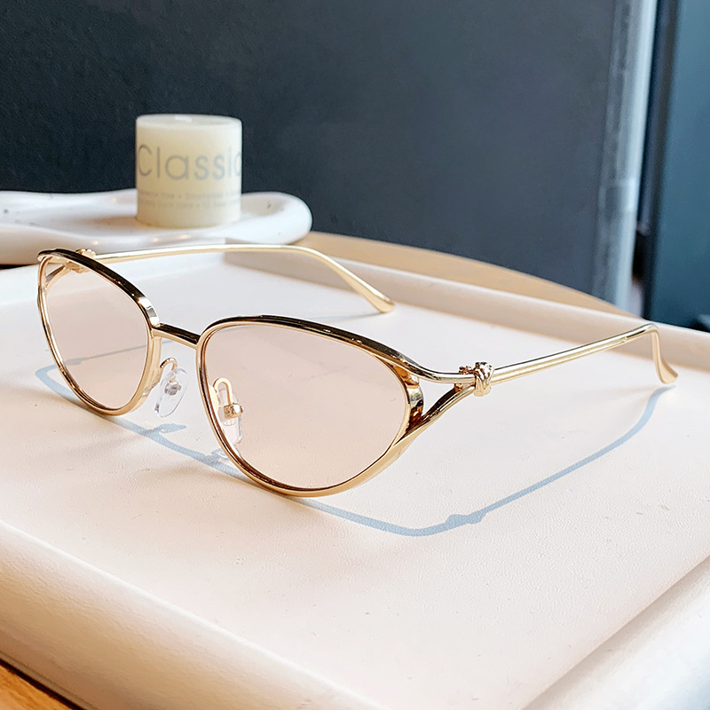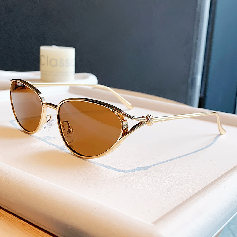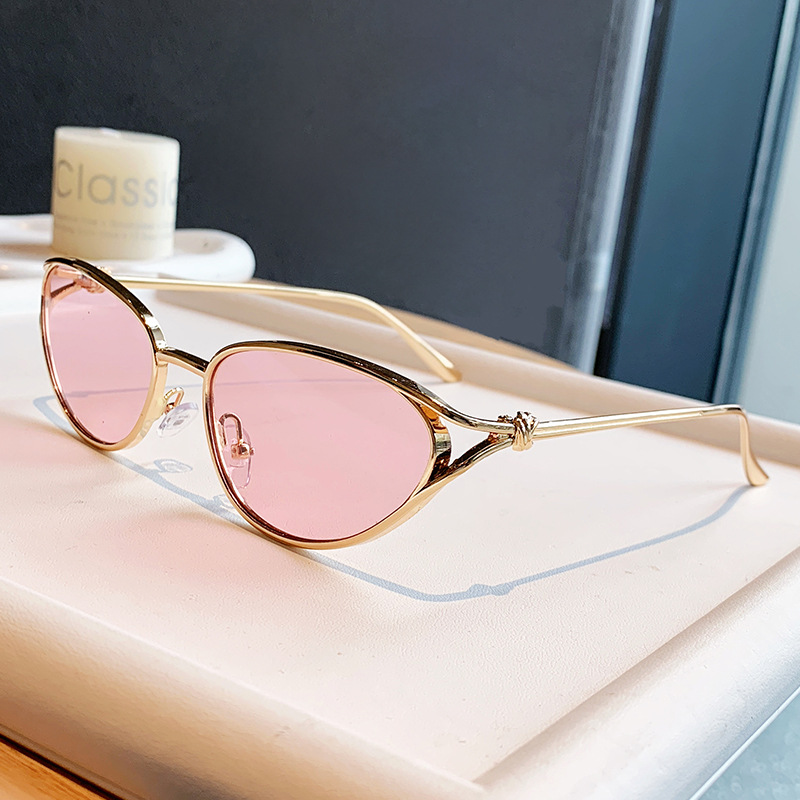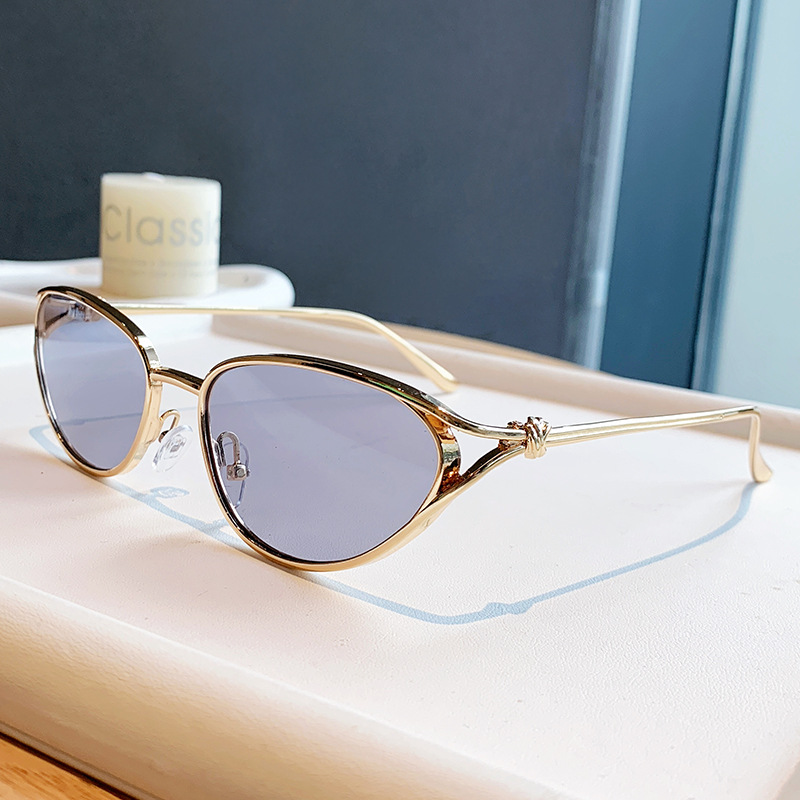 小框猫眼金属墨镜女欧美跨境个性辣妹穿搭眼镜时尚潮流绳结太阳镜