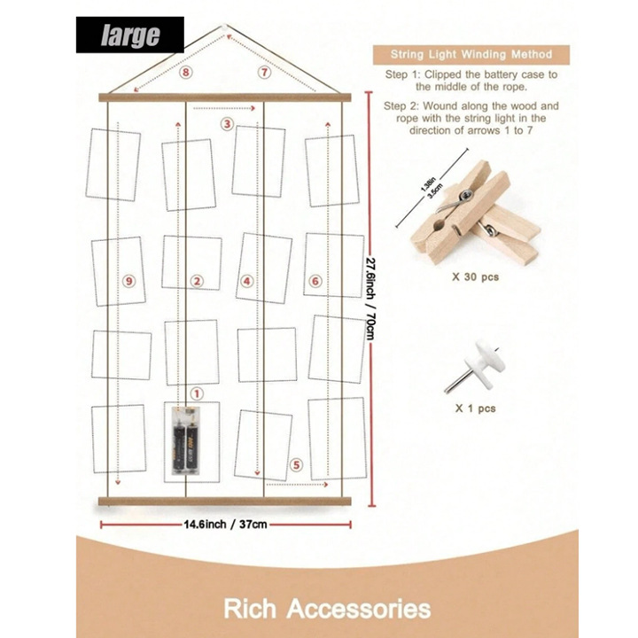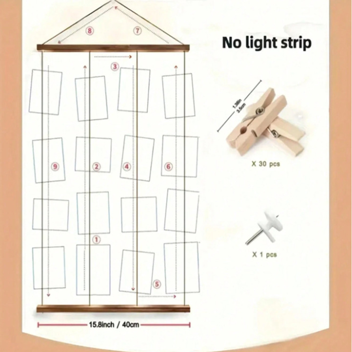 跨境木质麻绳悬挂照片夹北欧风节庆派对装饰儿童房装饰墙面照片墙